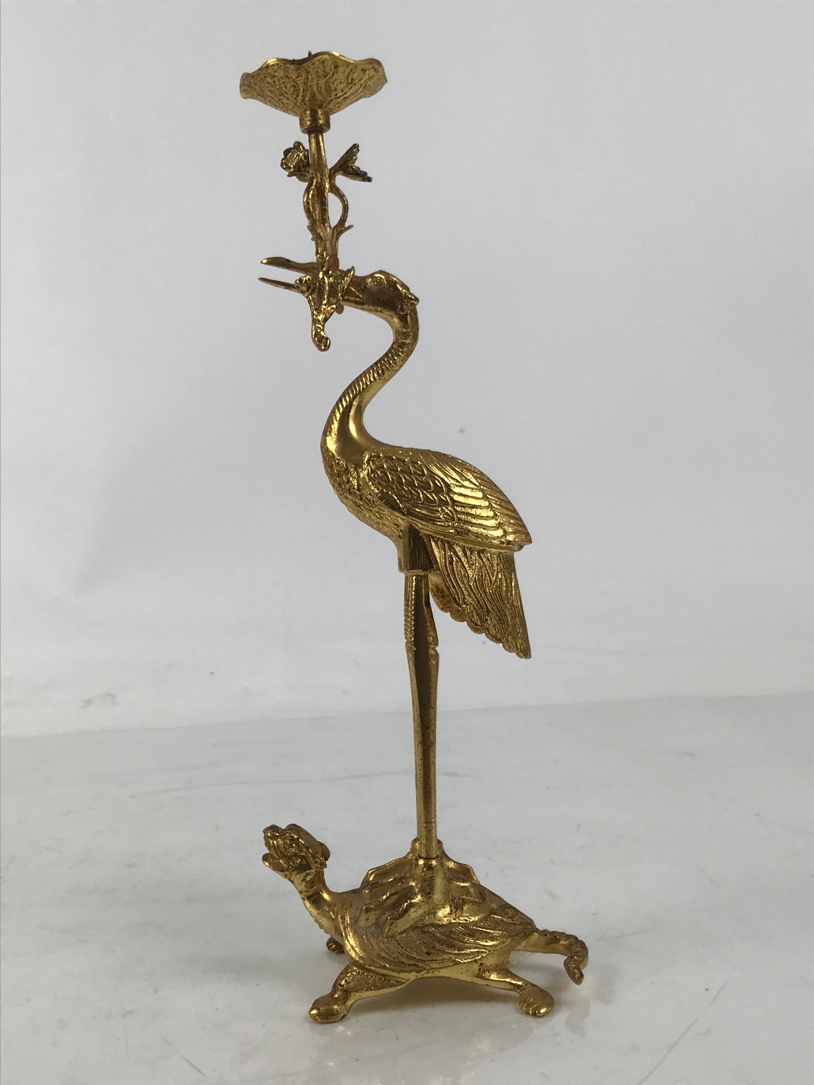 January 24, 2026Japanese Buddhist Altar Fitting Brass Candle Stand Vtg Crane Shokudai BA646