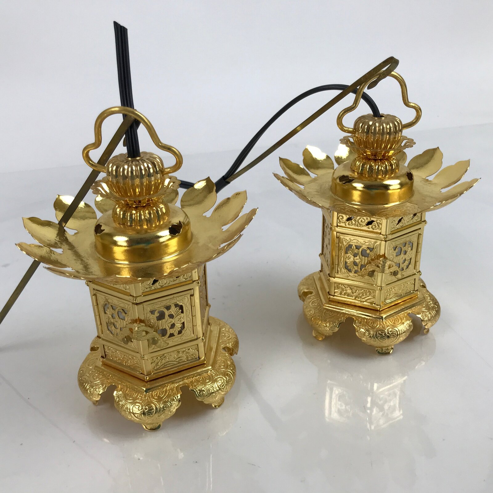 Japanese Buddhist Altar Fitting Hanging Lantern Toro Pair