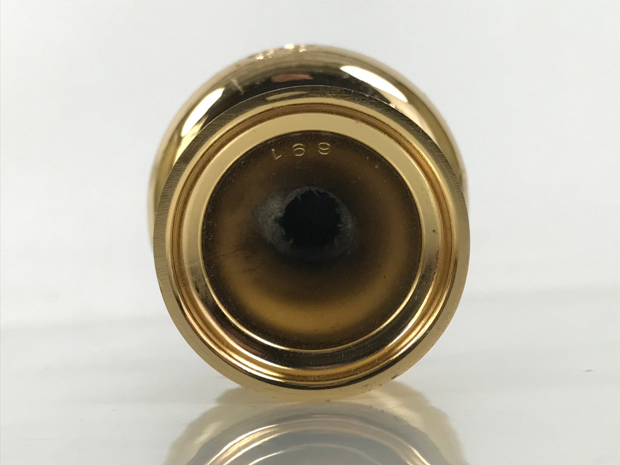 This is a Japanese rice offering cup, Buppanki, made for use in a Buddhist altar. This cup is simple, small, and made of brass. The rice offered to Buddhist altars is called “Buppan”. In the Jodo Shinshu Otani sect, we use the term “Obuku”. This cup has a crane on the front which is commonly associated with the Nichiren Shoshu sect of Buddhism.