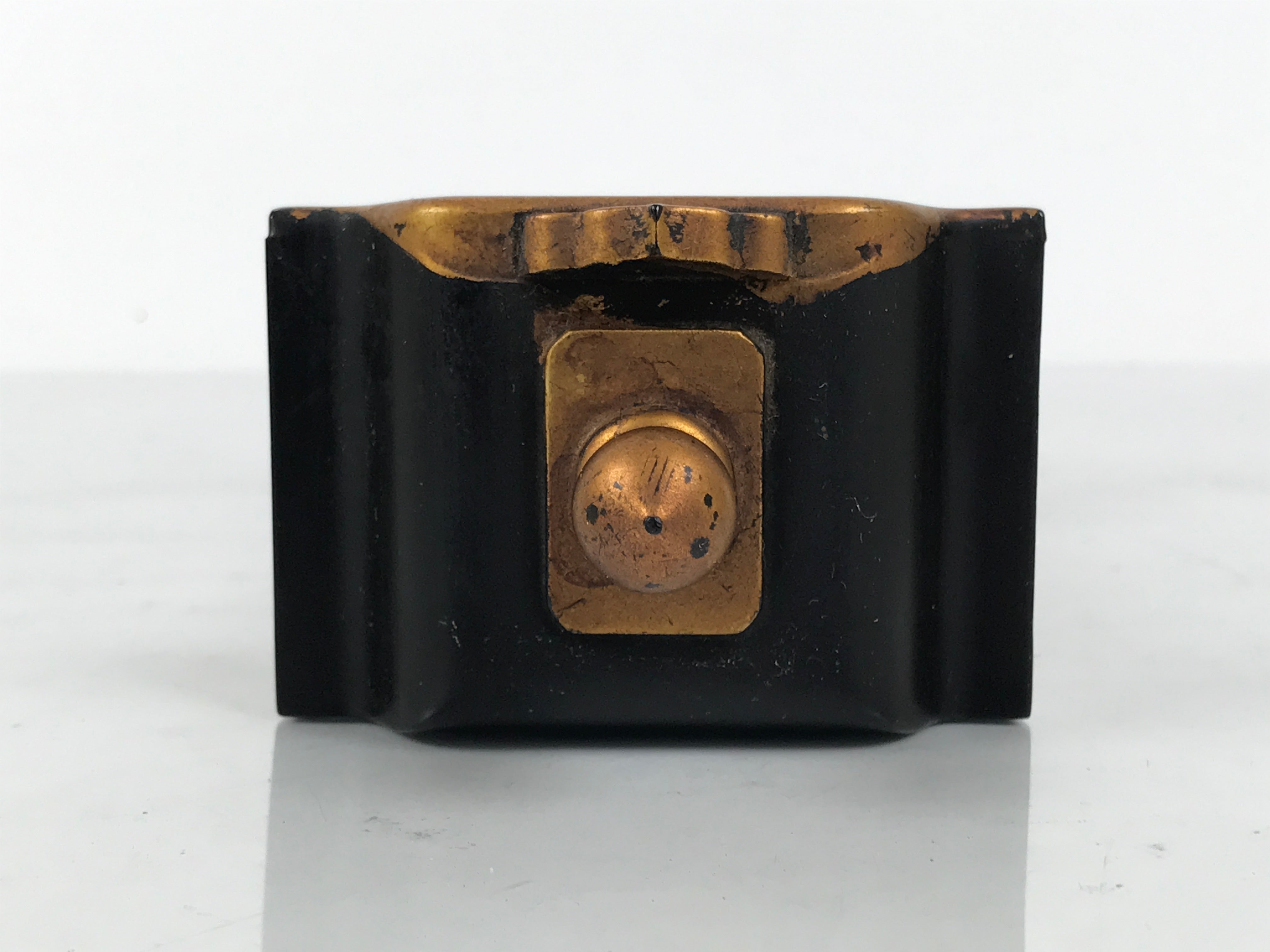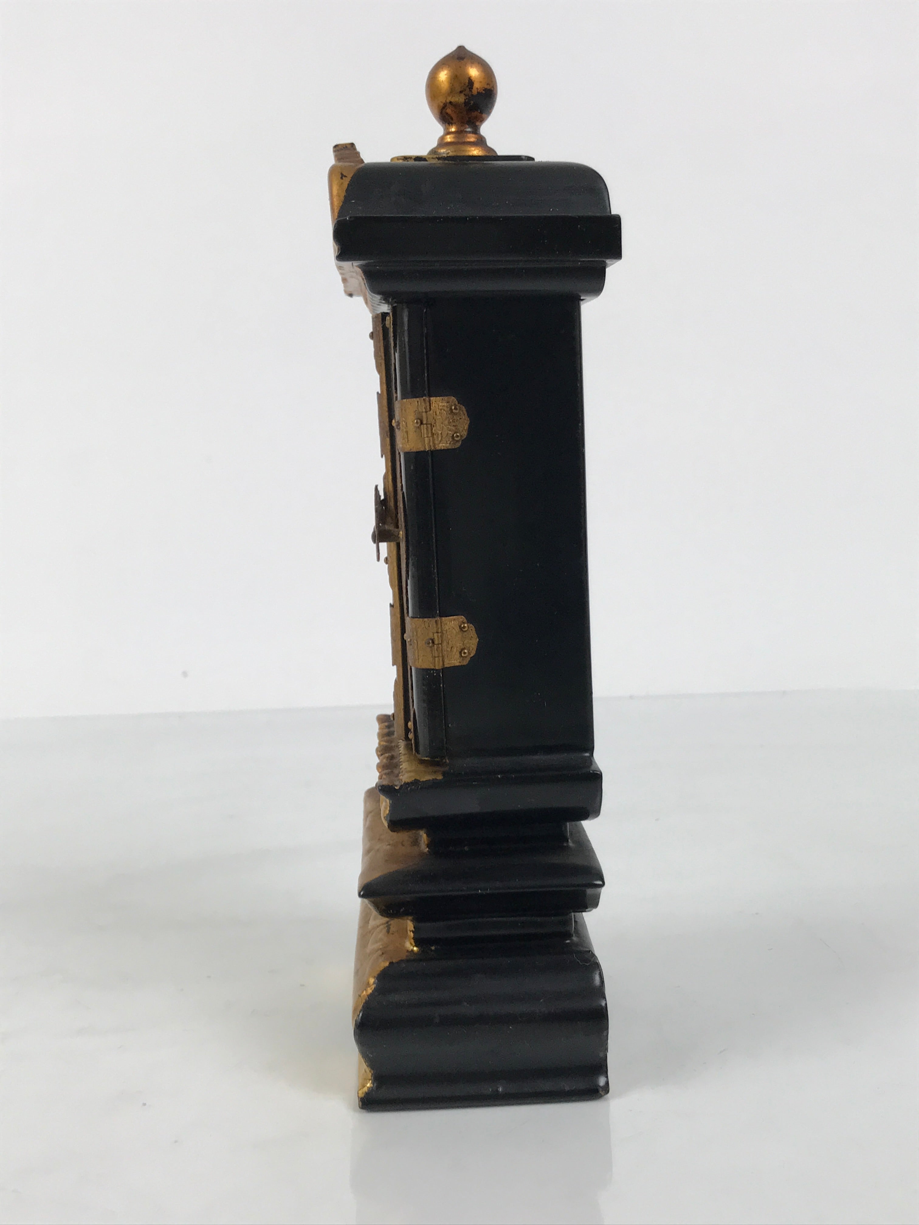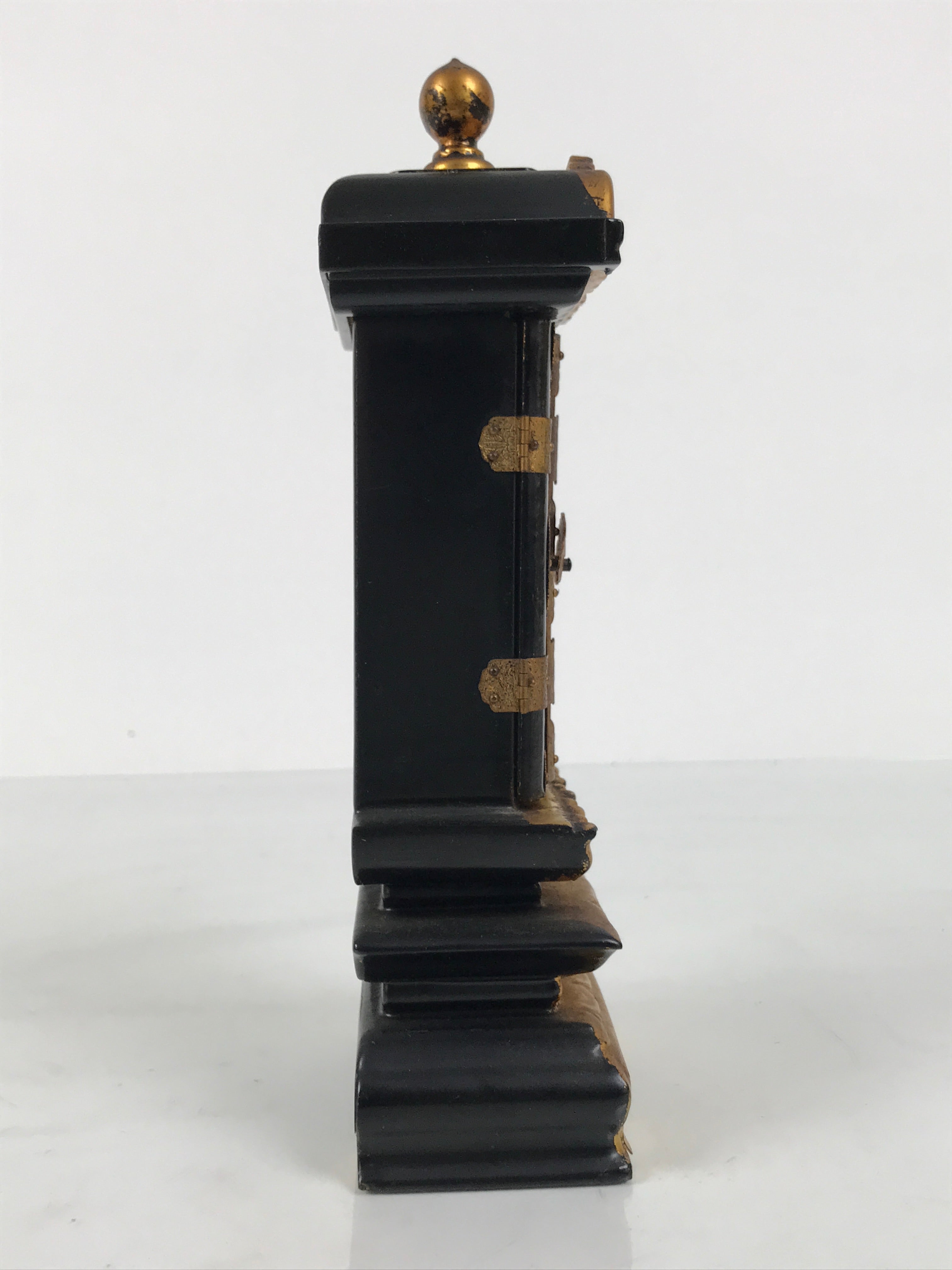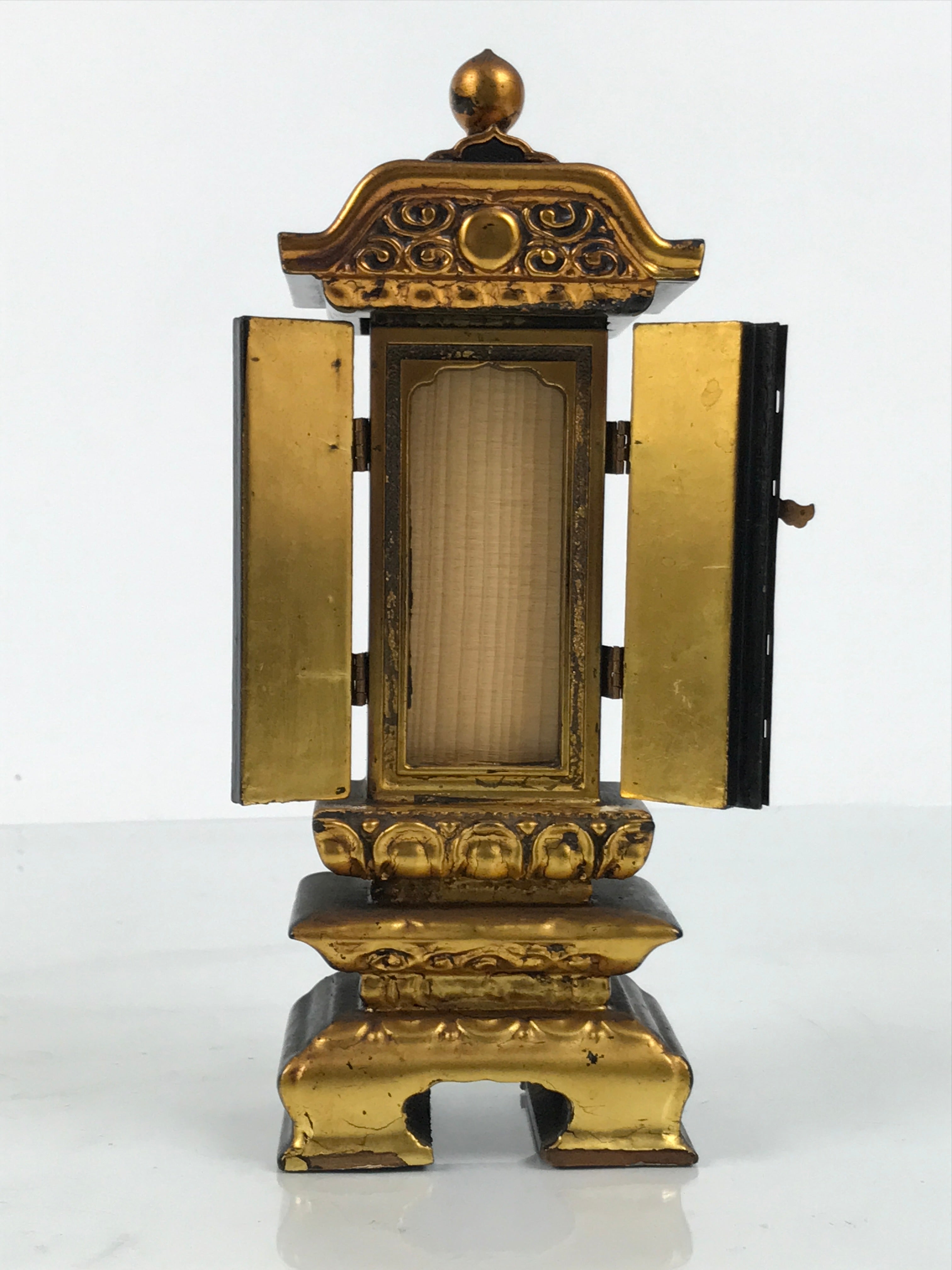 This is a vintage Japanese mortuary tablet Ihai. A mortuary tablet is a place the spirit of a deceased person is enshrined. This type of Ihai (with a double door) is called Miyabi. It is black with gold paint and brass metal embellishments. A mortuary tablet (Kai de Ihai) can hold several deceased people in one place (names written on wood plates). This particular mortuary tablet contain seven blank wood plates.