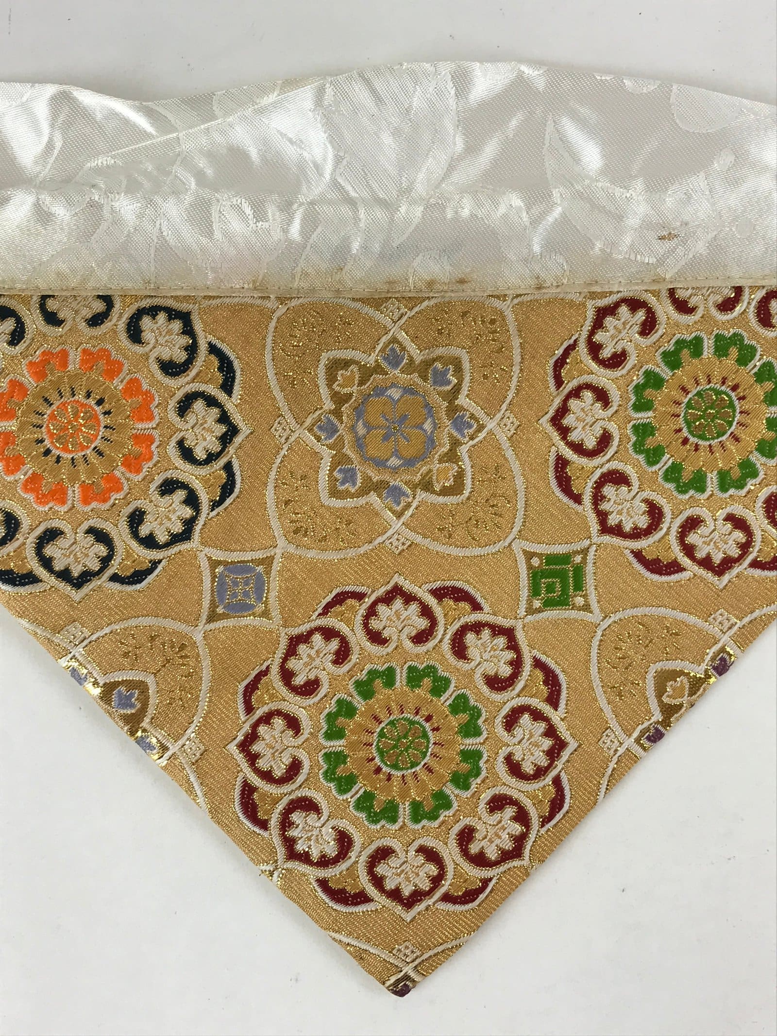 January 21, 2026Japanese Buddhist Altar Silk Tablecloth Uchishiki Vtg Triangle Gold Floral BA141