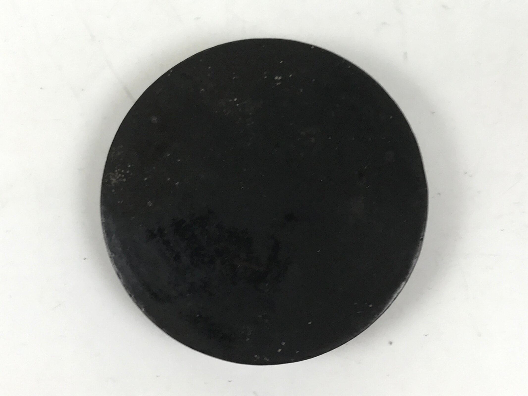 This is an antique Japanese incense container, or Kogo, used in Buddhist altars. A kogo is a small container with a lid and is used for keeping powder-type or woodchip-type incense for Buddhist ceremonies. It is very simple with no carvings or other embellishments and it is lacquered black. The lid fits flush and freely at the top.