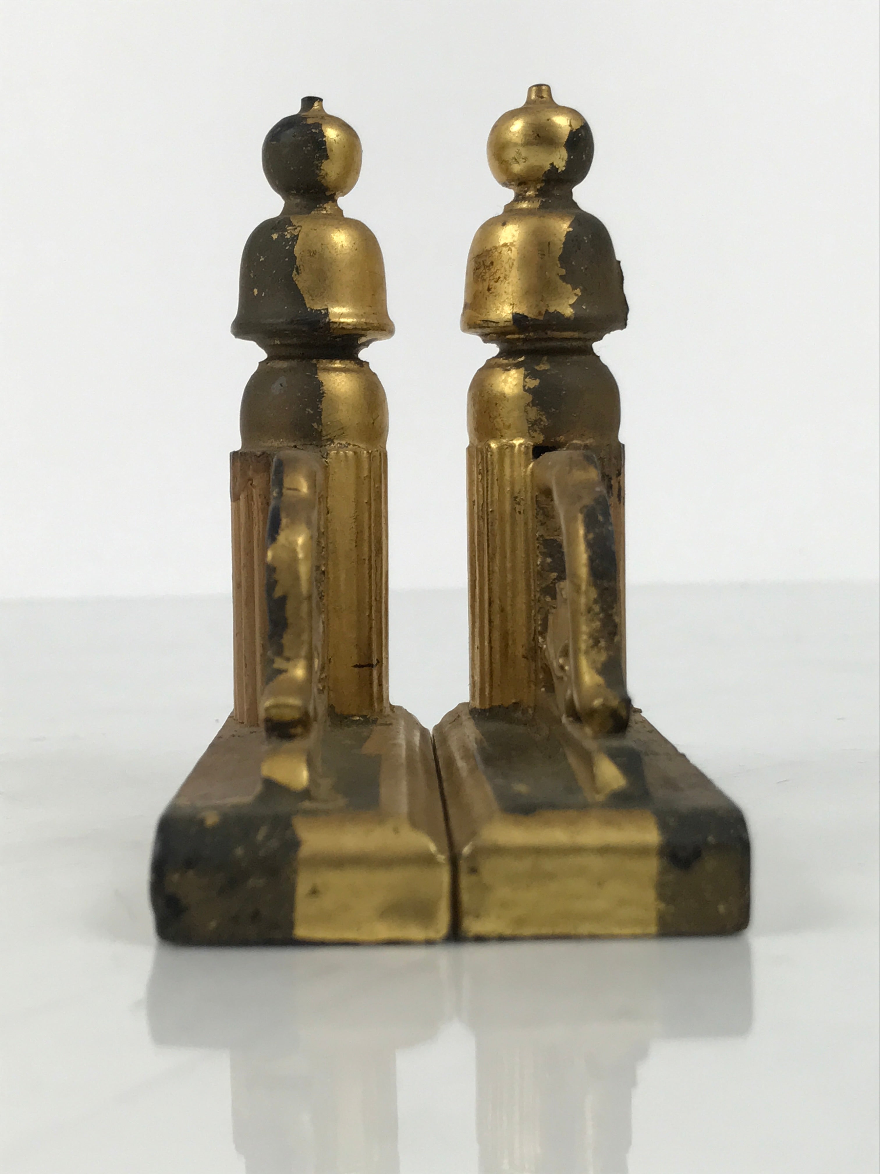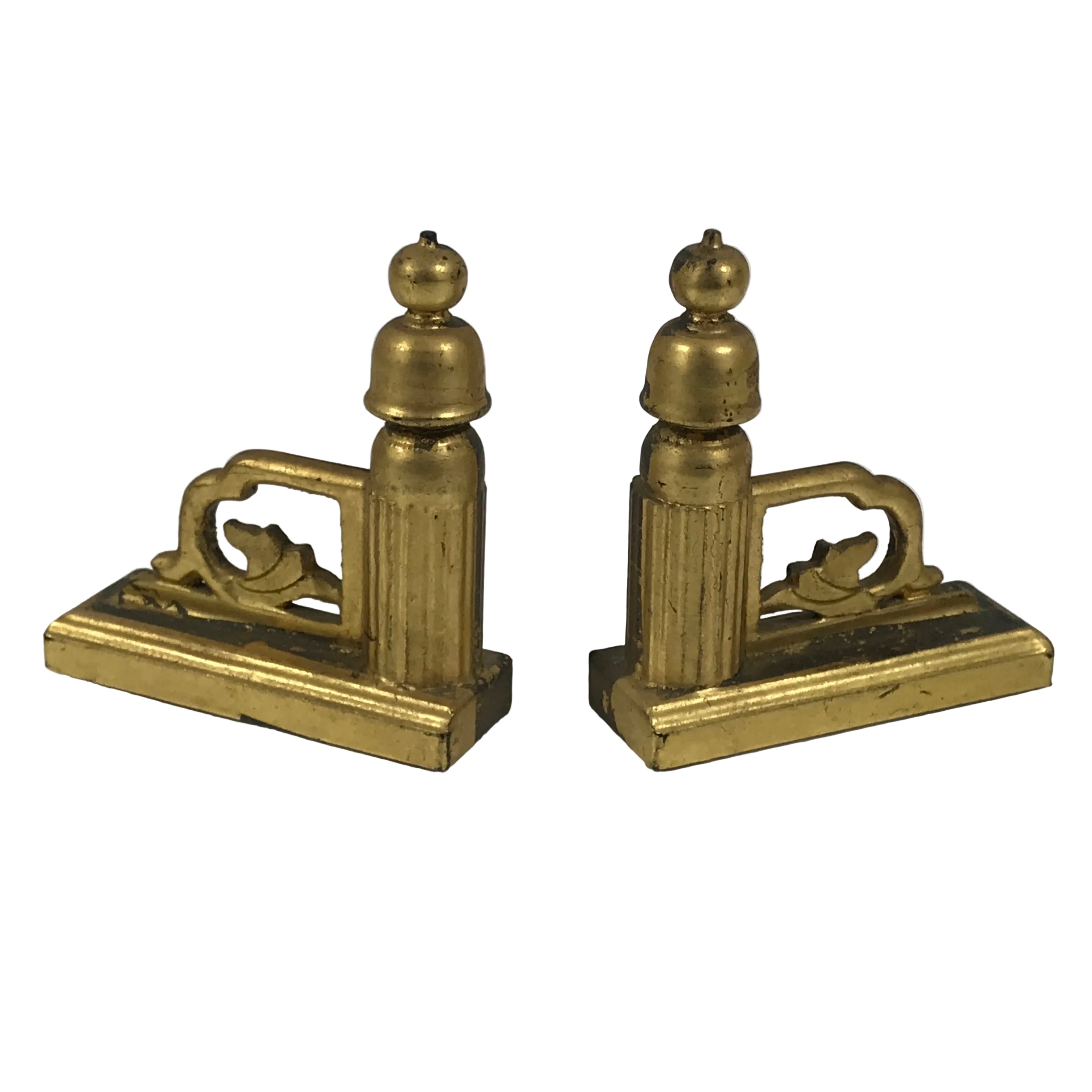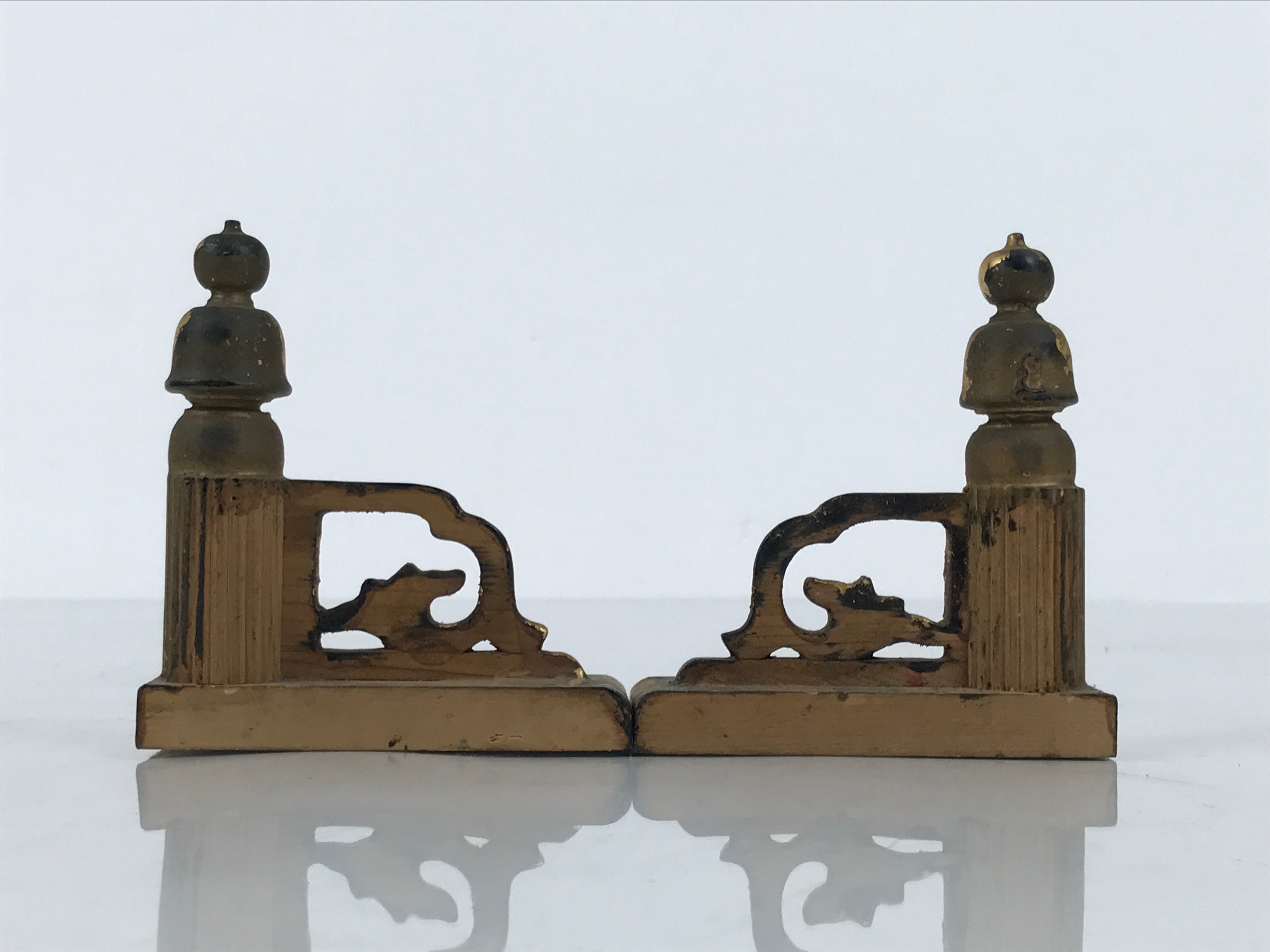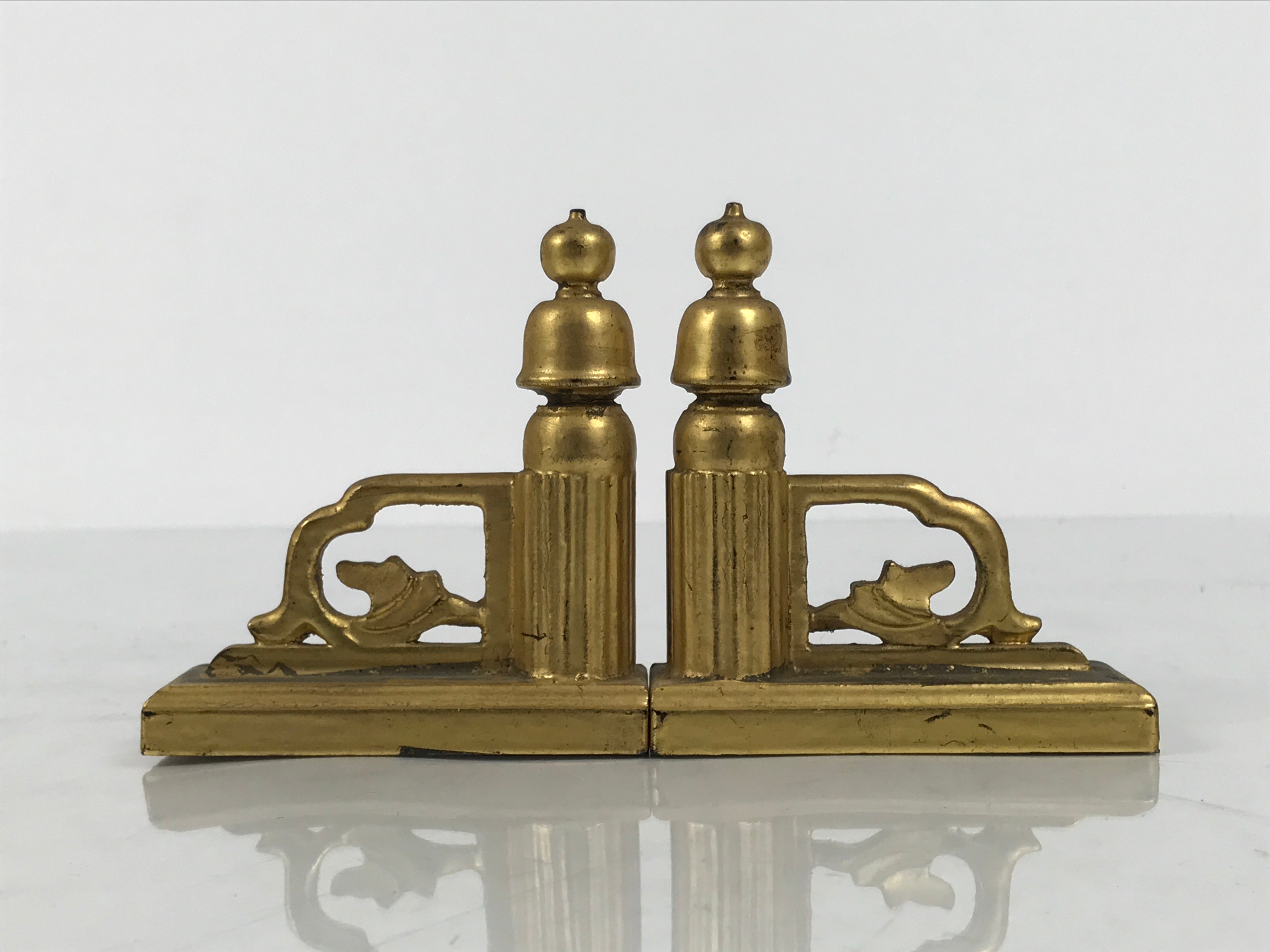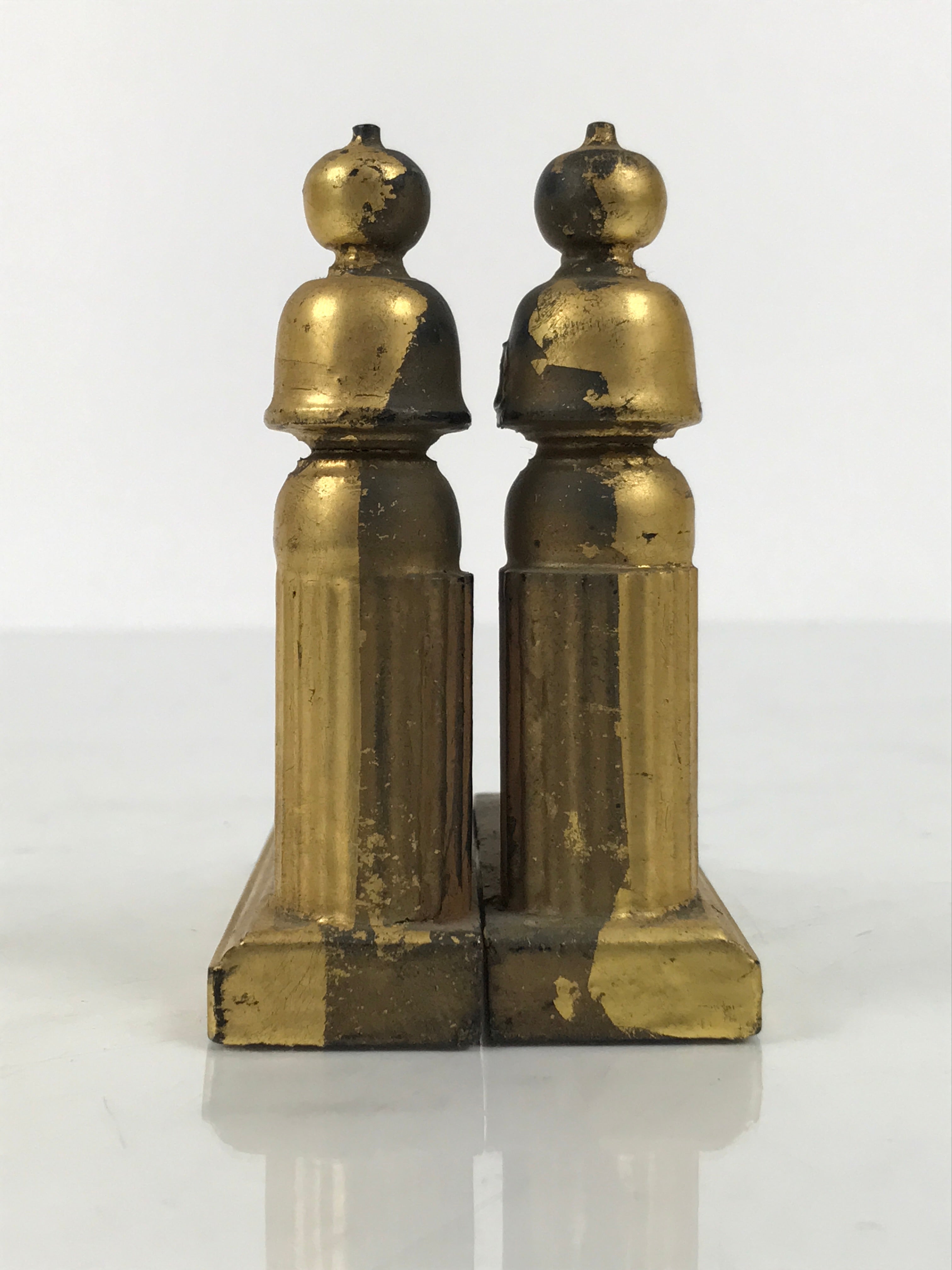 This is a vintage Japanese part of a Buddhist altar called kouran. It is the decorative railing that decorates the front part of the top step of the butsudan. It is a set of two end pieces made of wood. It is lacquered with a gold color. It can be used as spare parts for repair or as a general decoration.