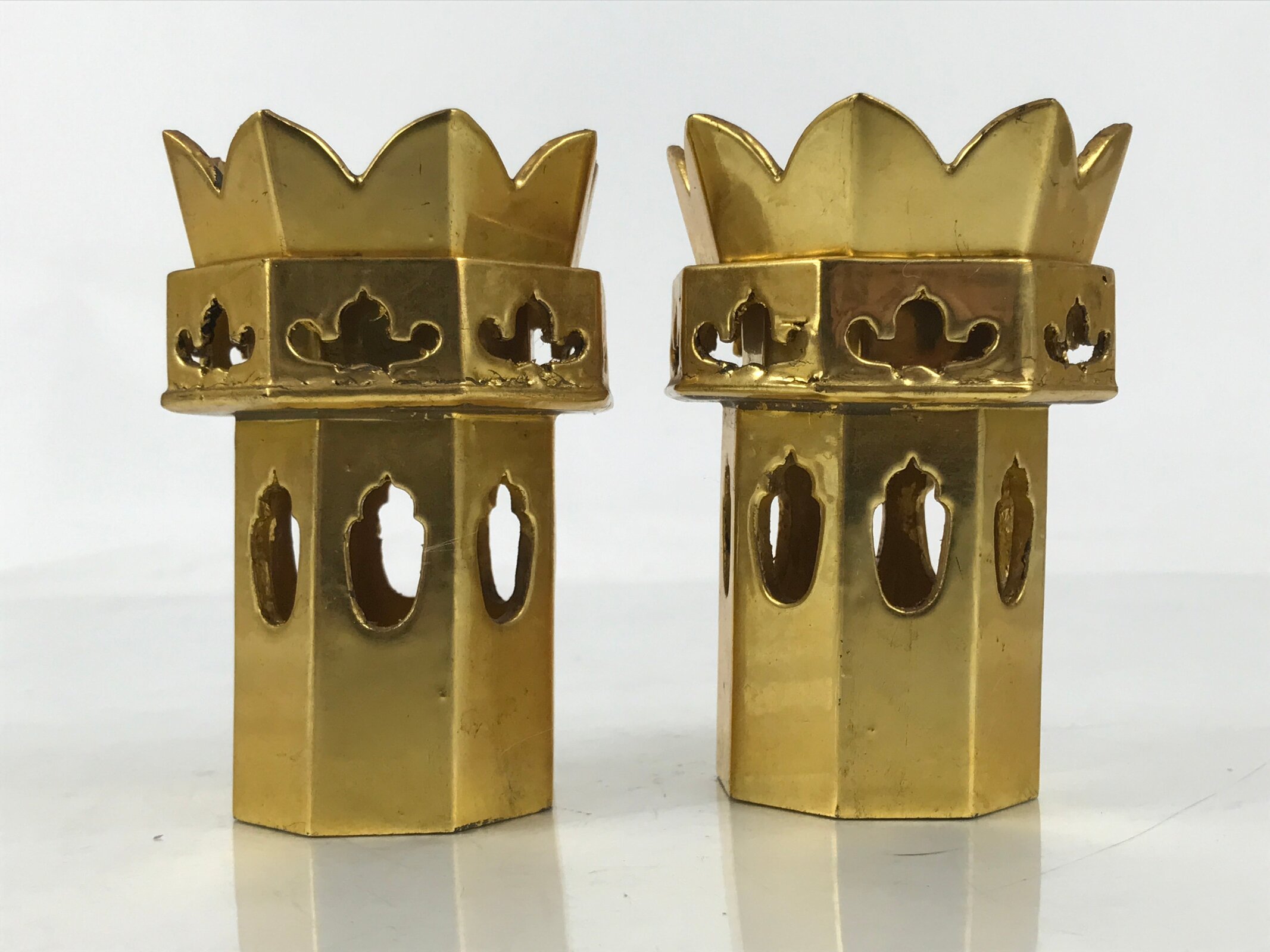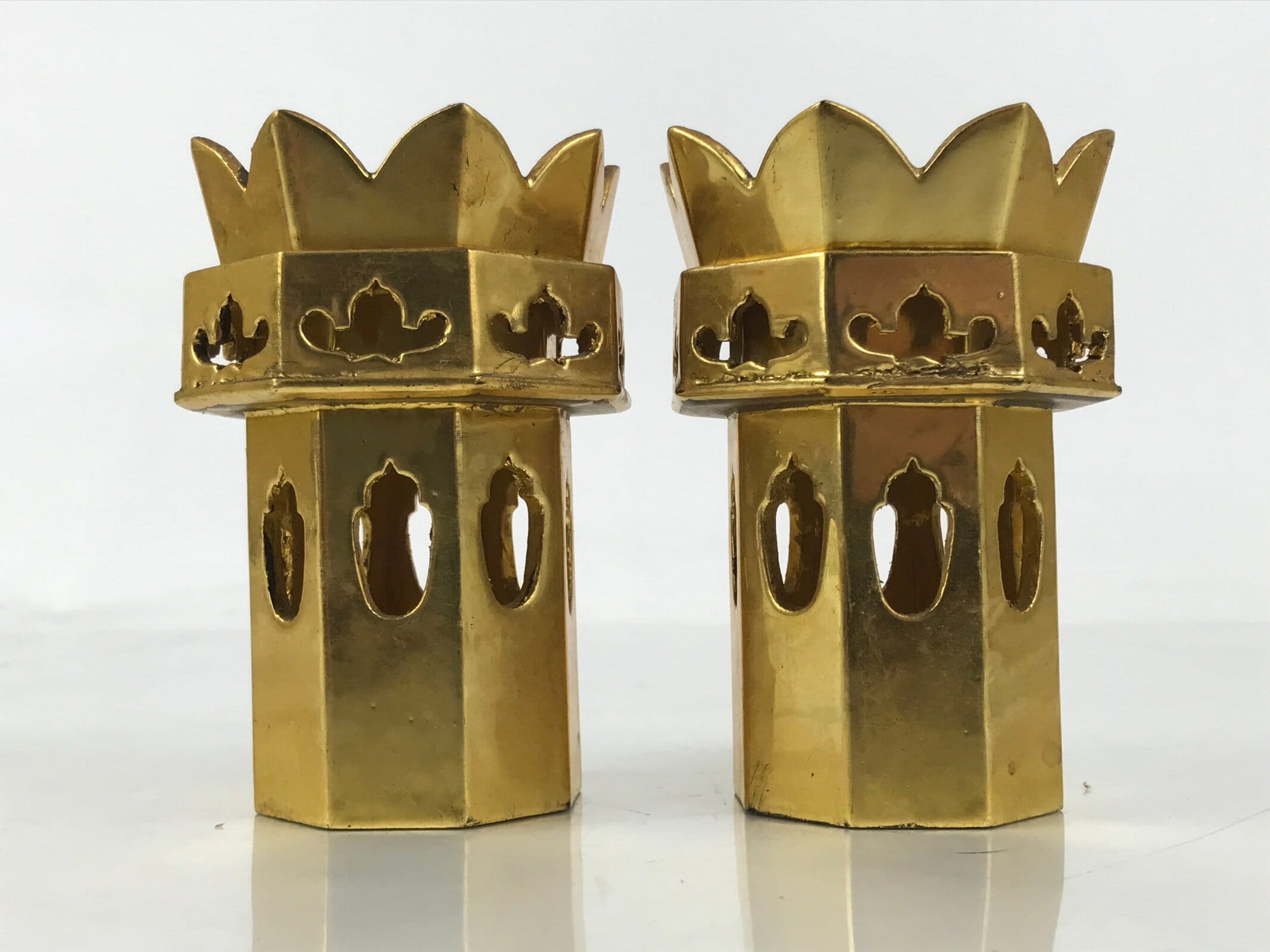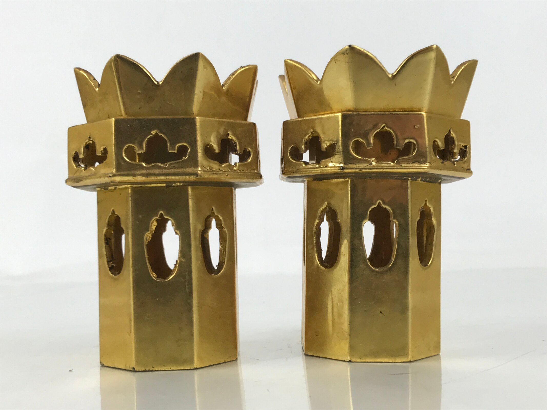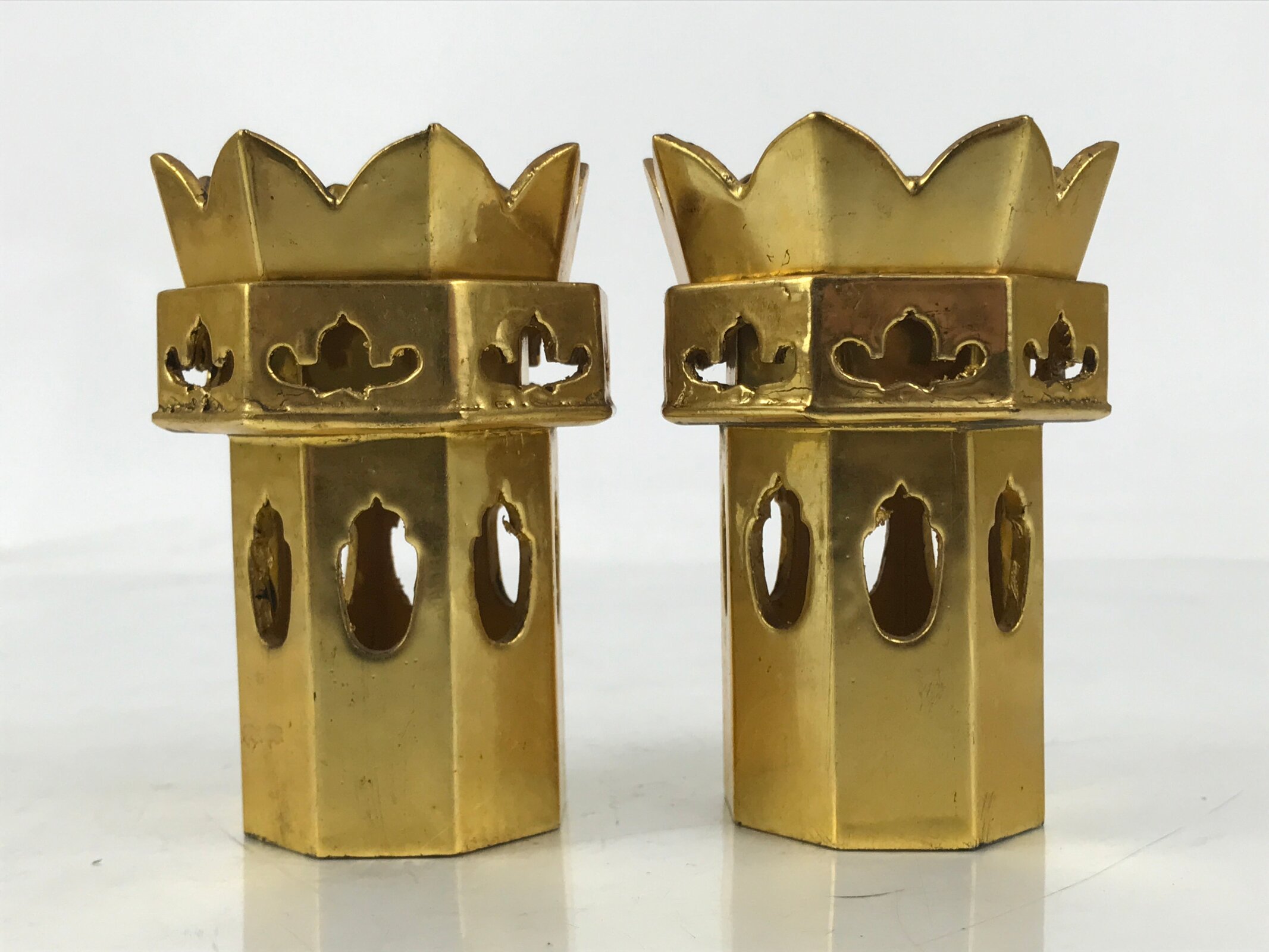 January 24, 2026Japanese Buddhist Altar Fitting Wooden Kuge Offering Stand Vtg 2pc Gold BA667