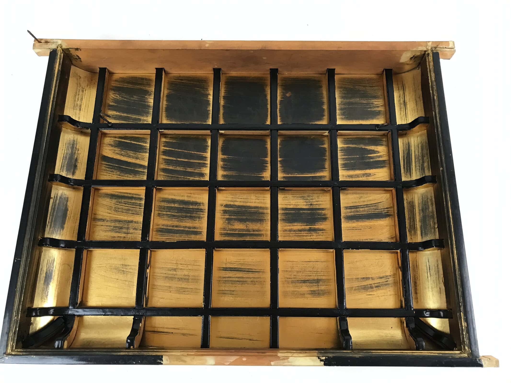 January 22, 2026Japanese Buddhist Altar Wood Lacquer Inside Ceiling Vtg Black Lattice Gold BA288