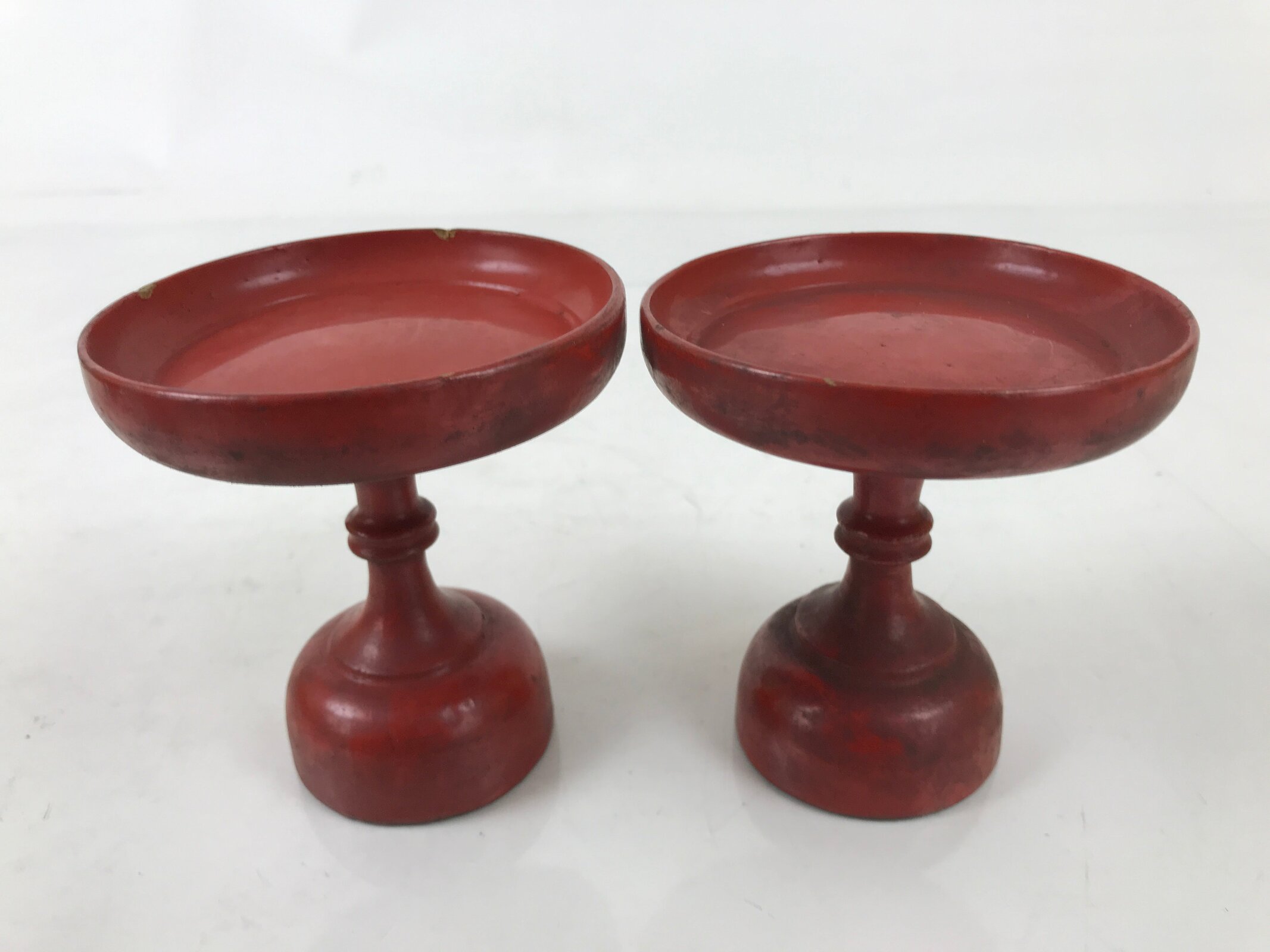 January 24, 2026Antique Japanese Buddhist Altar Wooden Offering Stand Takatsuki 2pc Red BA522