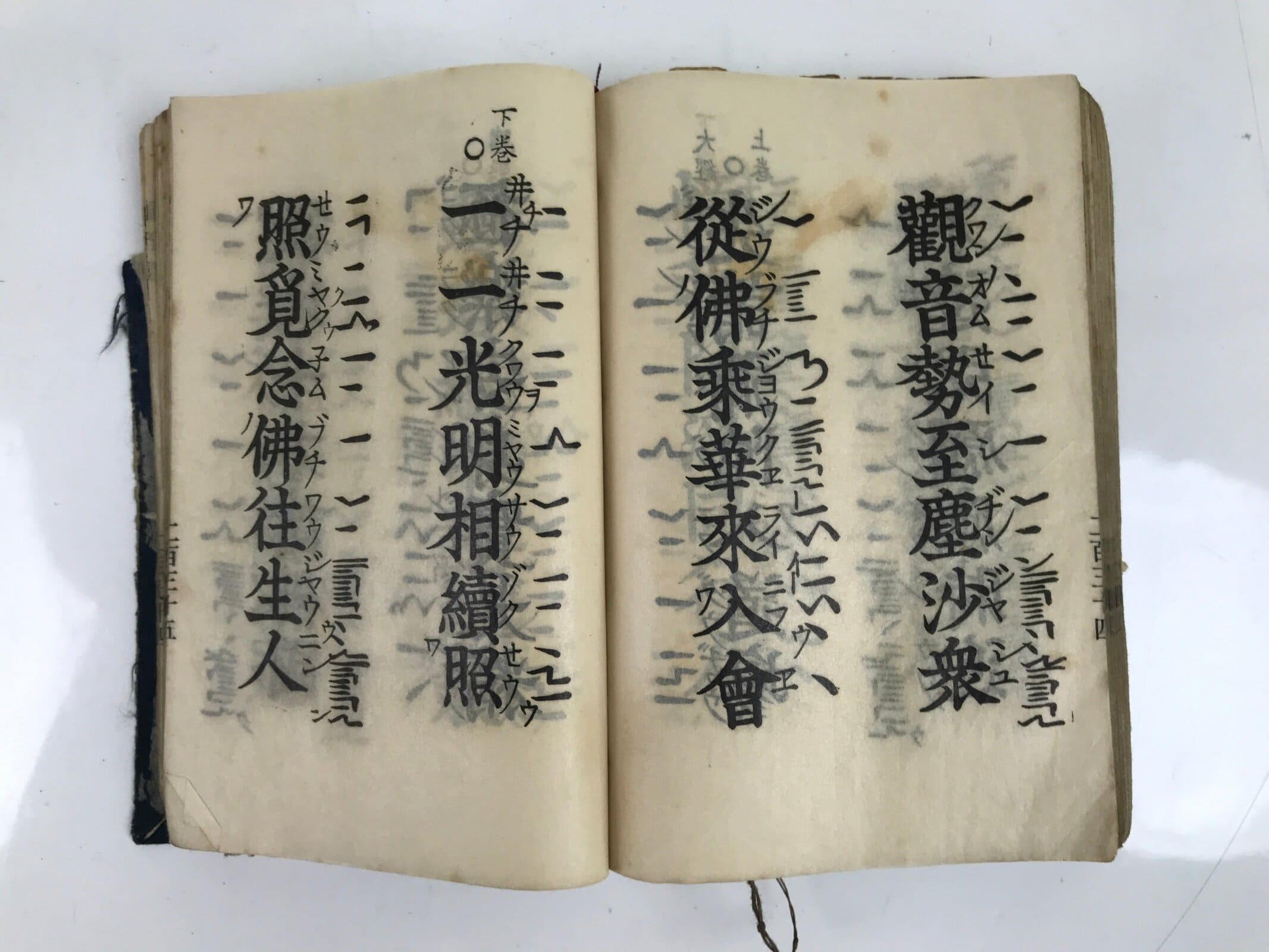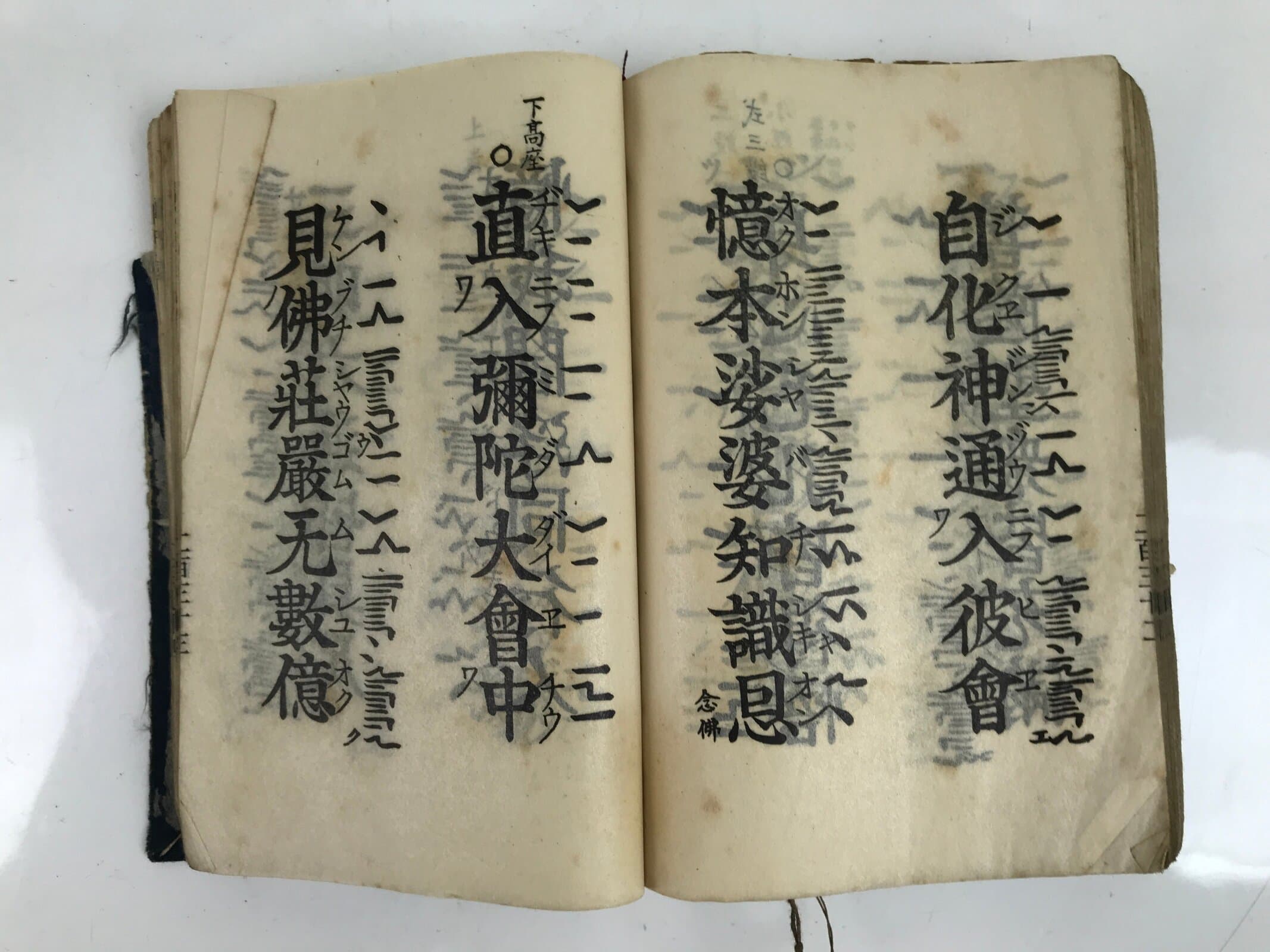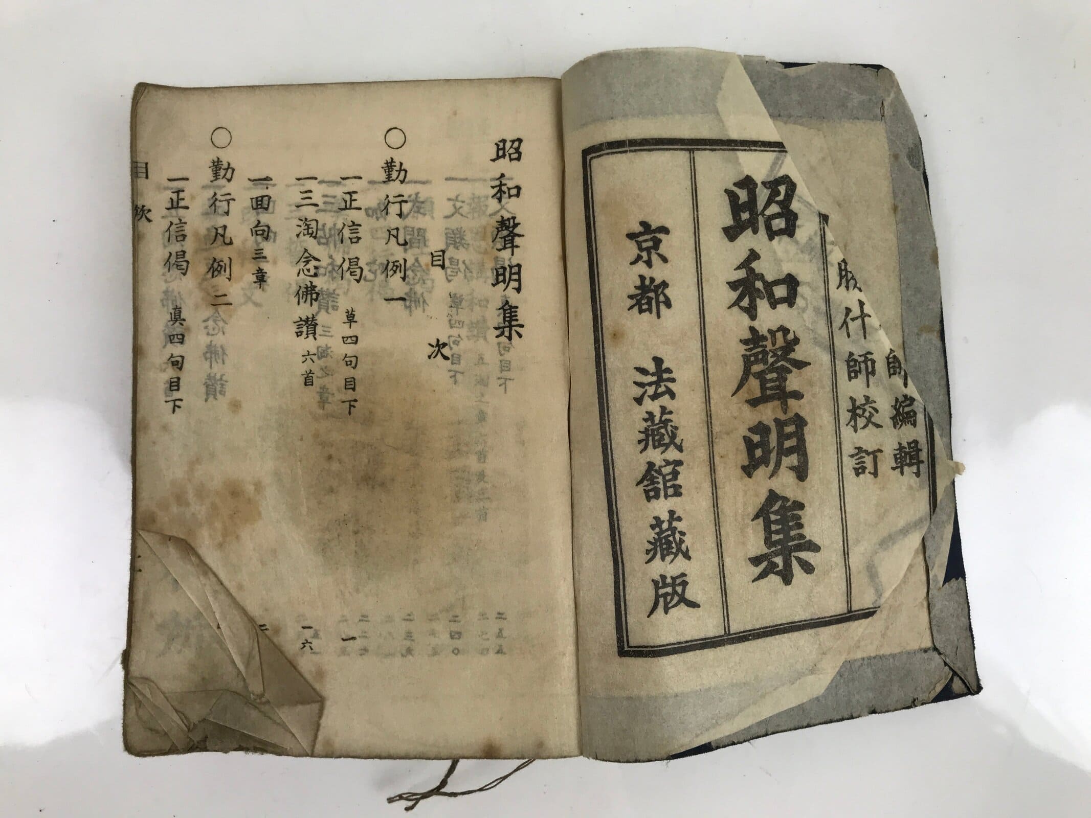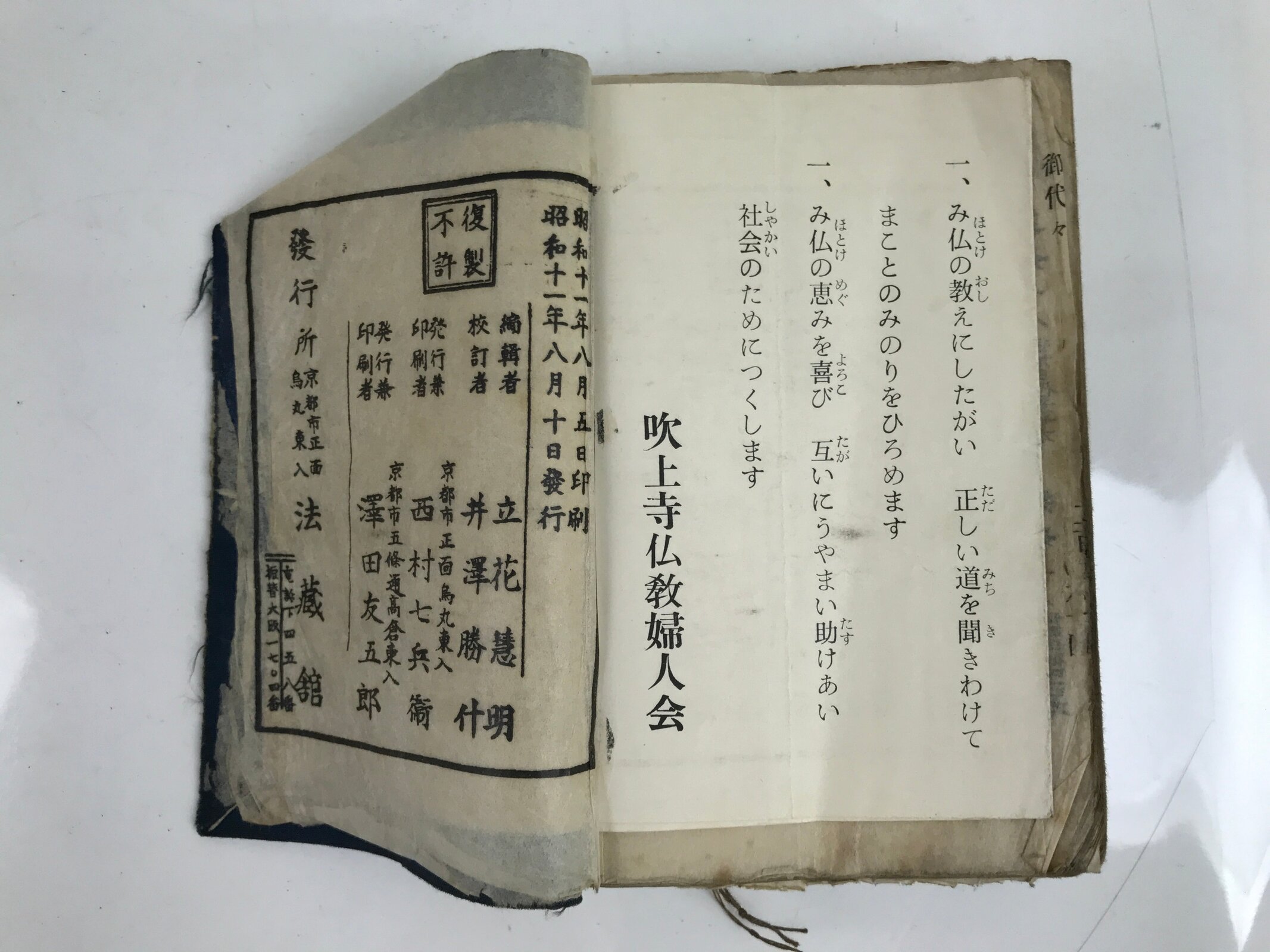 This is a vintage Japanese Buddhist prayer book. This book’s title is Showa Shomyoshu. It has dark blue cover. It was published in 1936 (Showa 11).