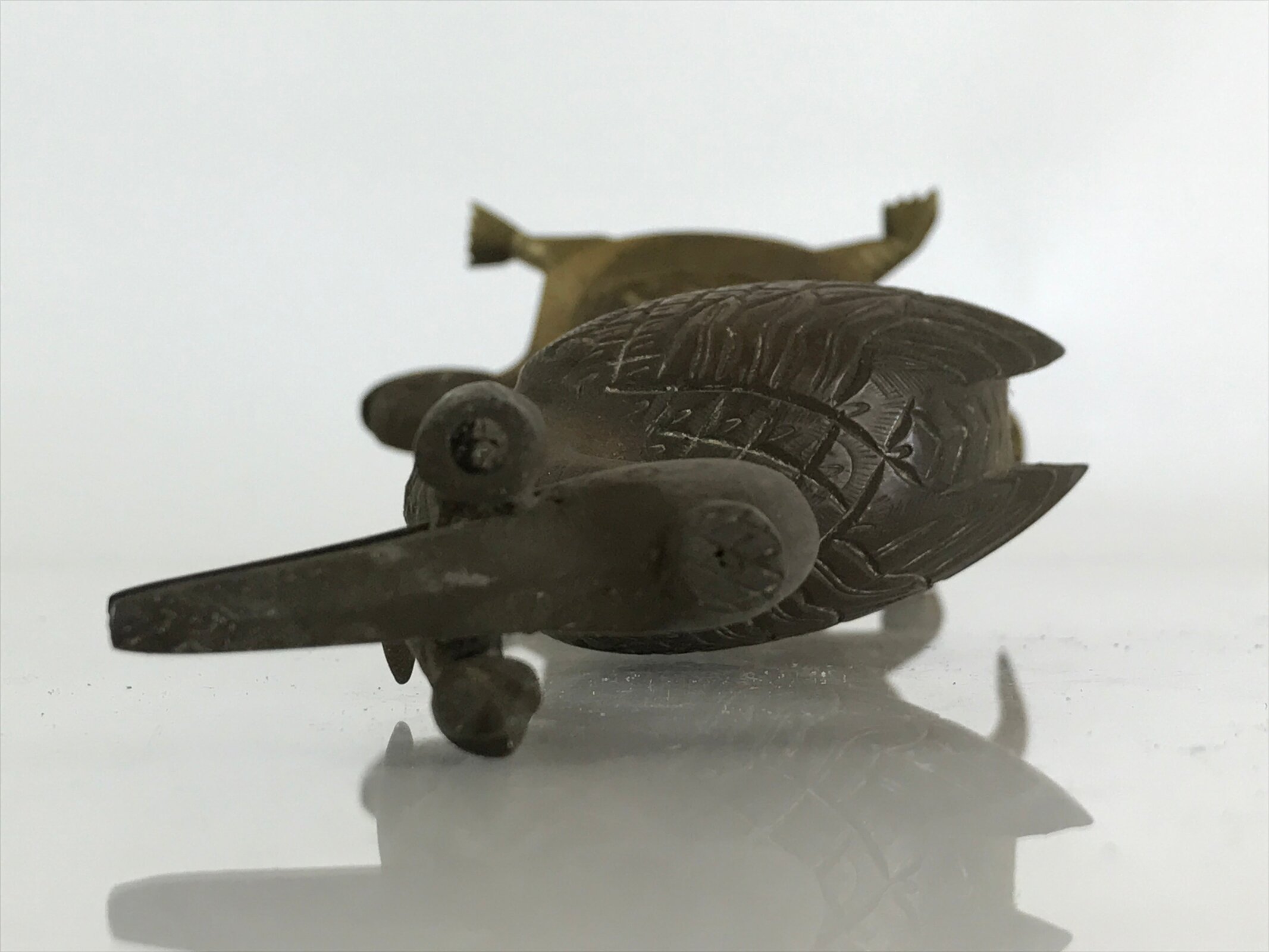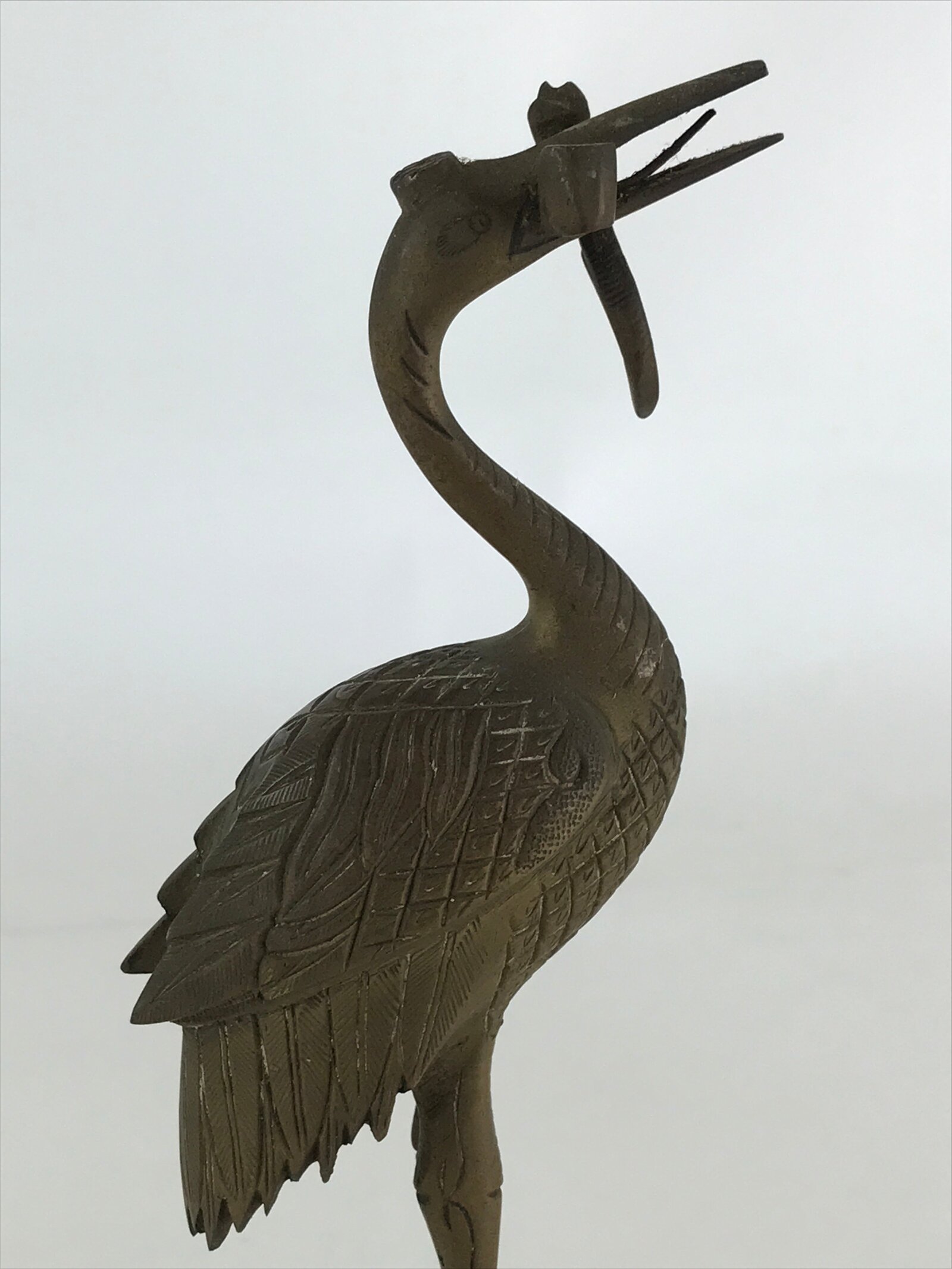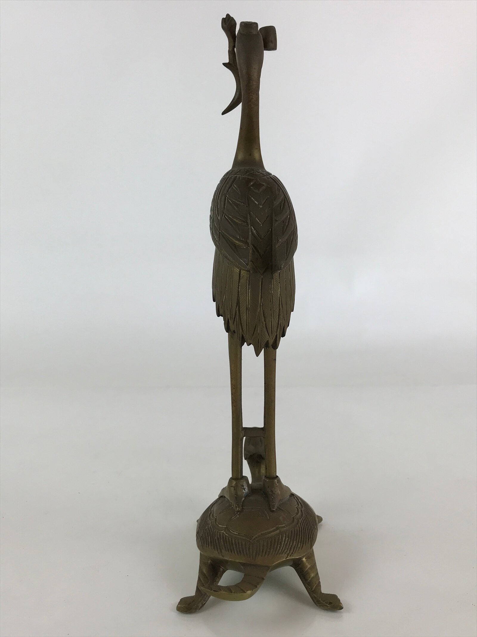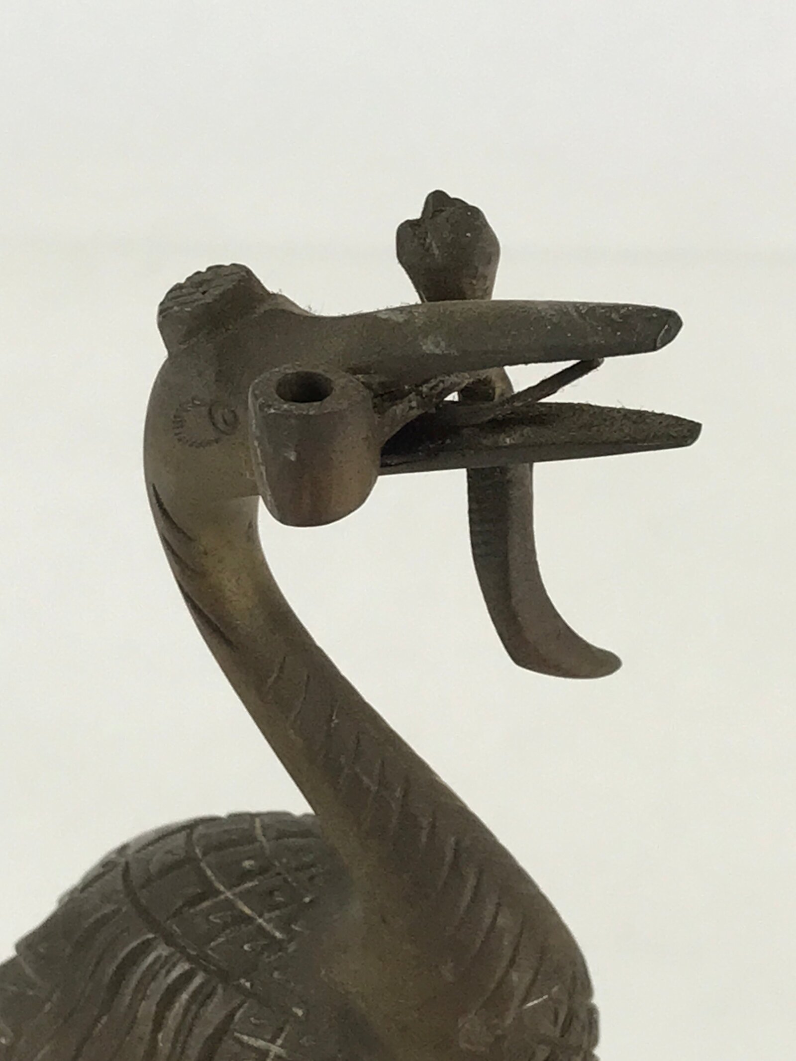 This is a Japanese antique candle holder stand. A stand is designed with a crane on top of a turtle and a crane holds a lotus flower. This is a Buddhist altar fittings.