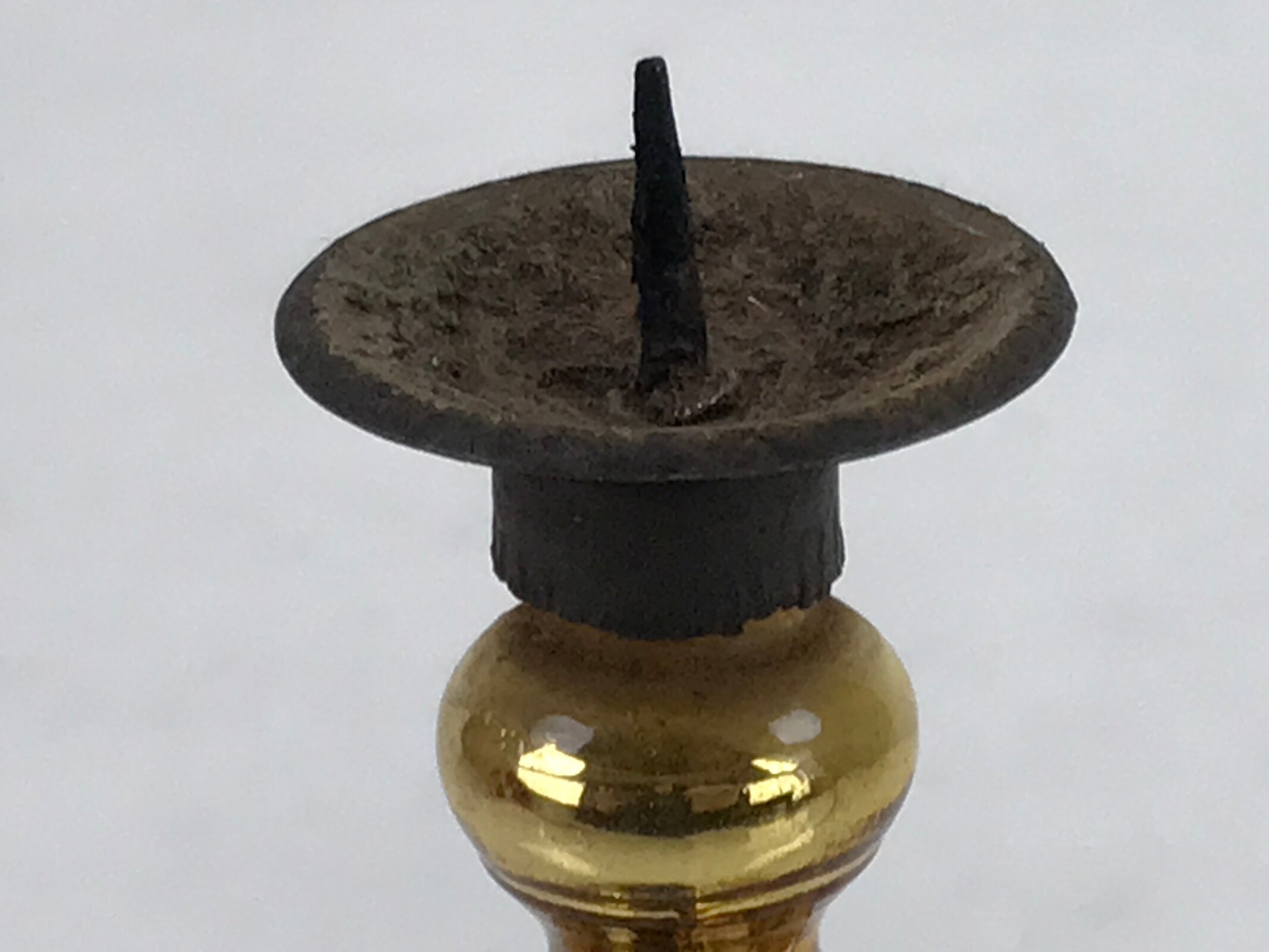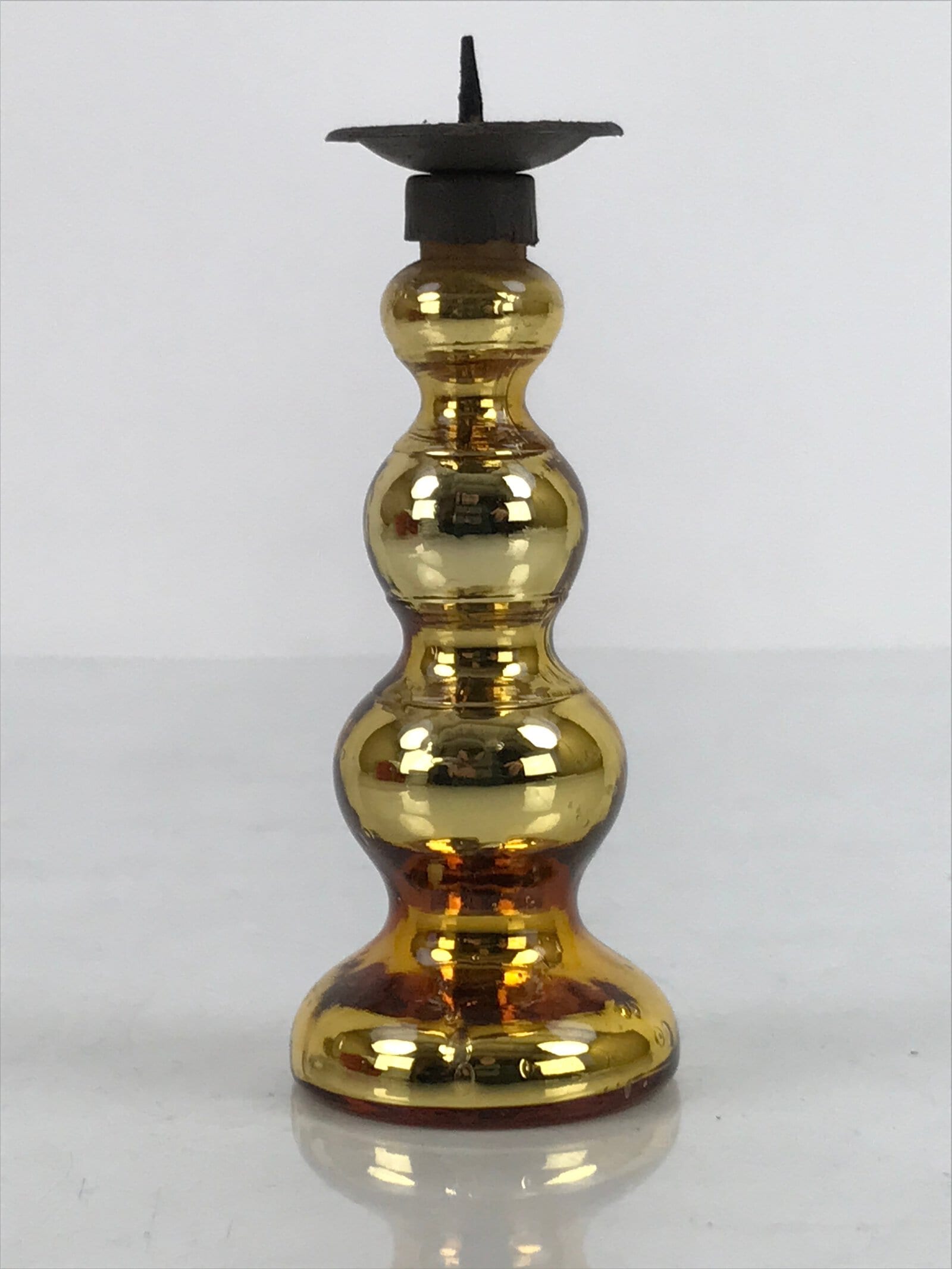This item is a Japanese vintage Buddhist altar candle holder stand. This glass candlestick is gold on the inside with a metal top piece. This item has a very unique, retro feel. Candlestands or candlesticks are basic Buddhist tools used in most sects and an essential for Buddhist altars (Butsudan).