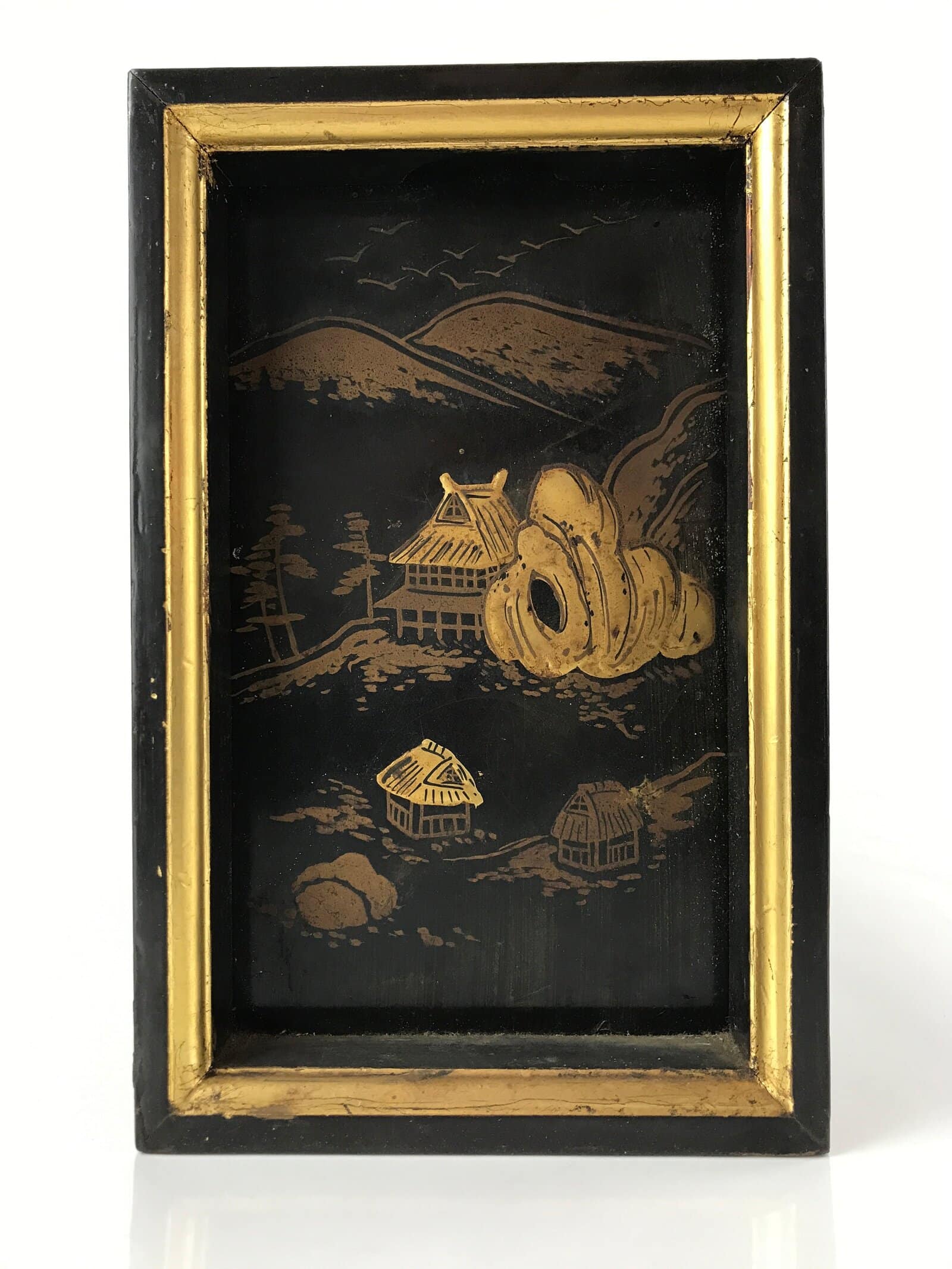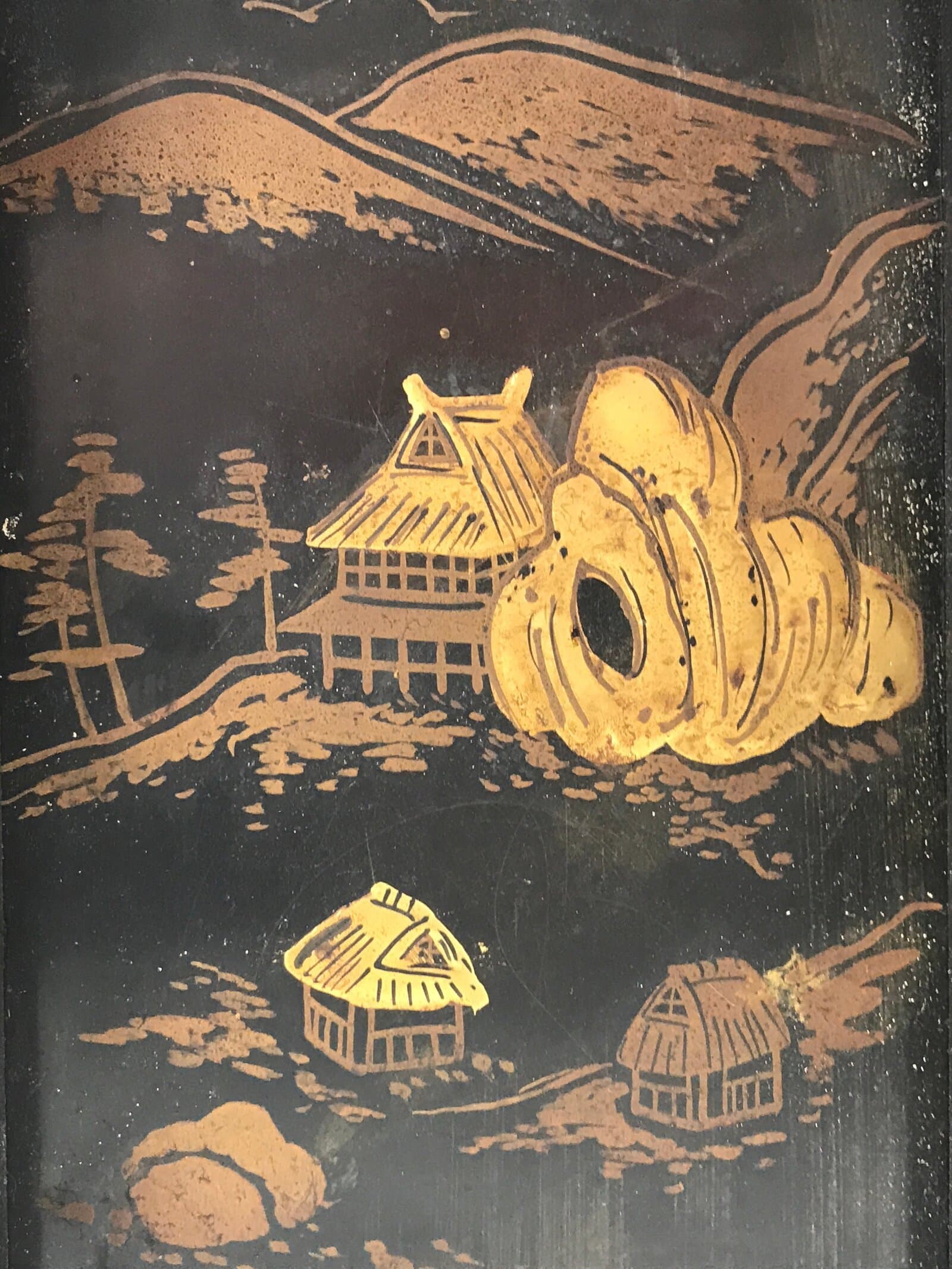 January 21, 2026Japanese Buddhist Altar Lacquered Drawer Gilt Makie Village Scenery Gold BA272