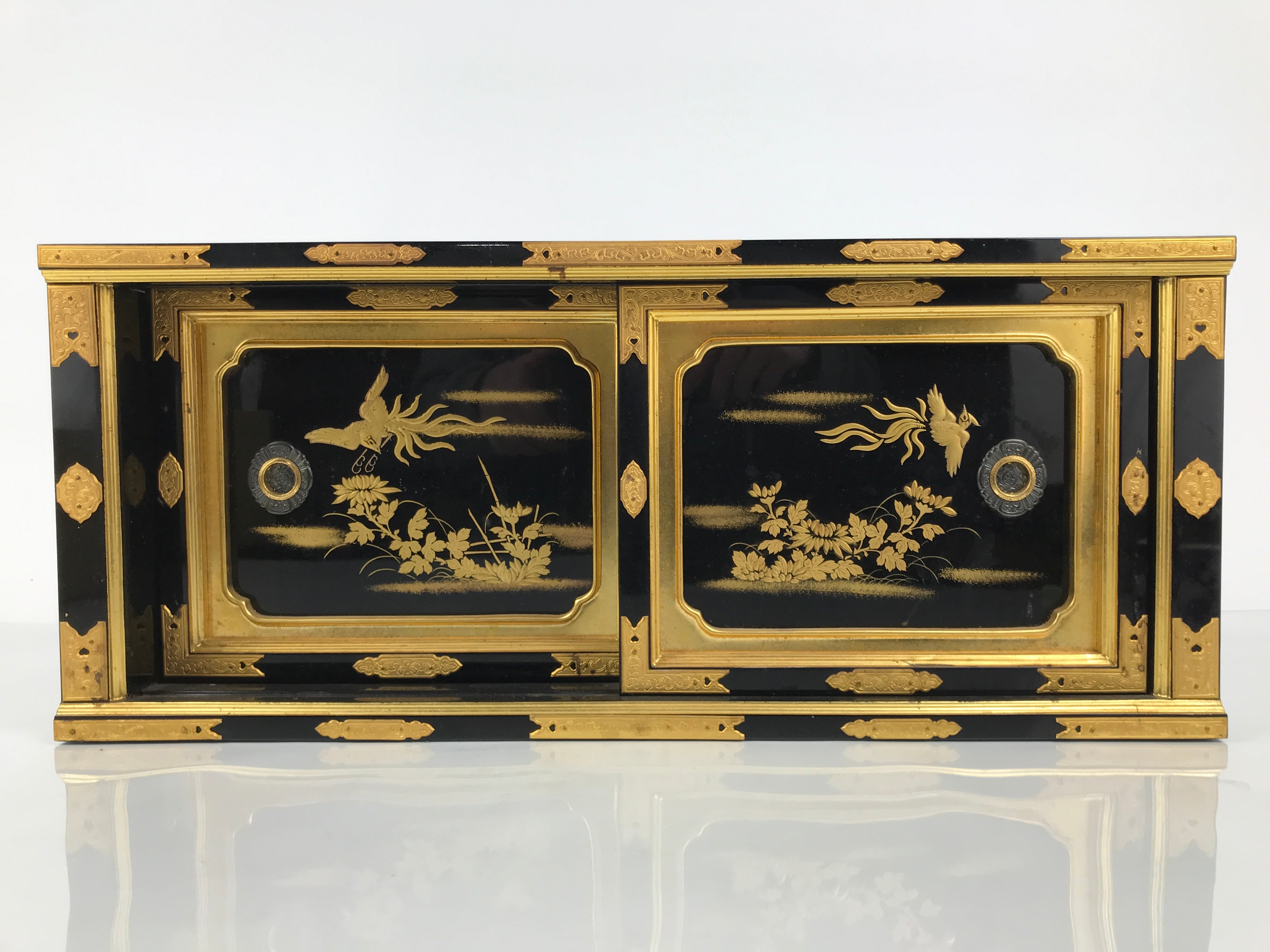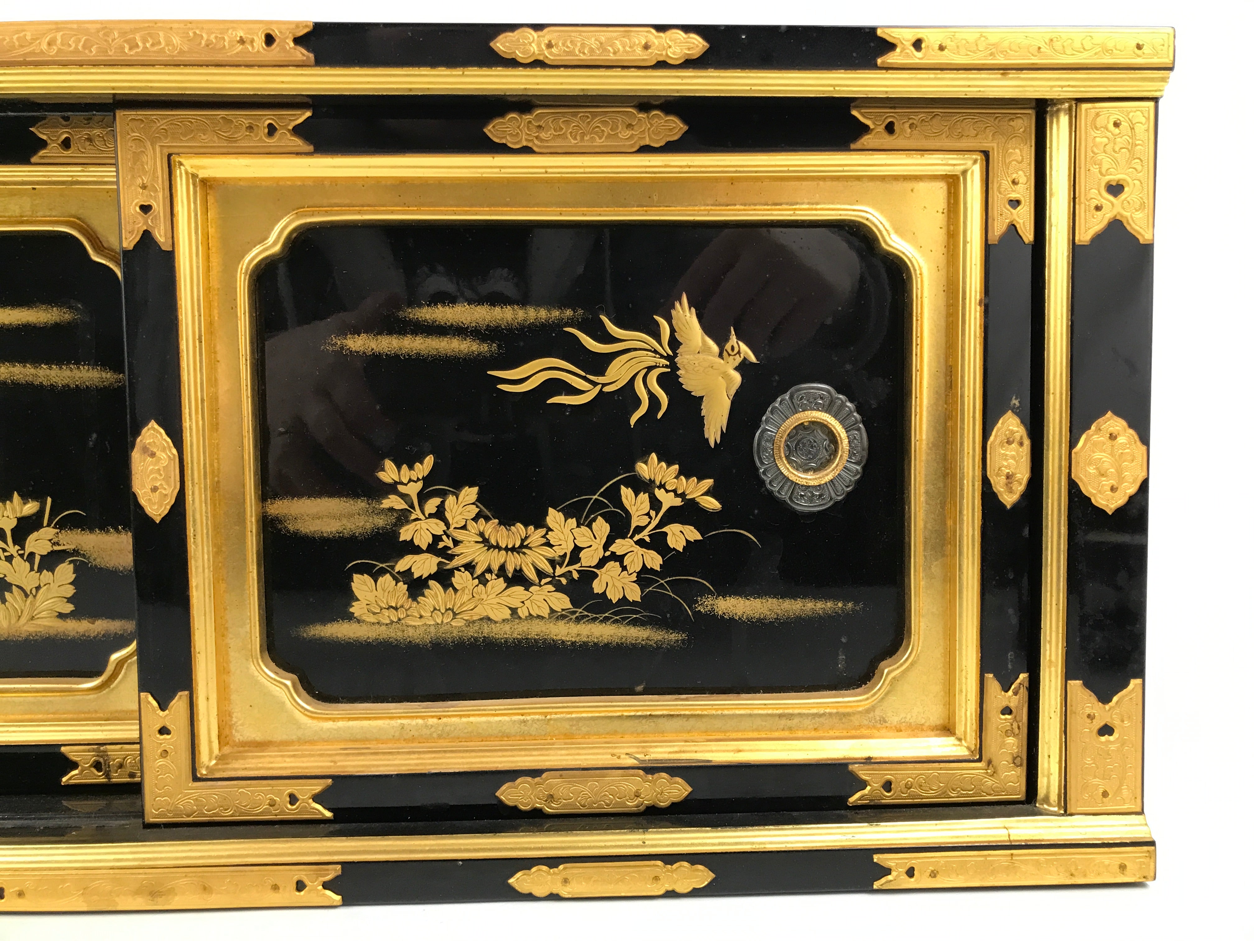 April 9, 2026Japanese Buddhist Altar Lacquer Wood Sliding Doors Brass Black Gold Makie BP23