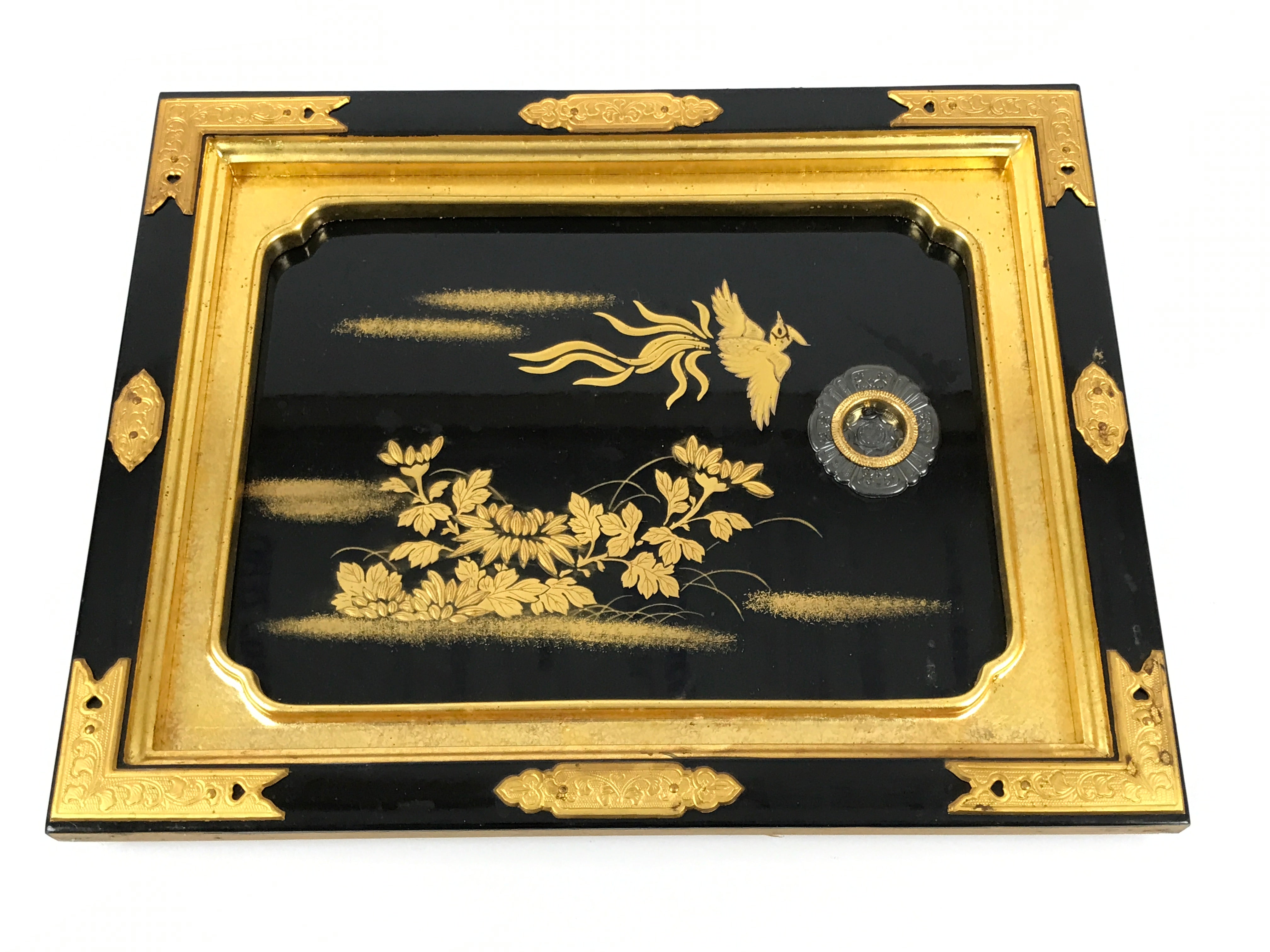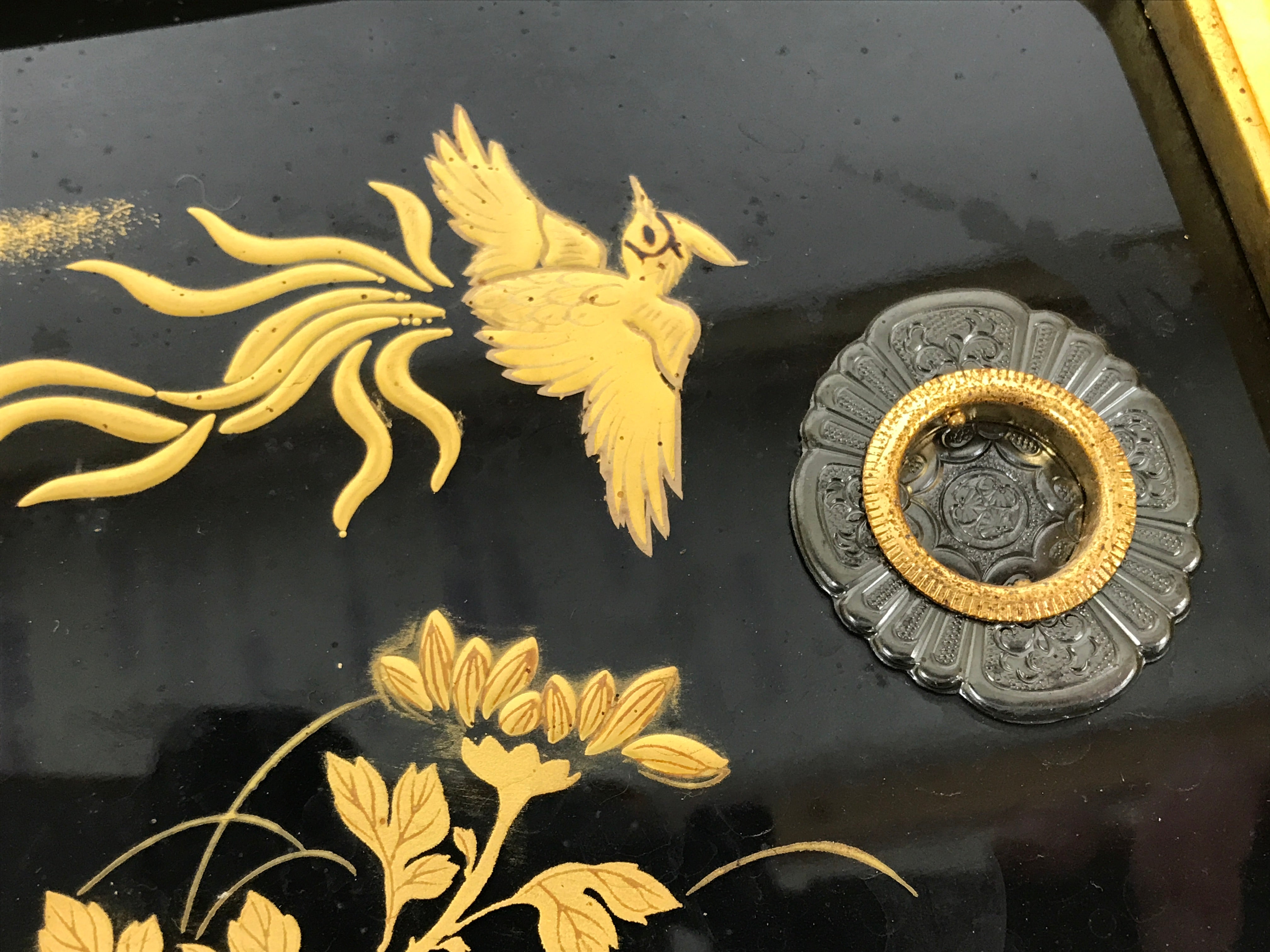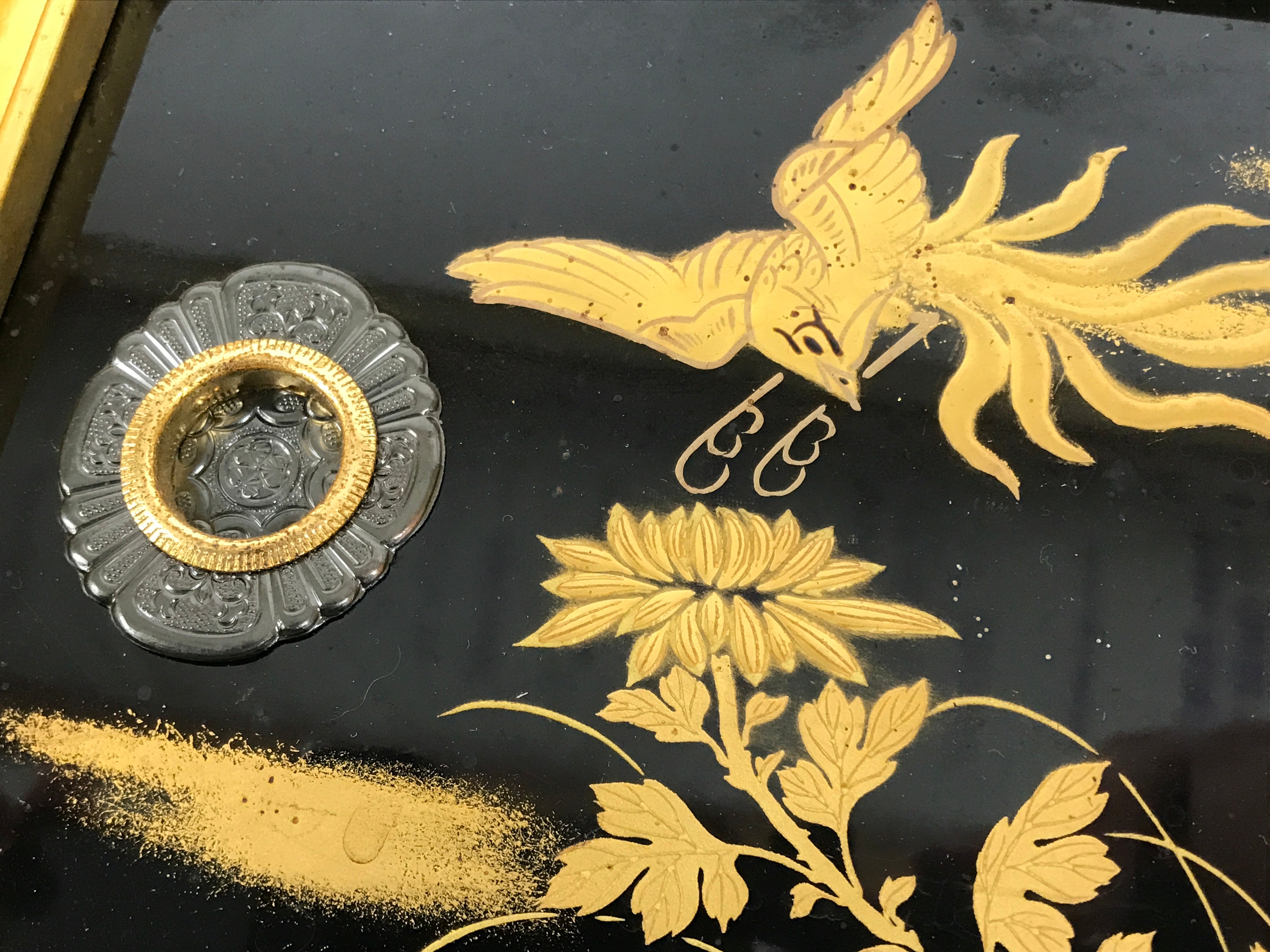 Japanese Buddhist Altar Lacquered Drawer Brass Black Gold Bellflower Makie BP24