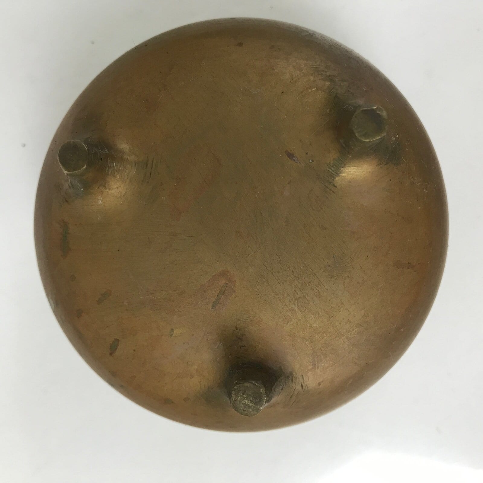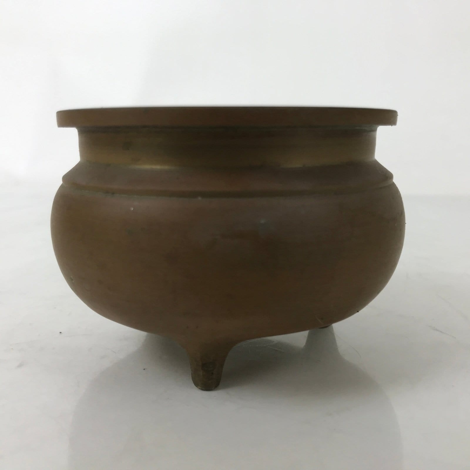 This is a vintage Japanese Buddhist brass incense burner (koro) commonly used in Buddhist altars. It is round cup shape with a brown color and three small legs, perfect for home altars. It is used for burning incense powder or sticks. Burning incense is a means of purifying the body of the worshiper.