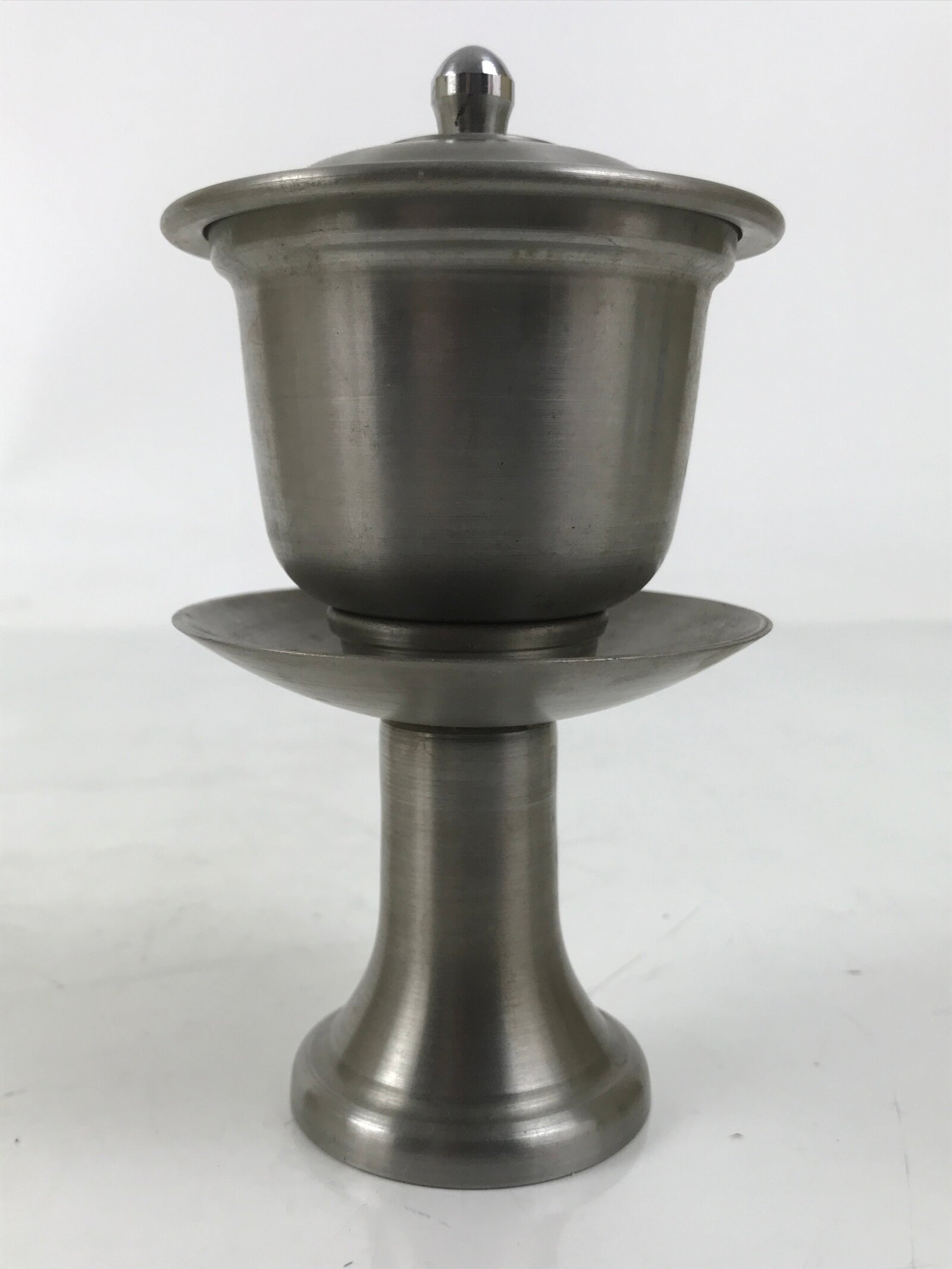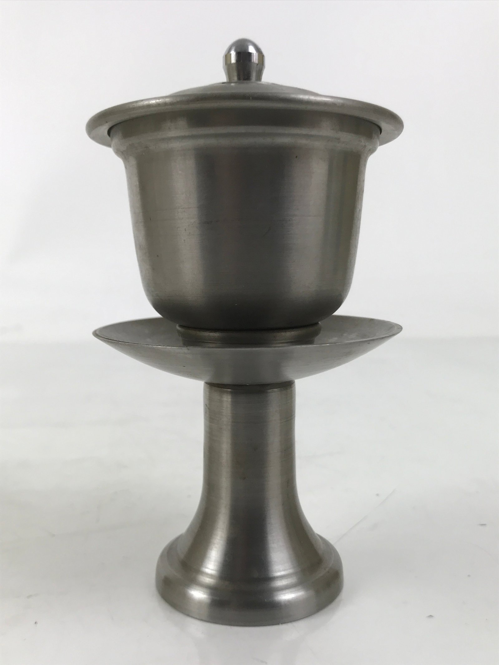 January 24, 2026Japanese Buddhist Altar Metal Water Offering Cup Tea Chaki Silver Stand BA639