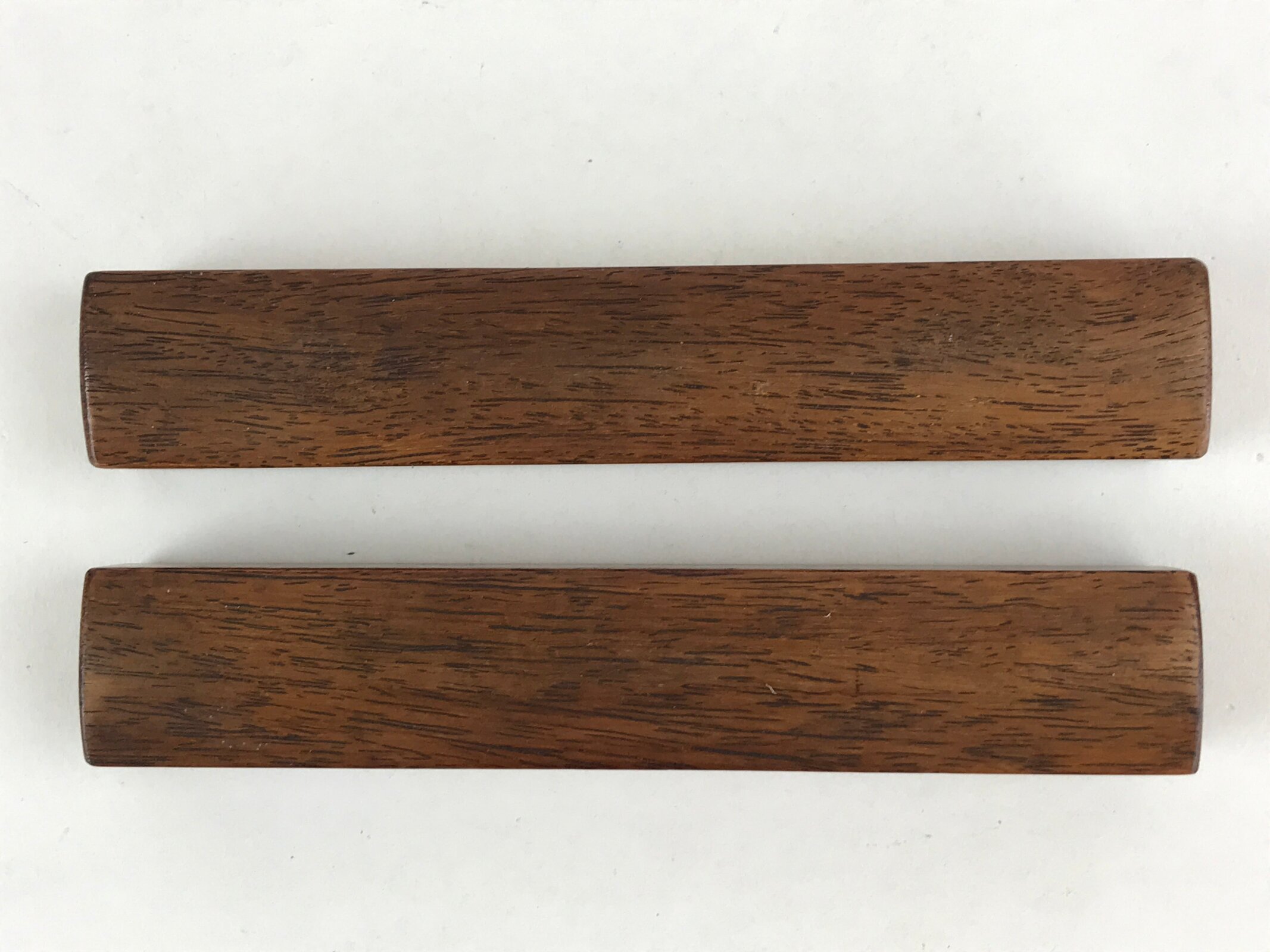 Japanese Buddhist Percussion Instrument Hyoushigi Ongi Vtg Wood Brown BA76