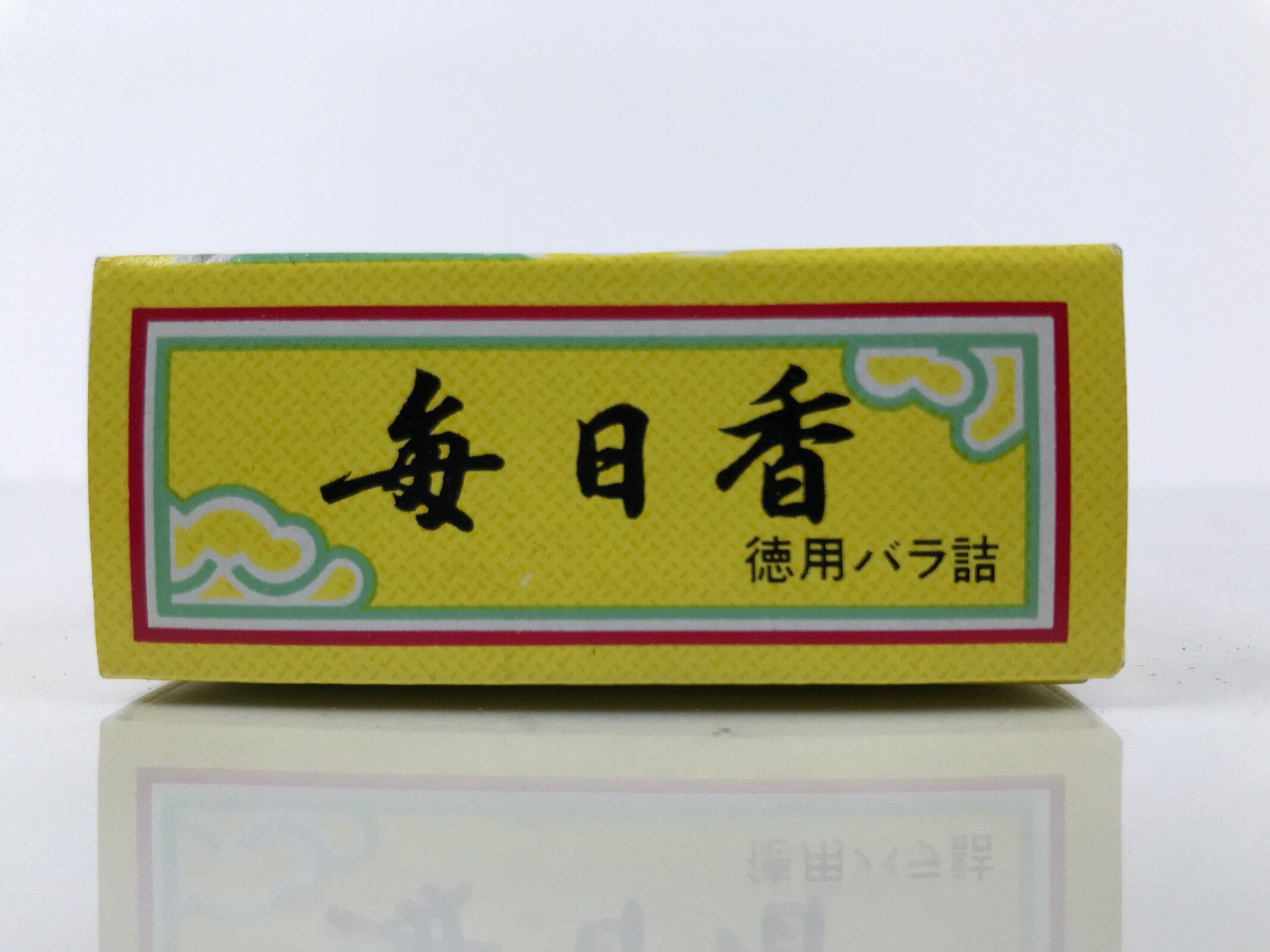 - Characters on the box: 白檀の香りbyakudan no kaori scent of sandalwood, 毎日香 mainichiko product name;毎日 is everyday and 香 is incense, 日本製 nihonsei made in Japan
