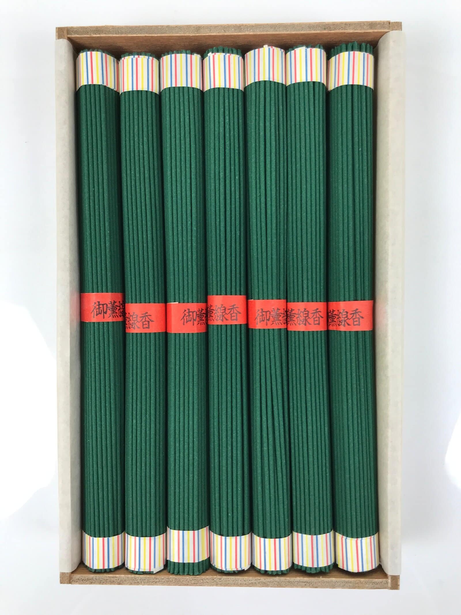 These are vintage Japanese Buddhist o-senko, incense sticks cased in a wooden box. In the box, there are seven bundles of sticks, and one bundle contains about sixty-five sticks; about four hundred and fifty-five sticks in total.