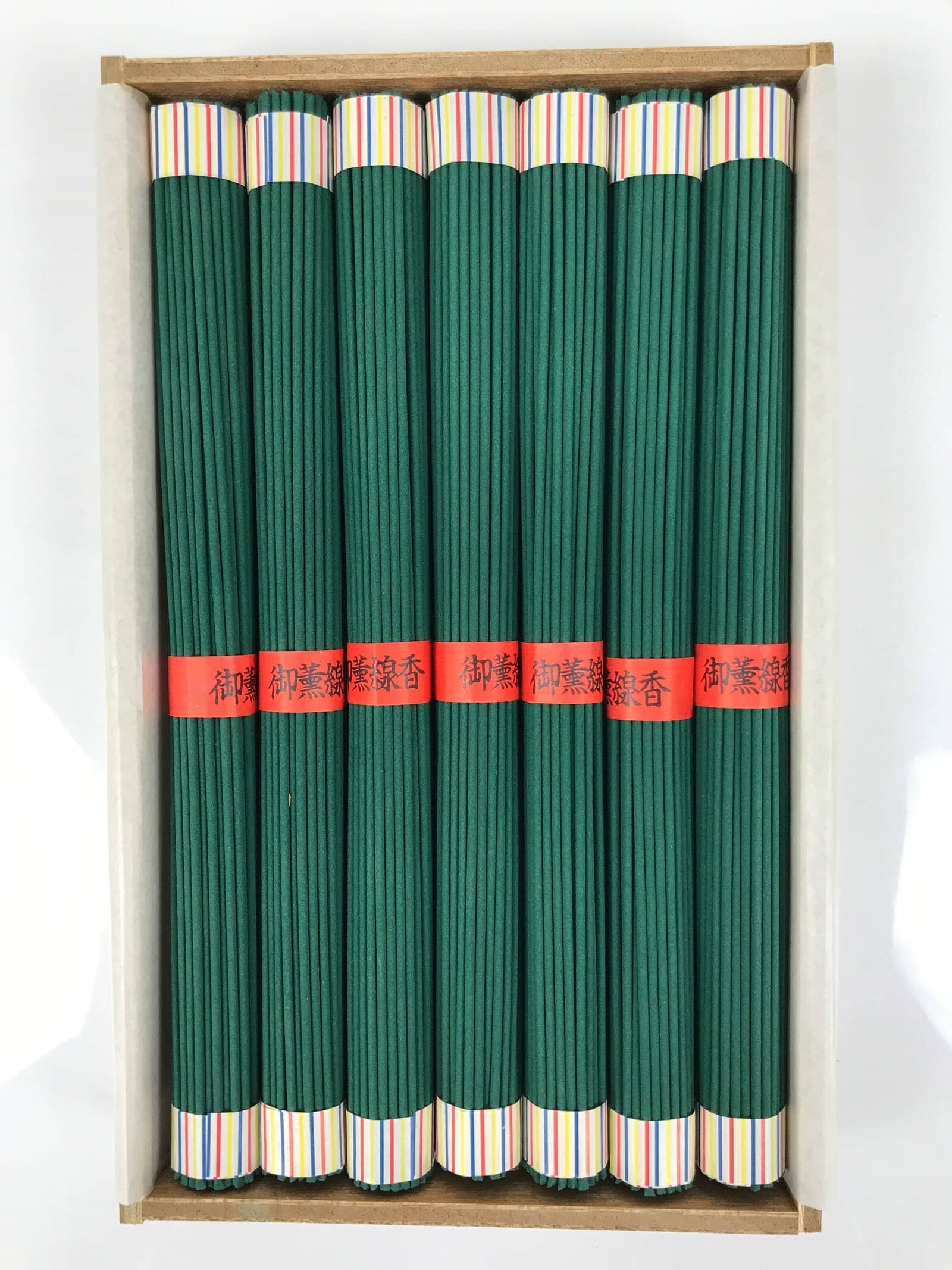 These are vintage Japanese Buddhist o-senko, incense sticks cased in a wooden box. In the box, there are seven bundles of sticks, and one bundle contains about sixty-five sticks; about four hundred and fifty-five sticks in total.