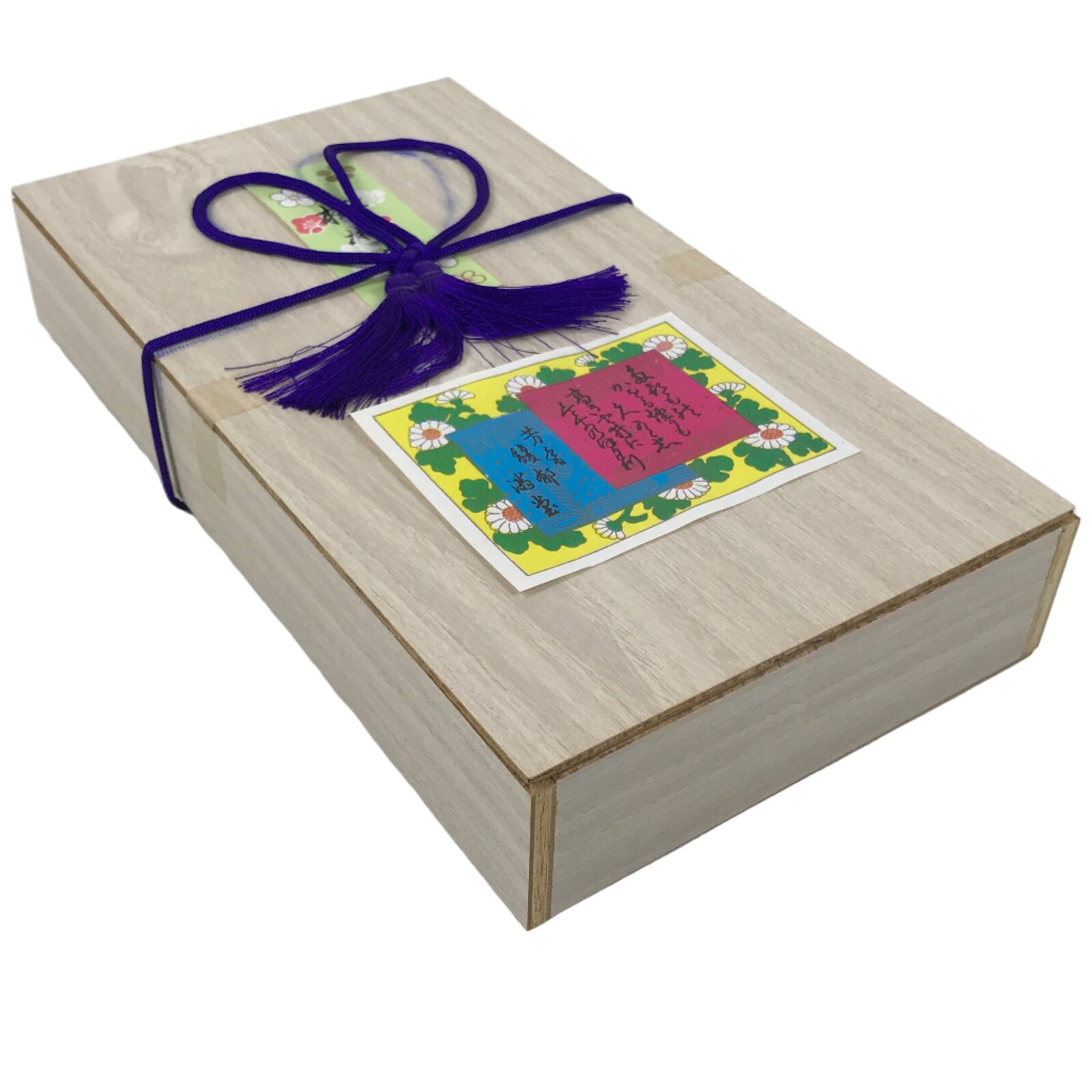 These are vintage Japanese Buddhist o-senko, incense sticks cased in a wooden box. It contains about one hundred and fifty long sticks and one hundred and eighty short sticks. In the wooden box, the long sticks are cased in three paper boxes, short sticks are in two paper boxes. The wooden box and the lid are tied with a purple string.