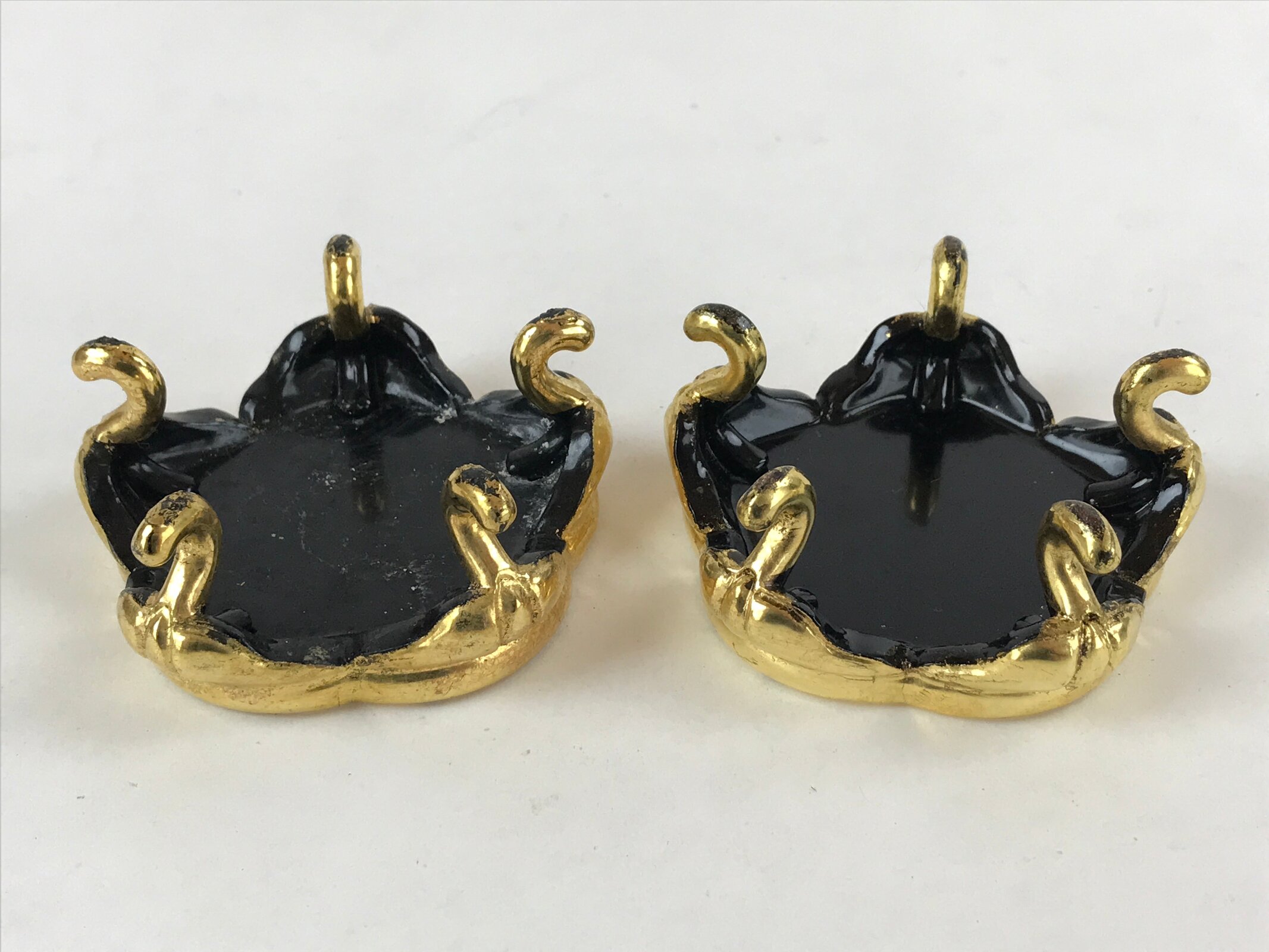 Japanese Buddhist Altar Fitting Offering Cup Stand Vtg 2pc Bukki Black BA159