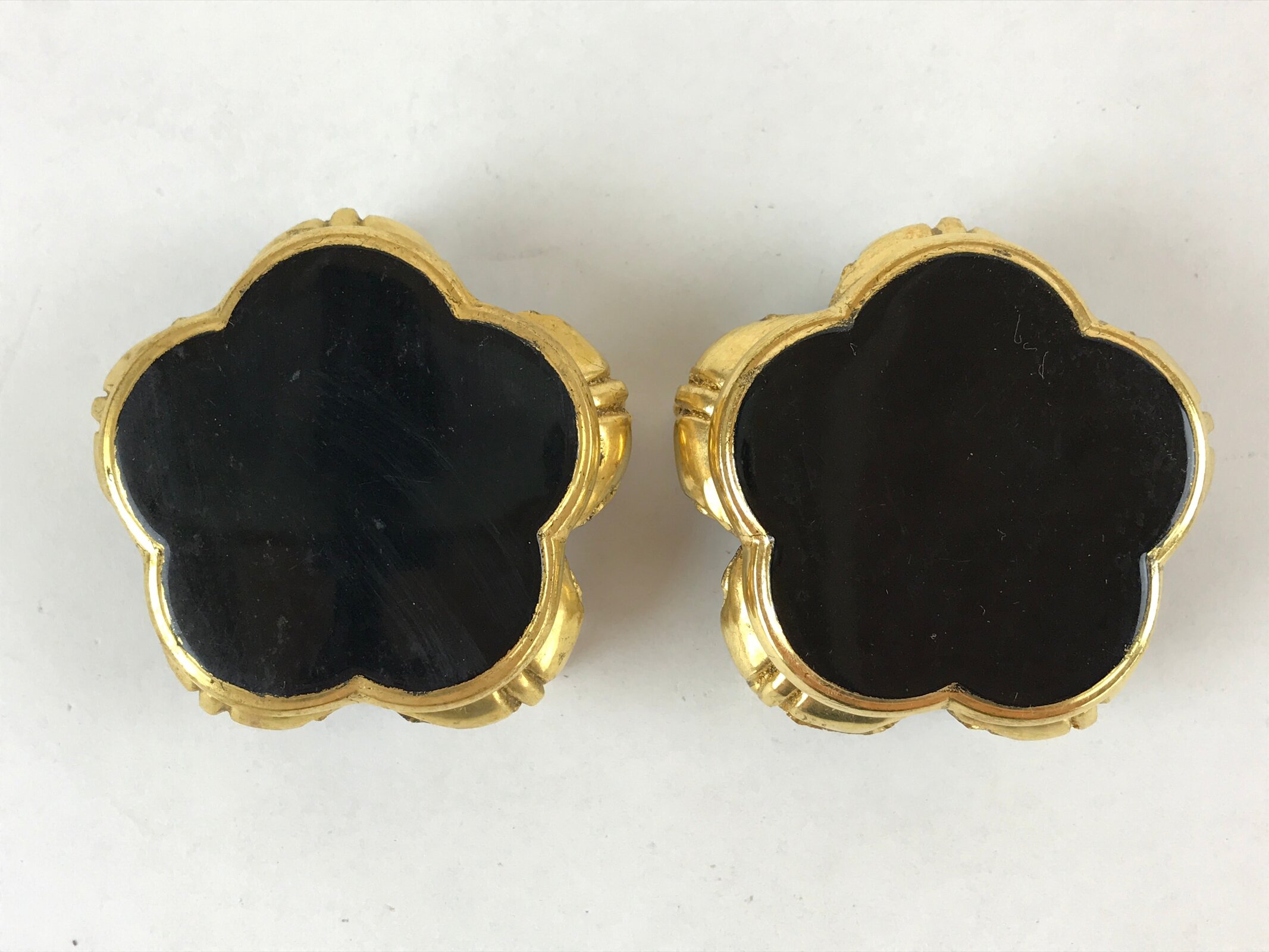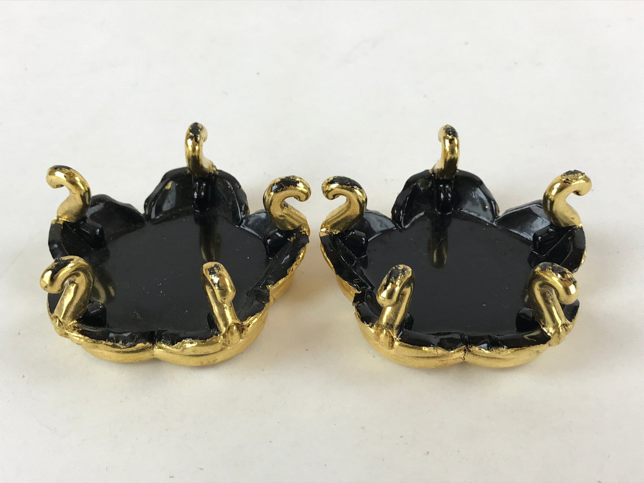 Japanese Buddhist Altar Fitting Offering Cup Stand Vtg 2pc Bukki Black BA161