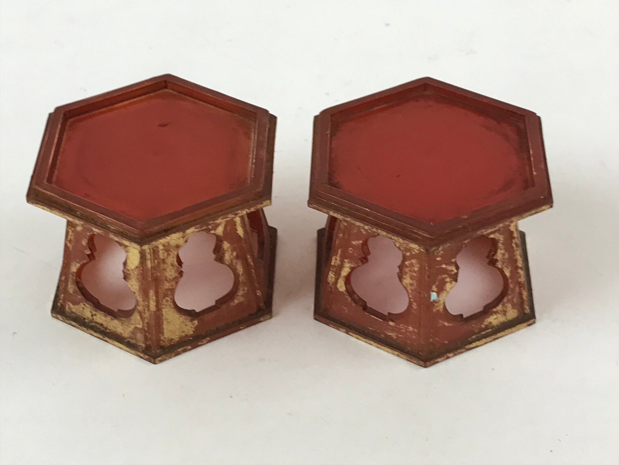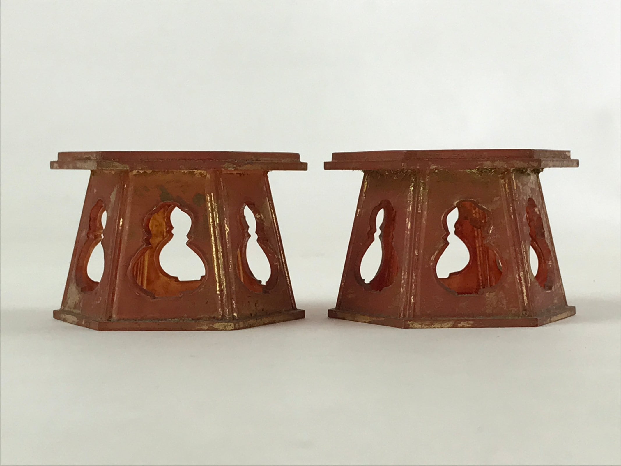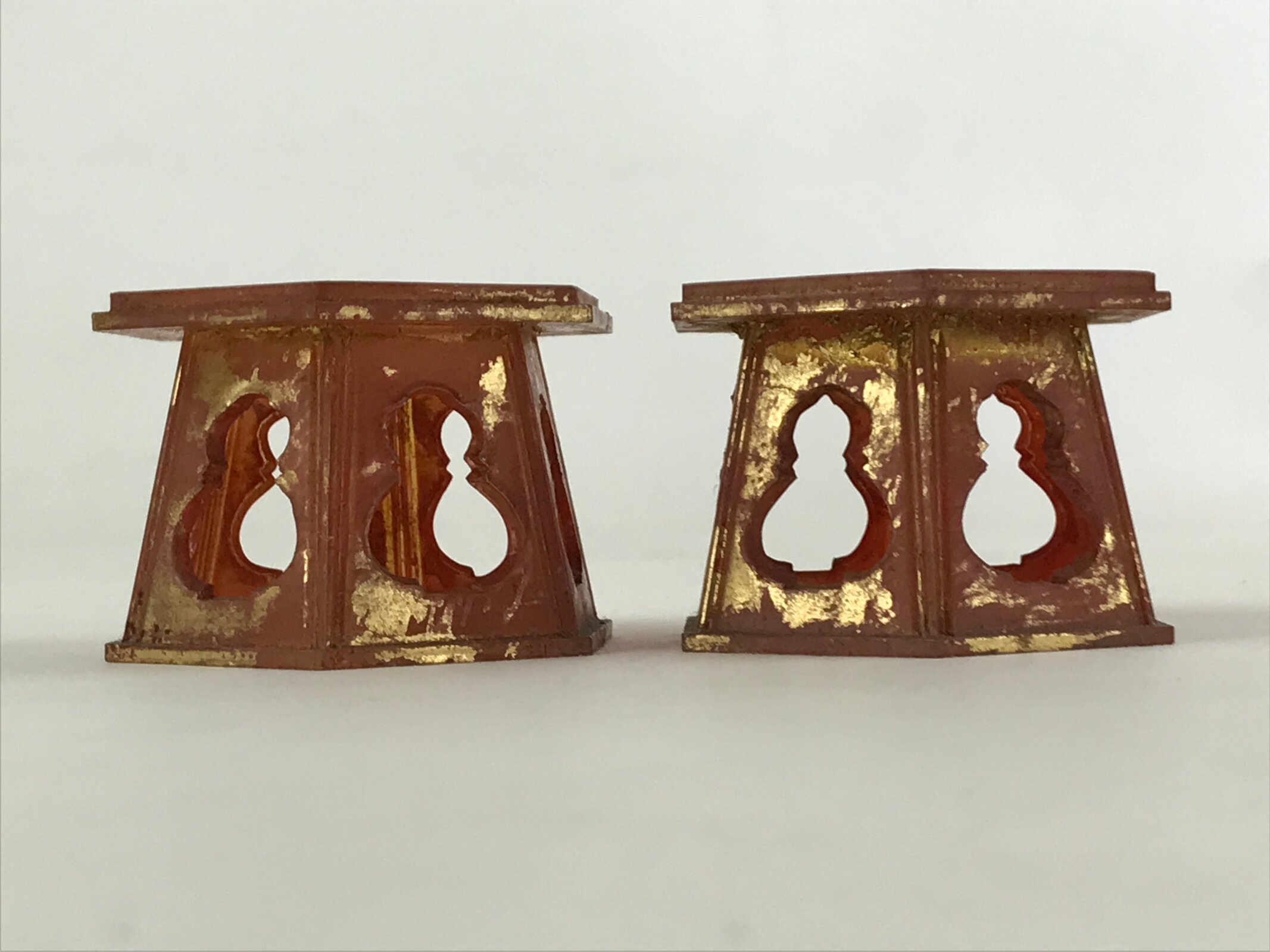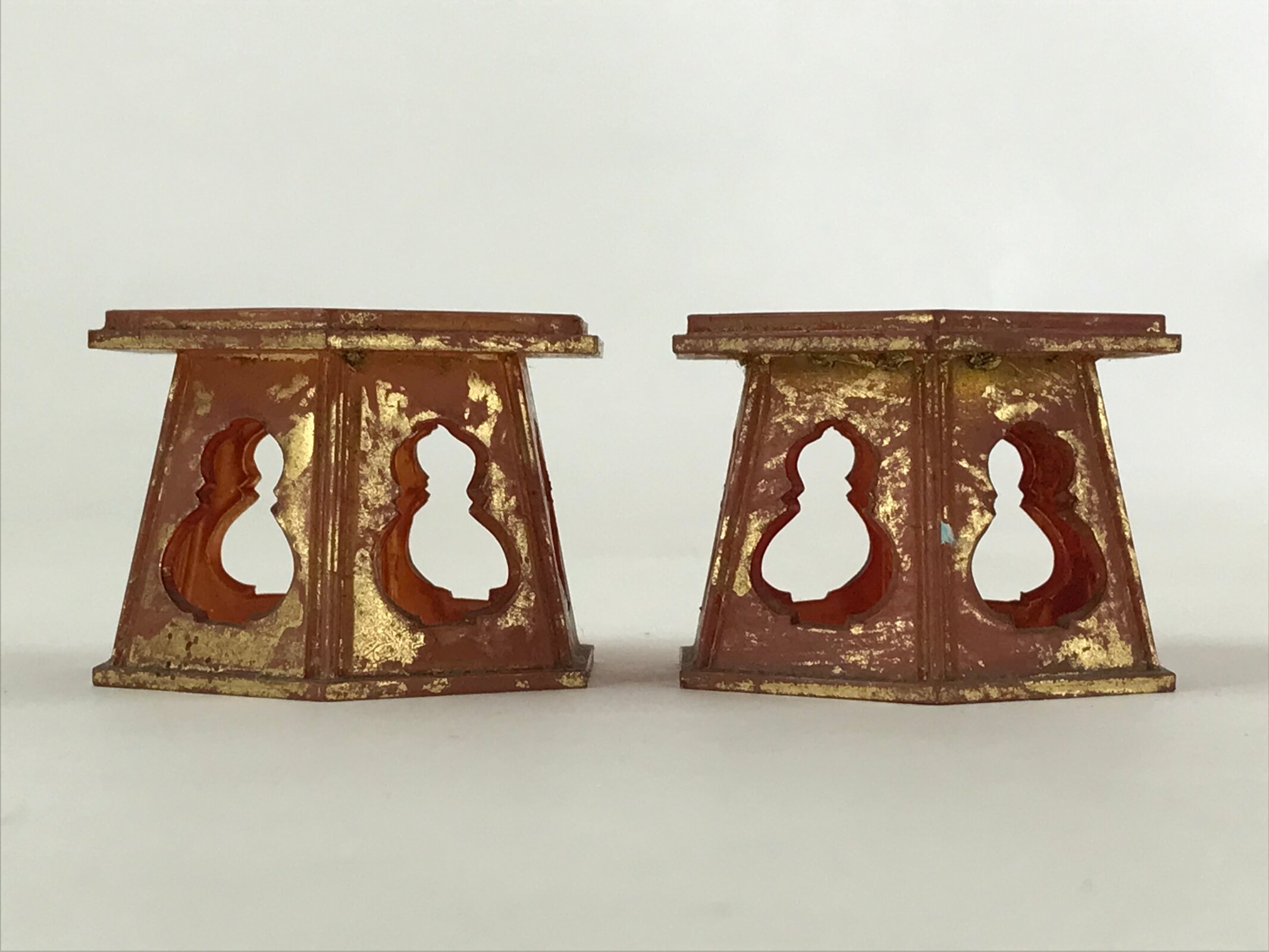 Japanese Buddhist Altar Fitting Resin Kuge Offering Stand Vtg 2pc Gold BA104