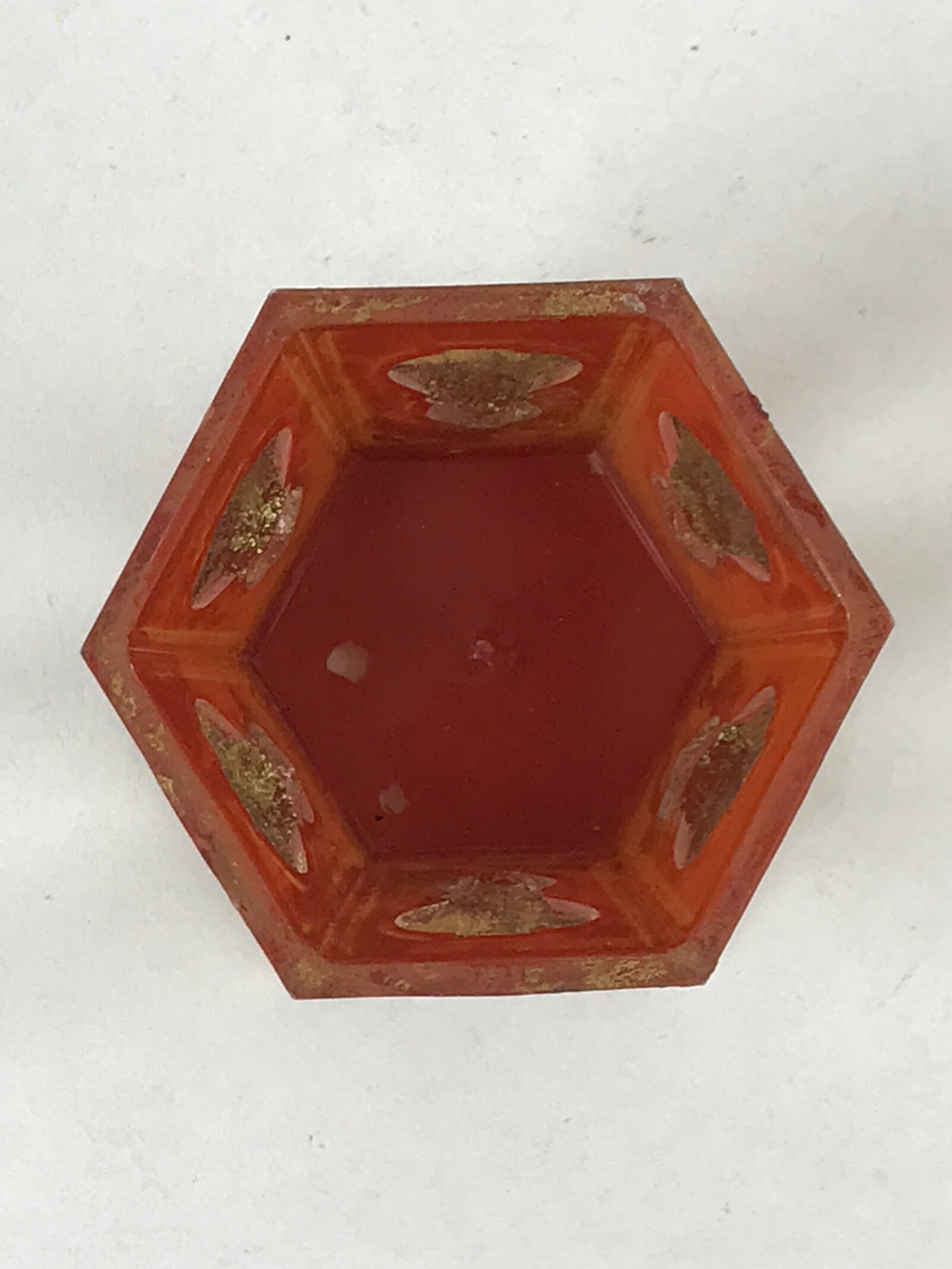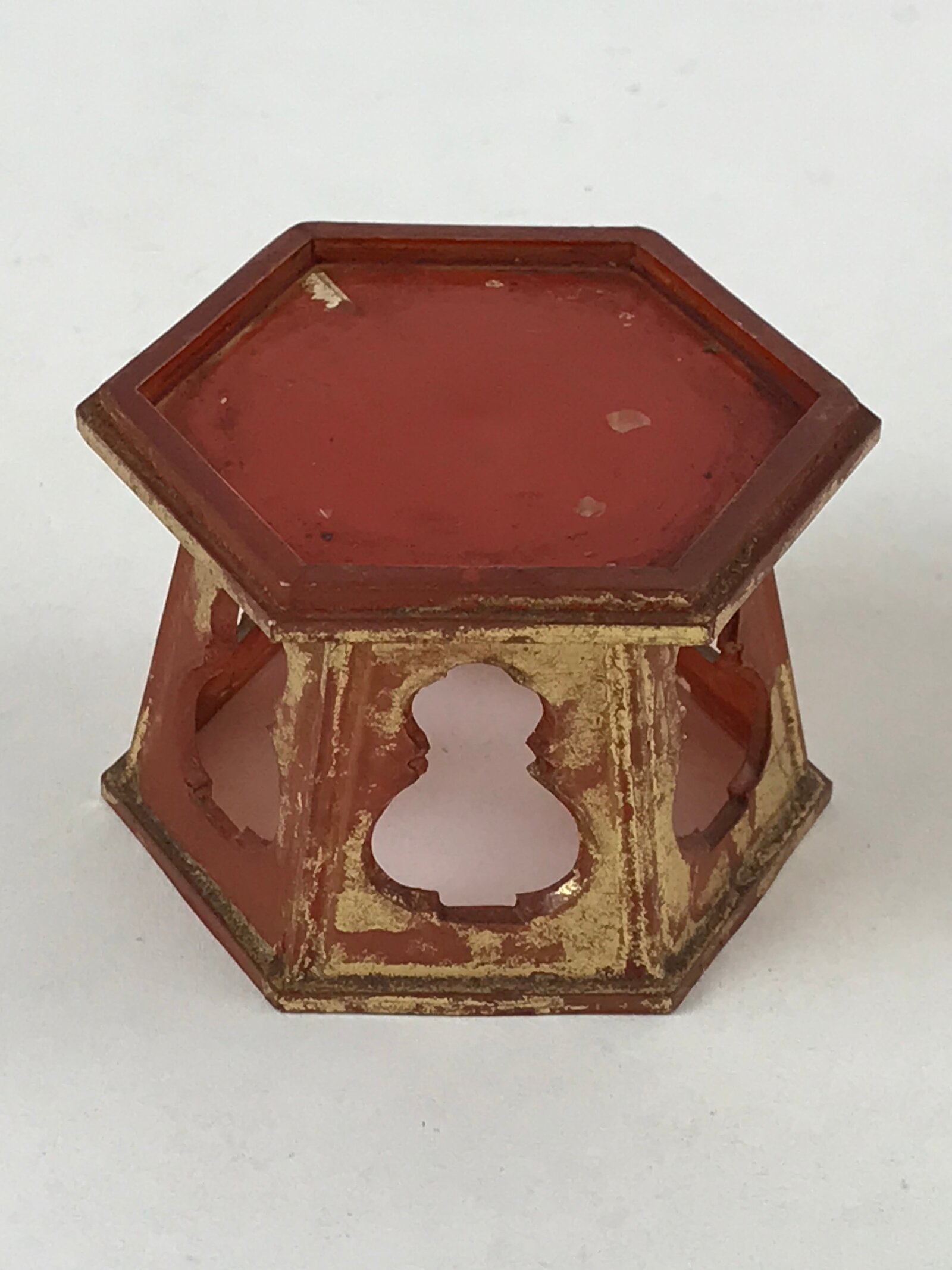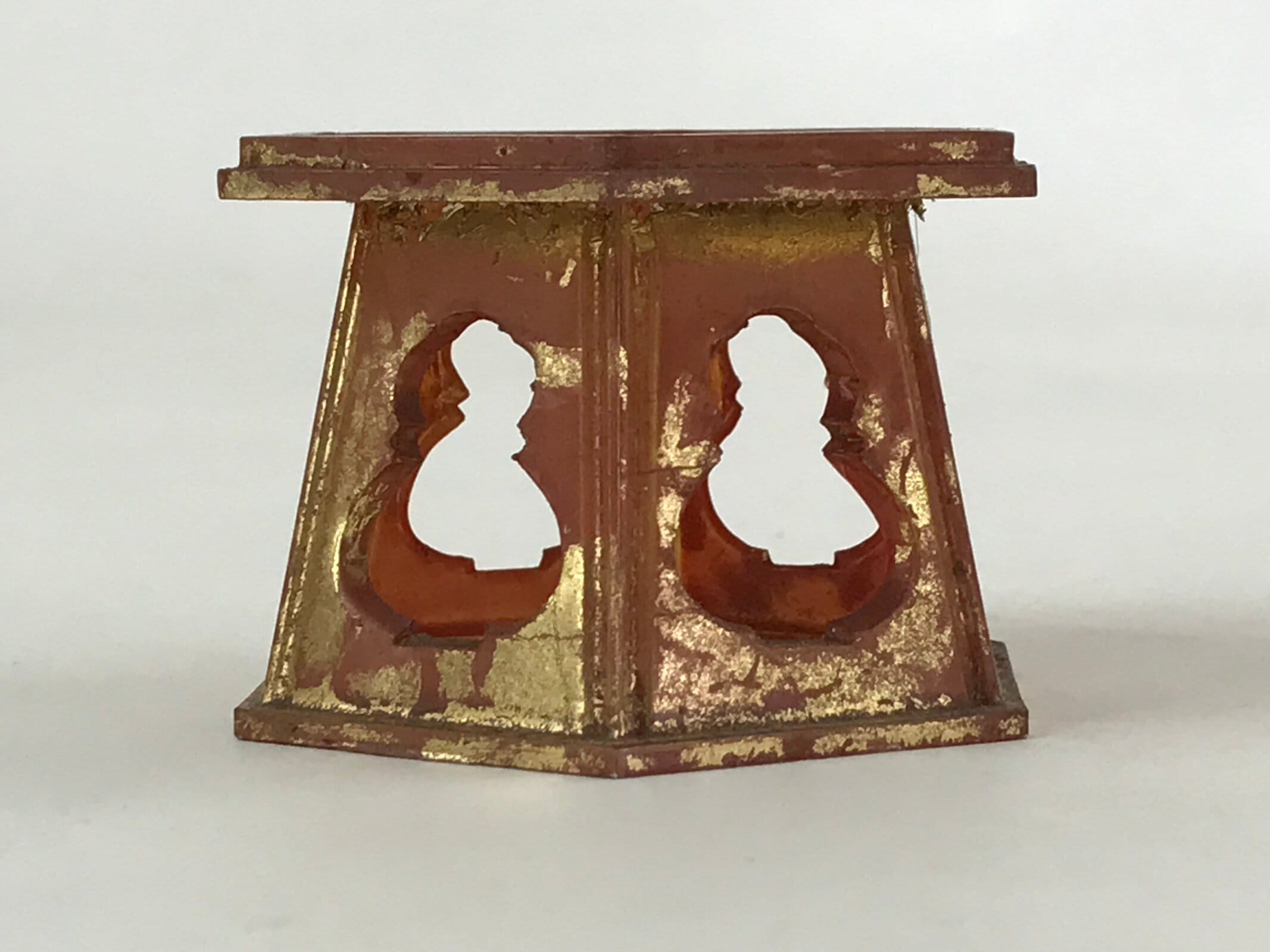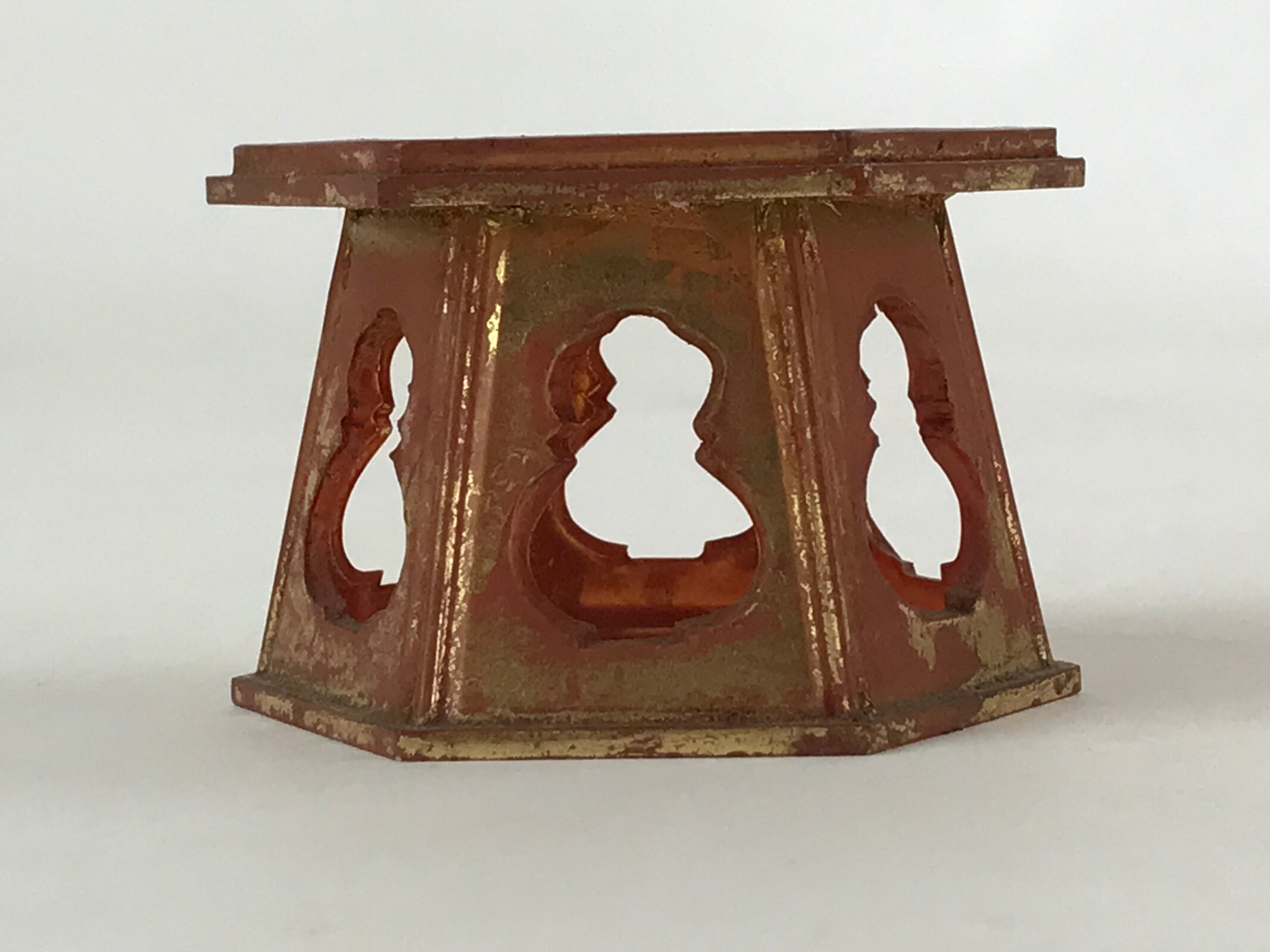 This is Japanese offering cup stand for a Buddhist altar. Also called bukki, this important altar accessory is gold and red and has a simple hexagonal shape. It is used often in pairs to hold small cups of rice, sake, and more as an offering to Buddha and one’s ancestors.