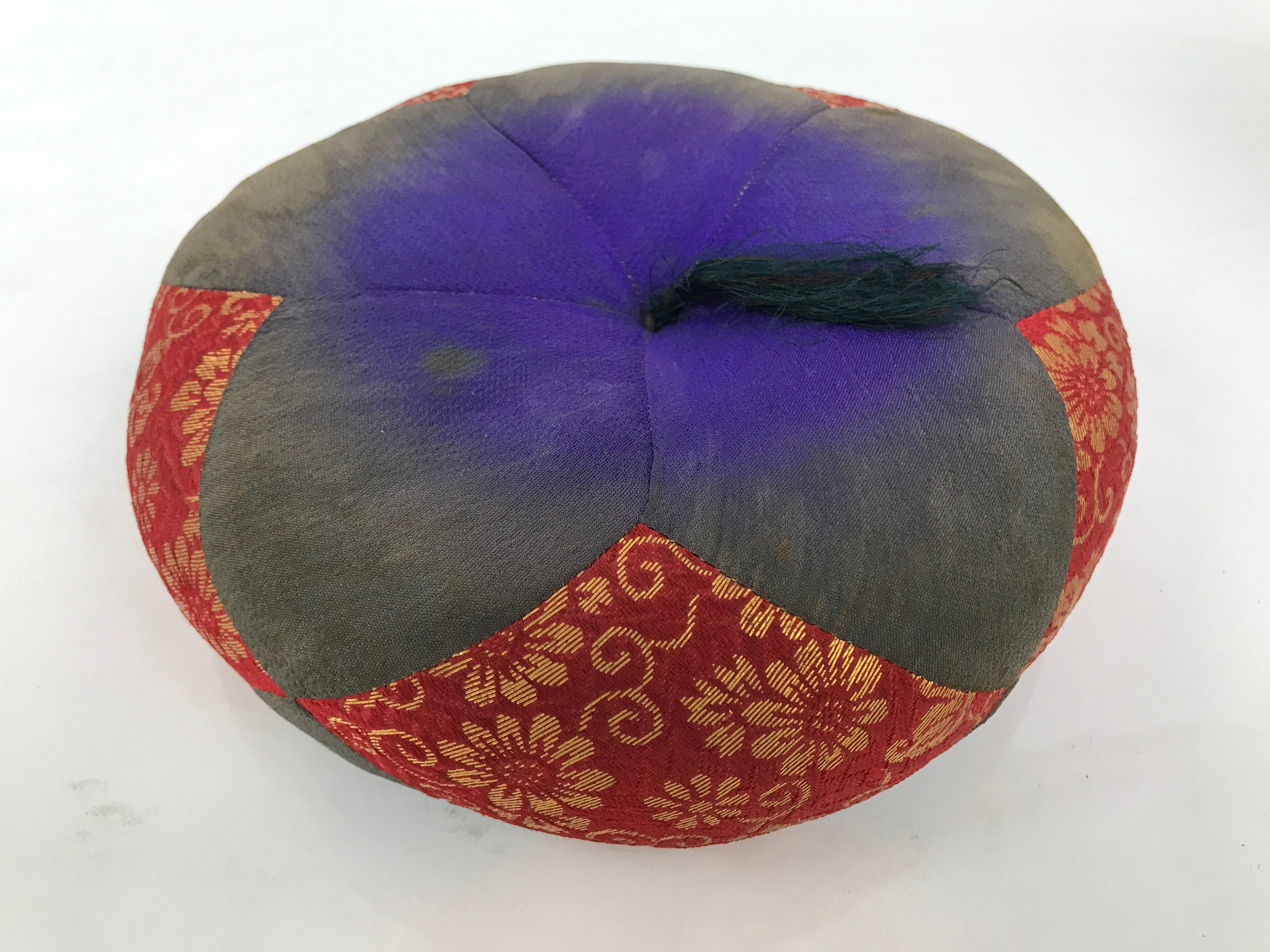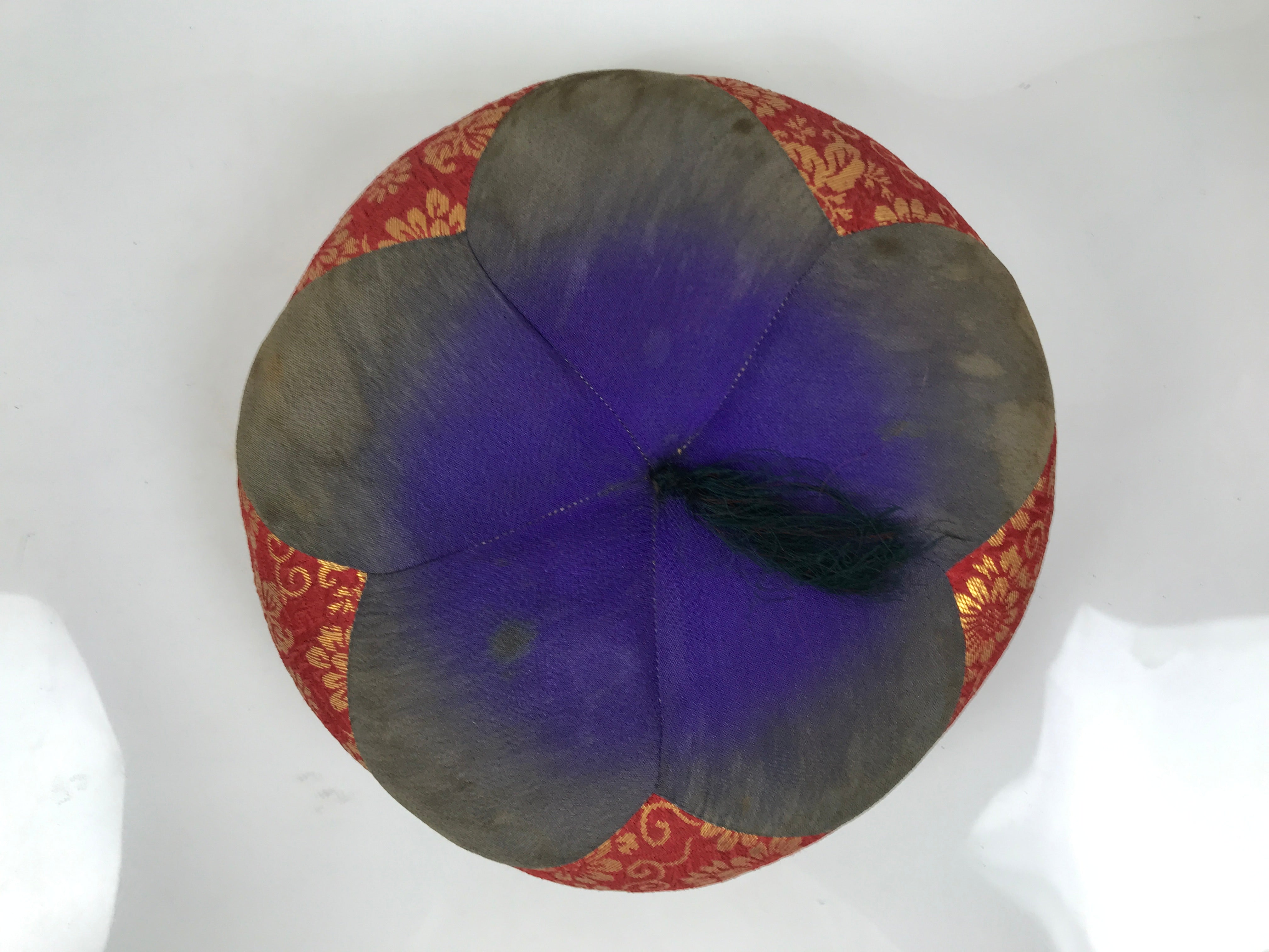 April 9, 2026Japanese Buddhist Orin Bell Singing Bowl Fabric Pillow Vtg Purple Red Gold BA890