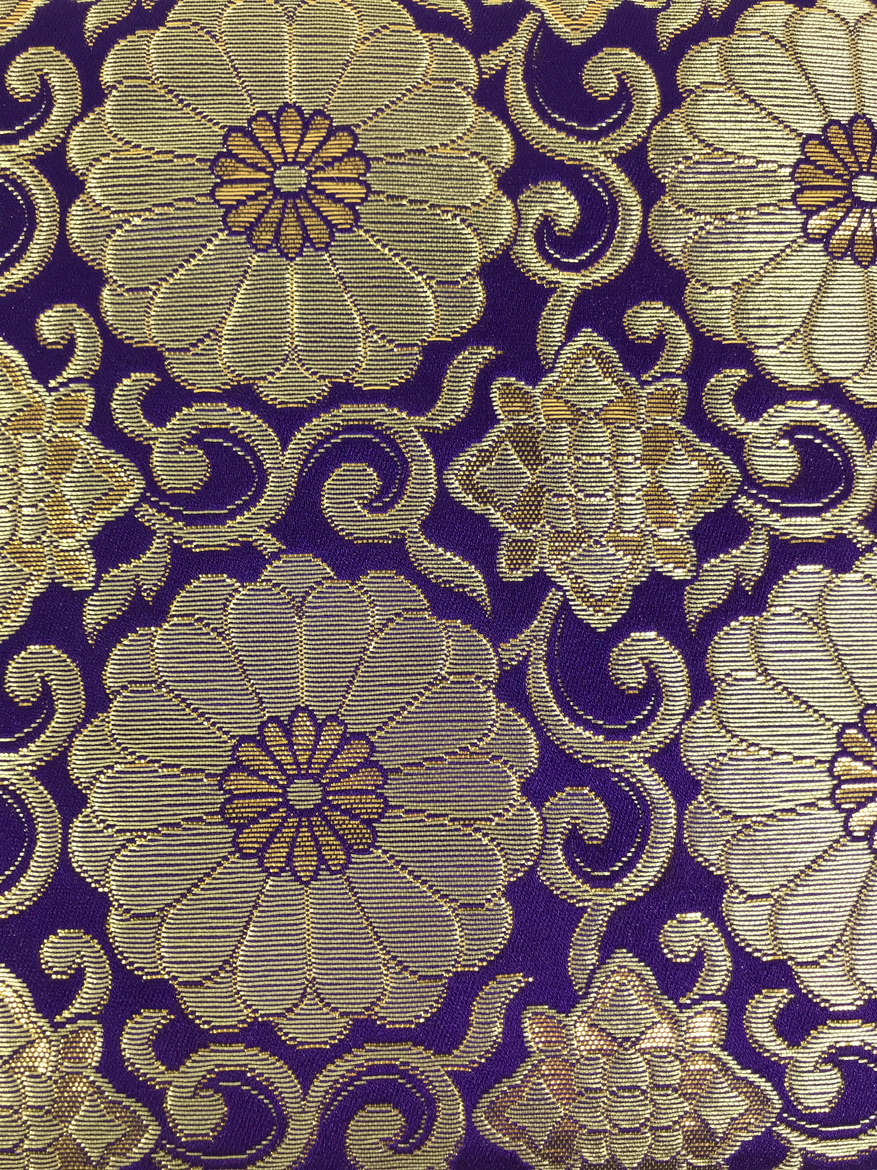 Japanese Buddhist Decorative Fabric Pillow Vtg Purple Gold Chrysanthemum BA881