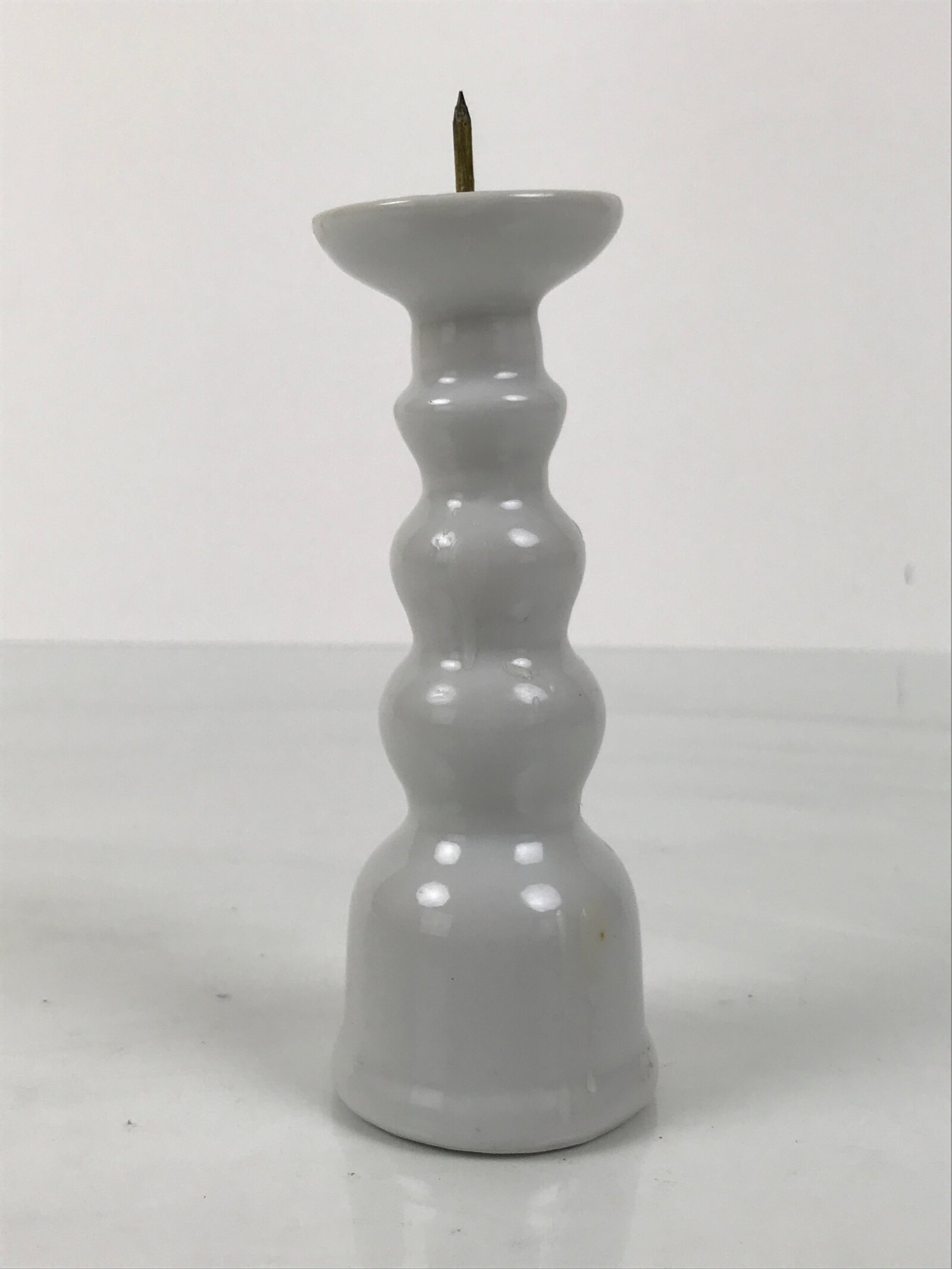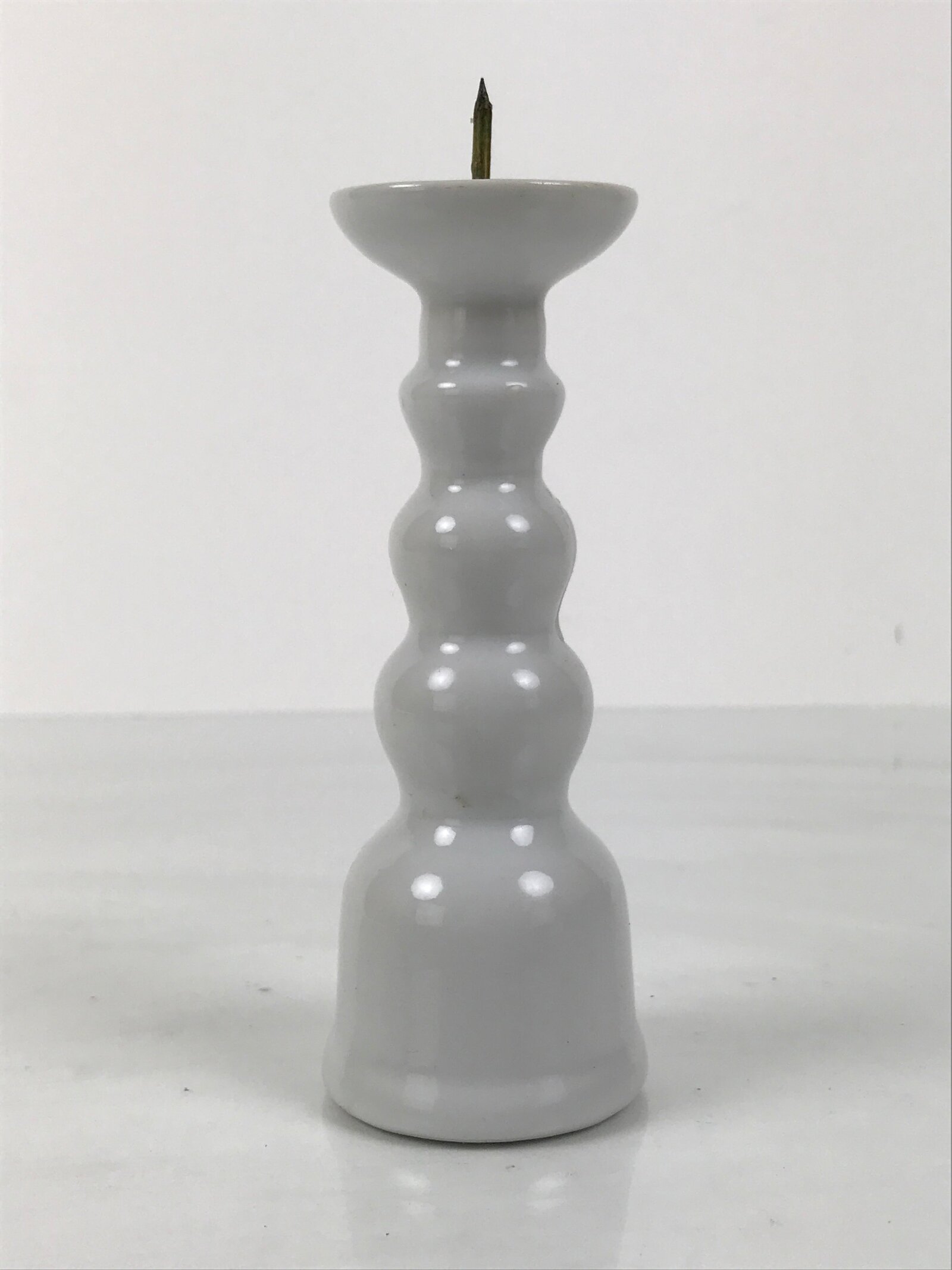 Japanese Buddhist Altar Porcelain Candle Stand Vtg Shokudai Simple White BA792