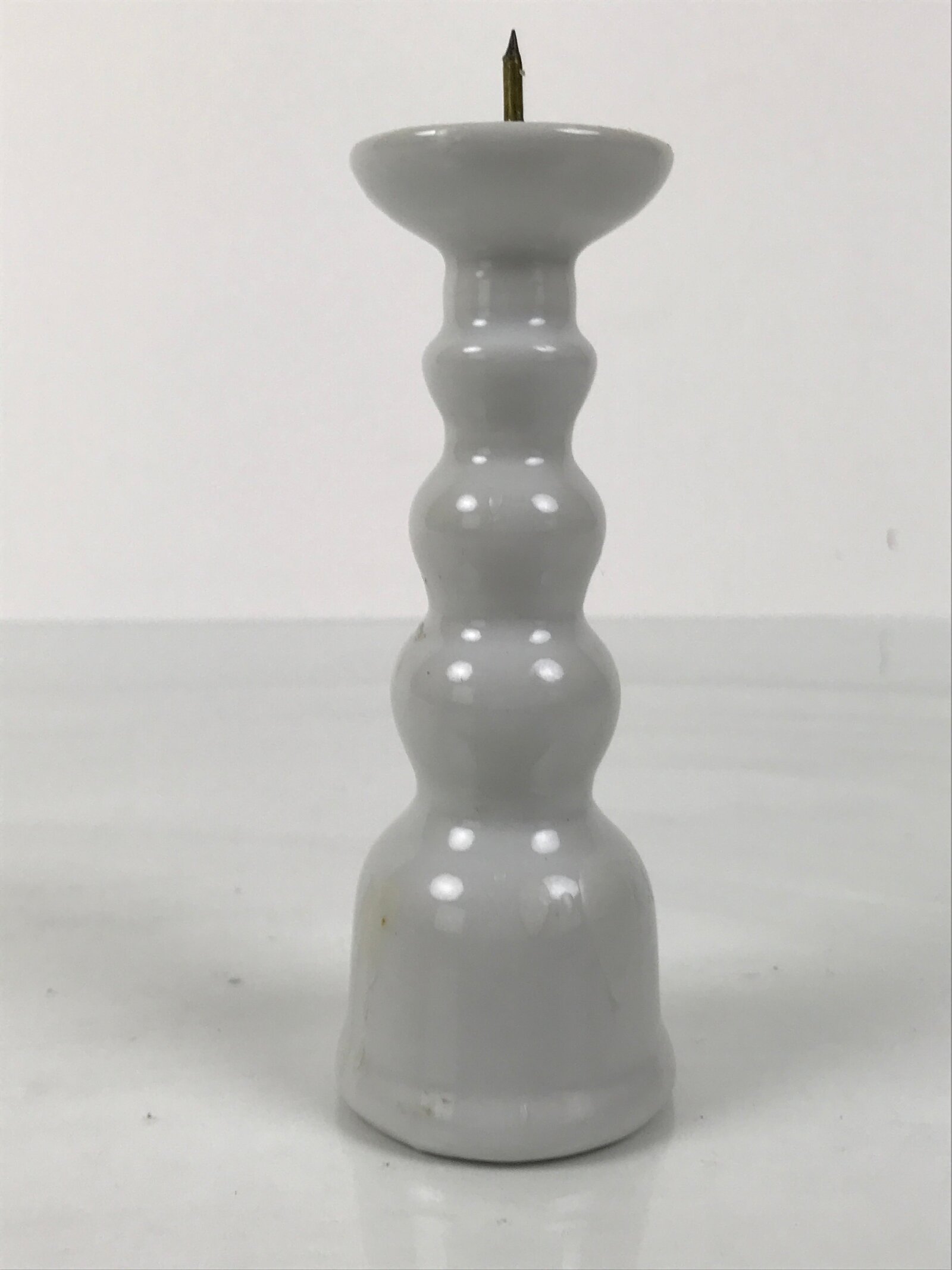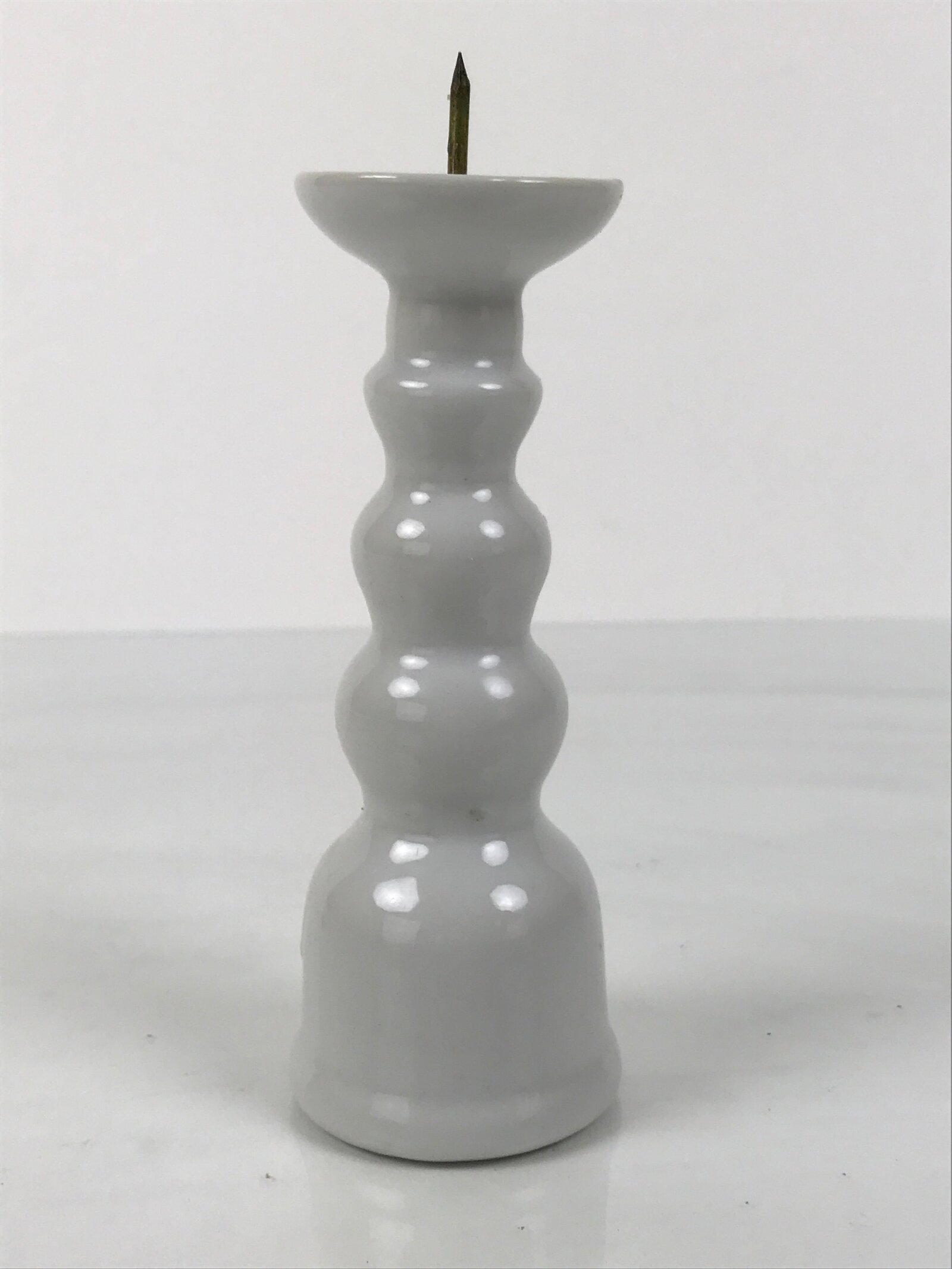 This item is a Japanese vintage Buddhist altar candle holder stand. This porcelain candlestick has a bright white glaze and has a very simple, classic design. Candlestands or candlesticks are basic Buddhist tools used in most sects and an essential for Buddhist altars (Butsudan).