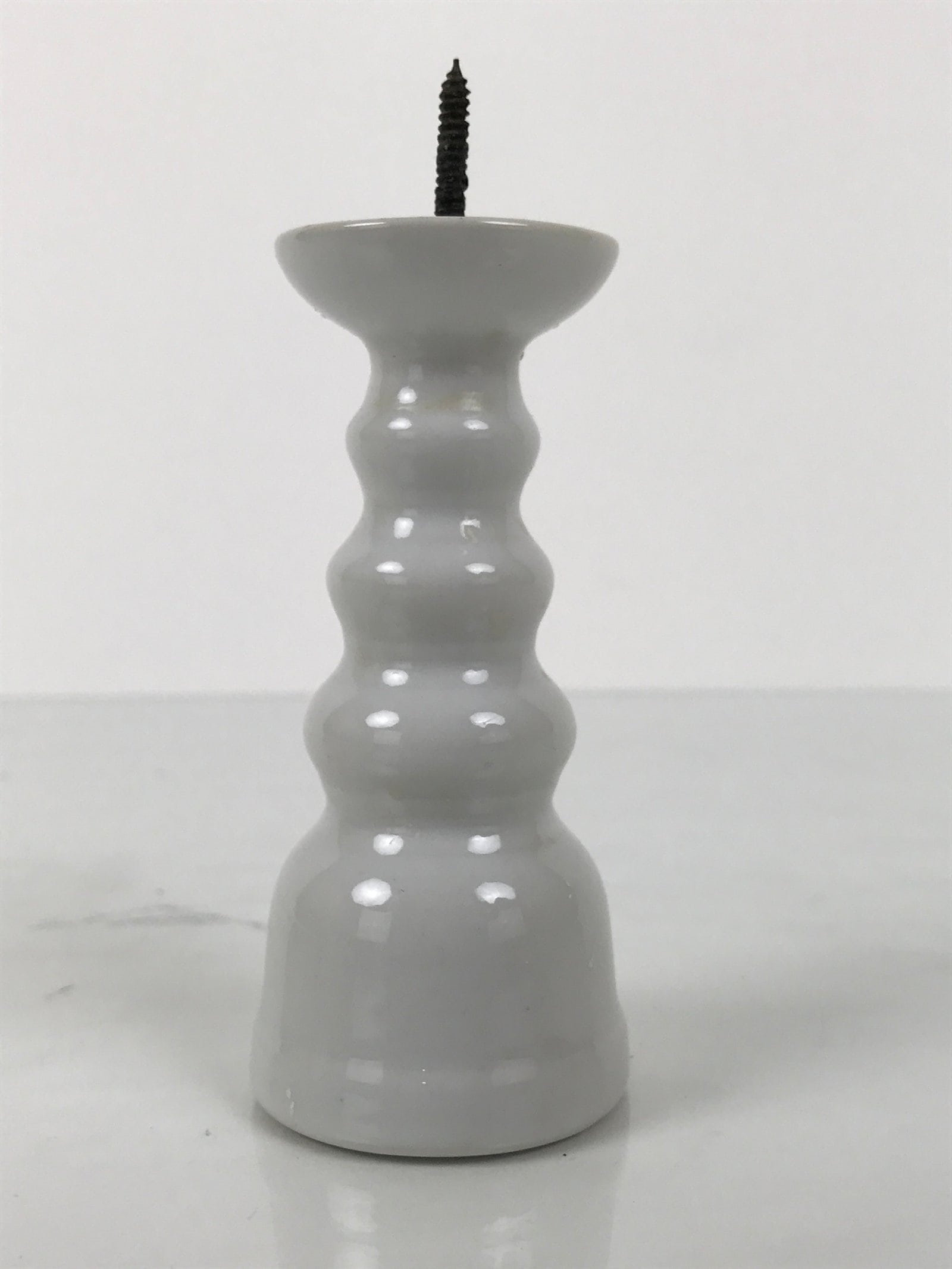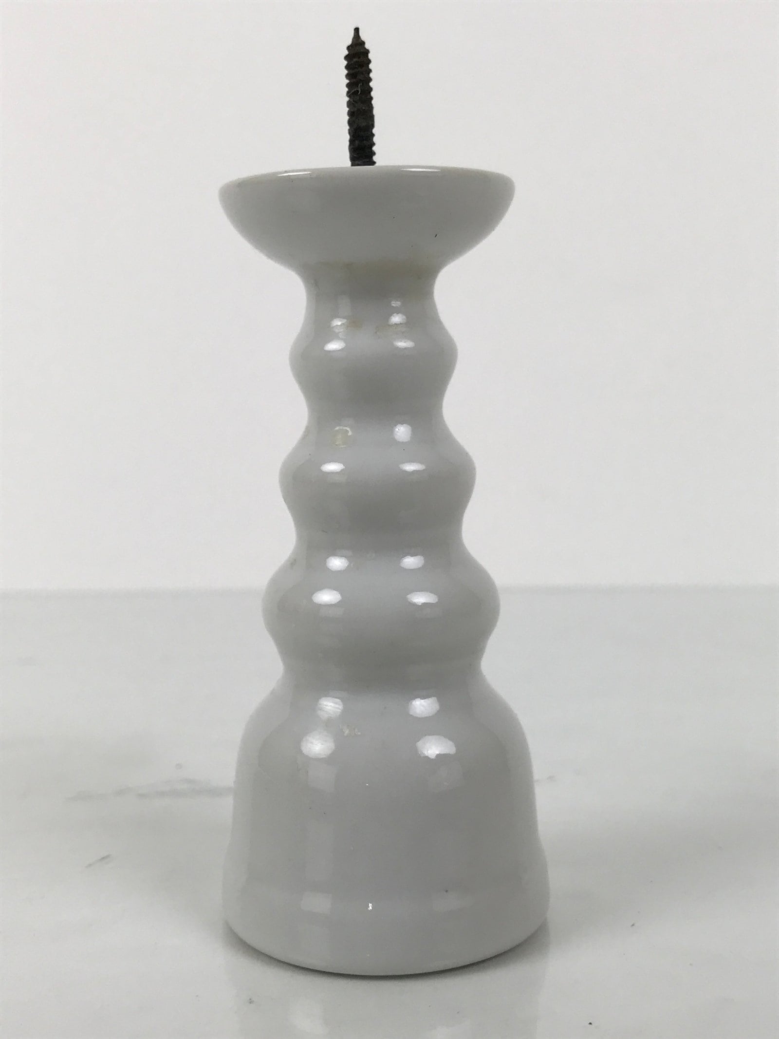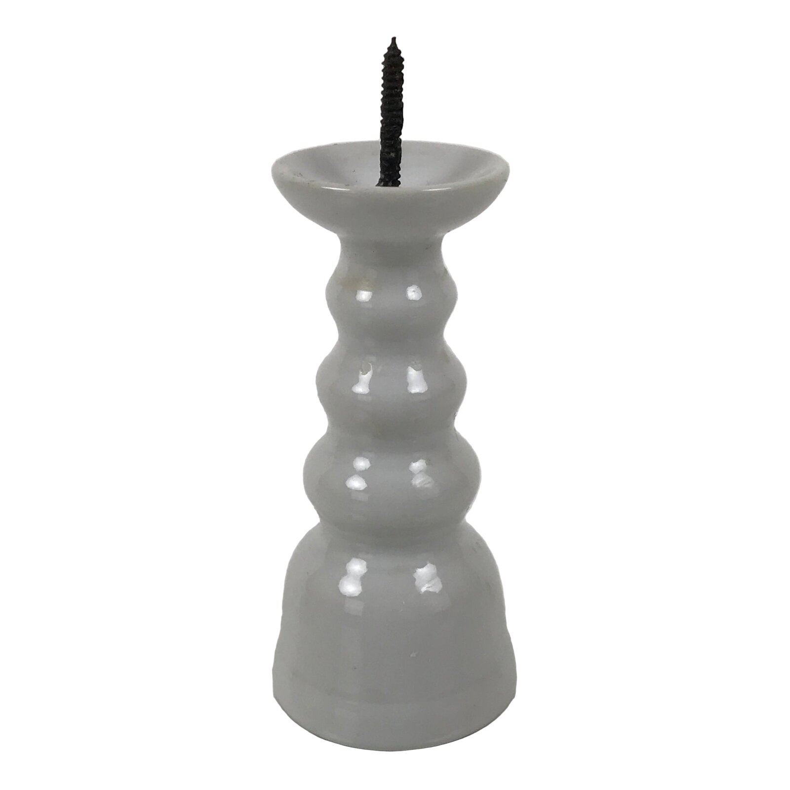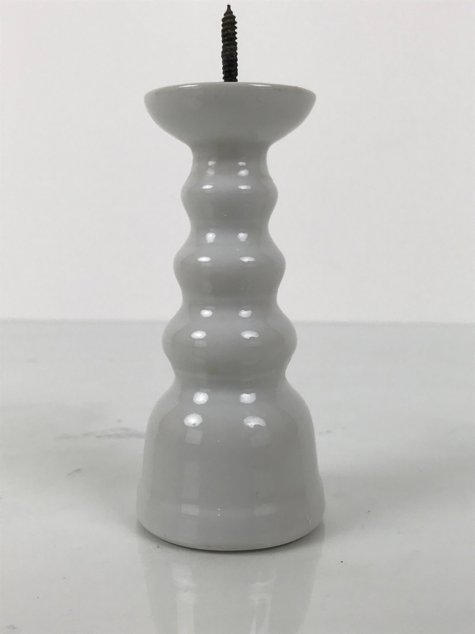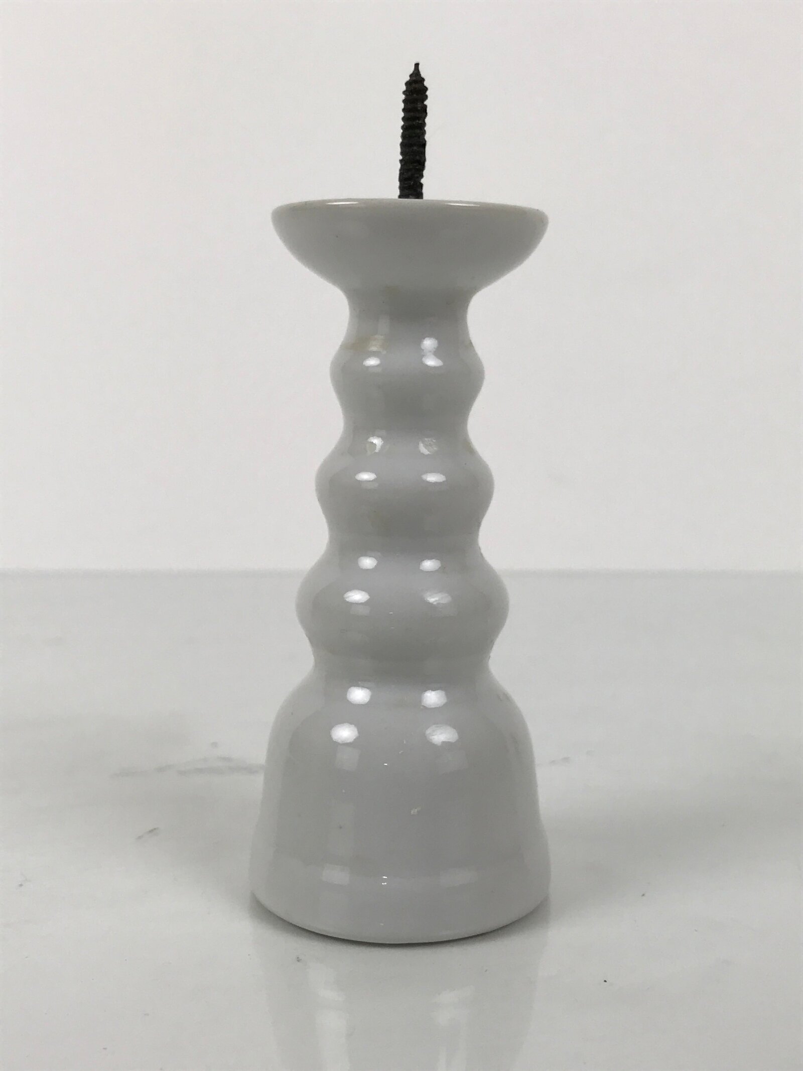 This item is a Japanese vintage Buddhist altar candle holder stand. This porcelain candlestick has a bright white glaze and has a very simple, classic design. Candlestands or candlesticks are basic Buddhist tools used in most sects and an essential for Buddhist altars (Butsudan).