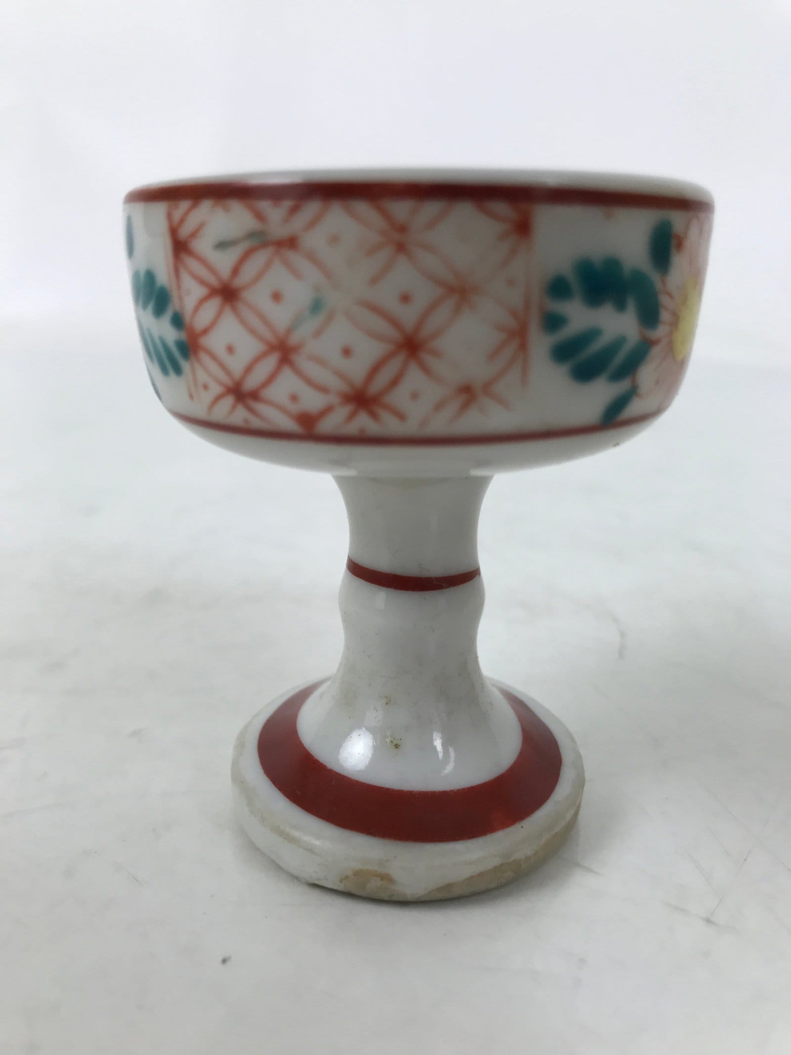 - Good condition considering its age. Abnormalities in glaze on base. Designs inconsistent. Wear and tear due to age. Please see the photos.