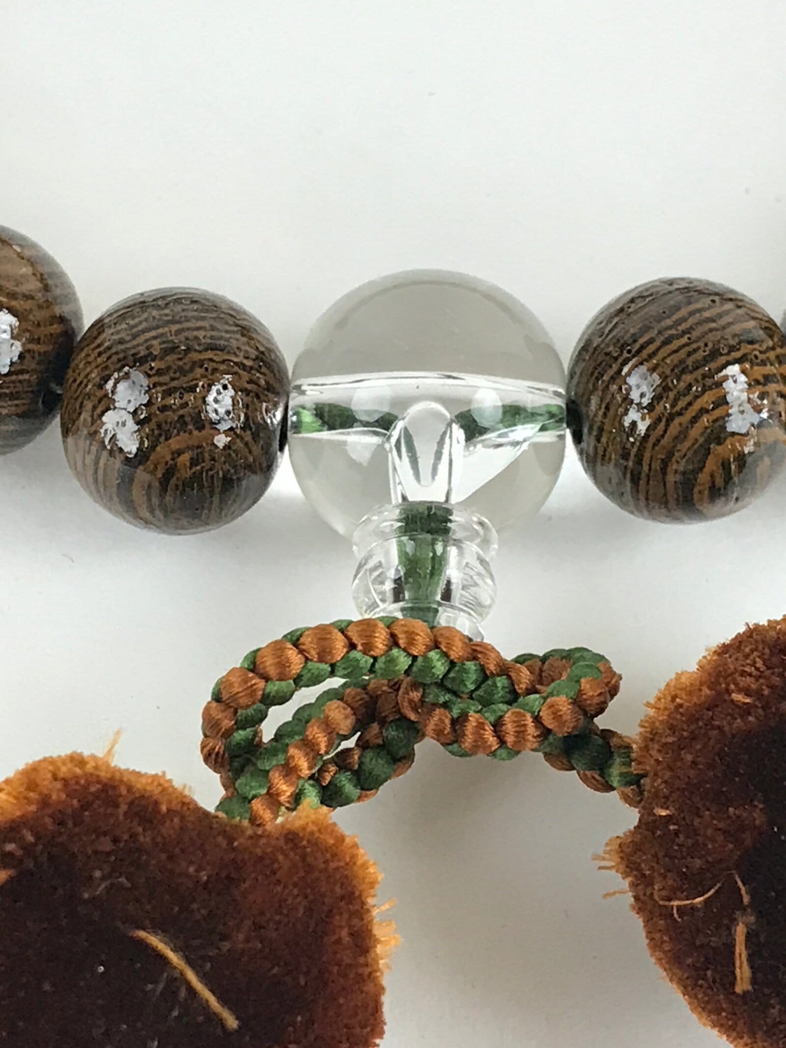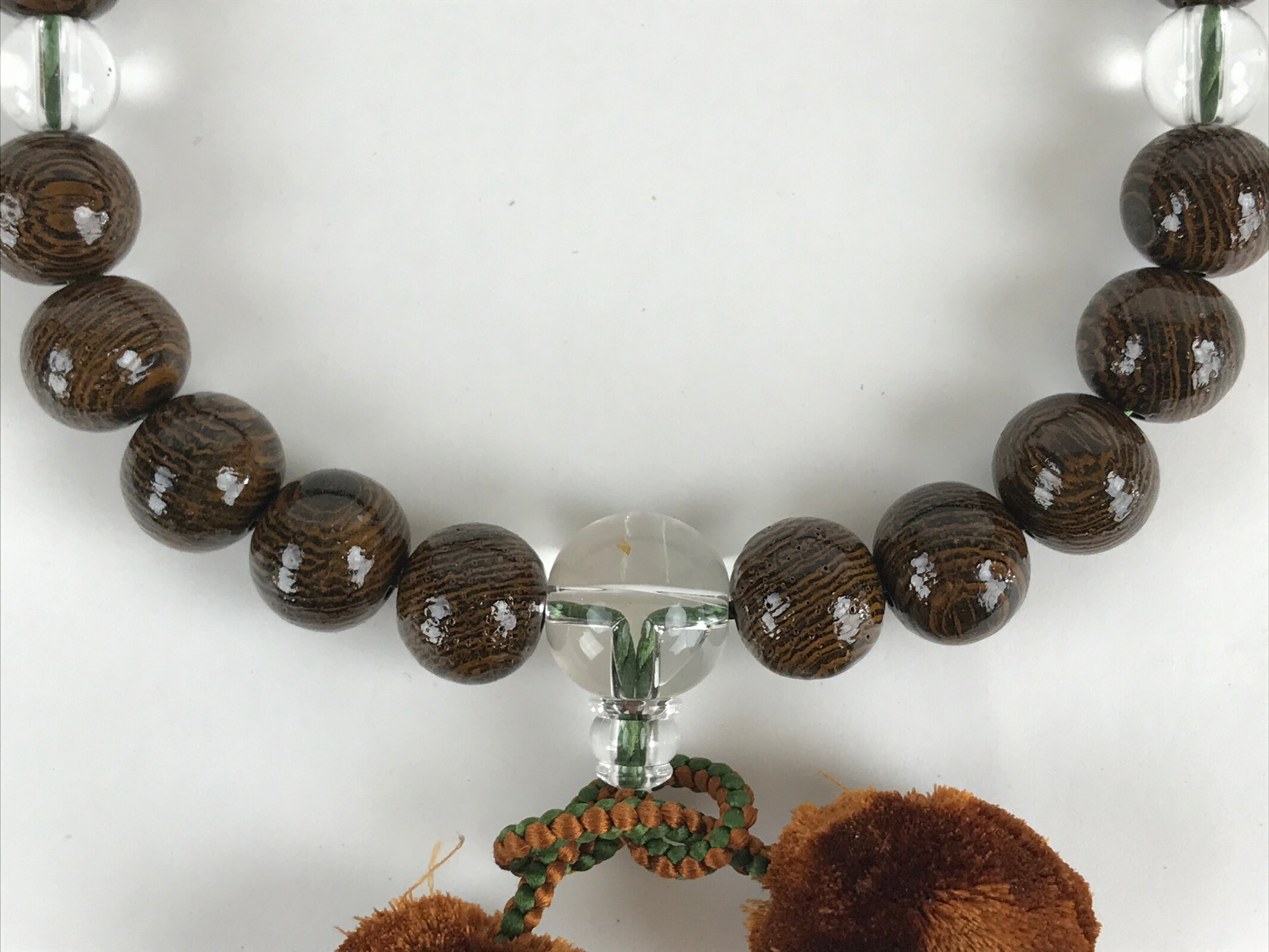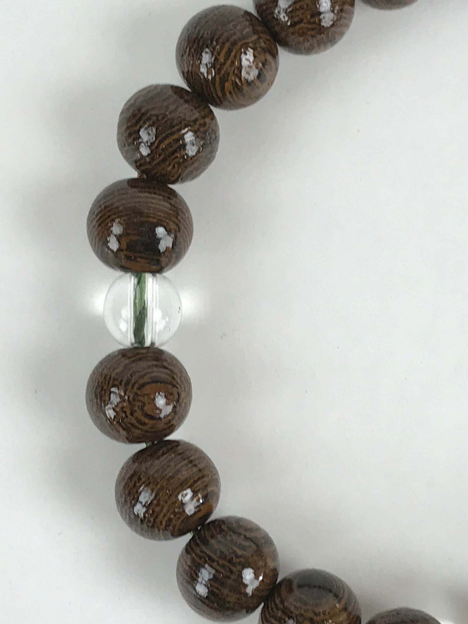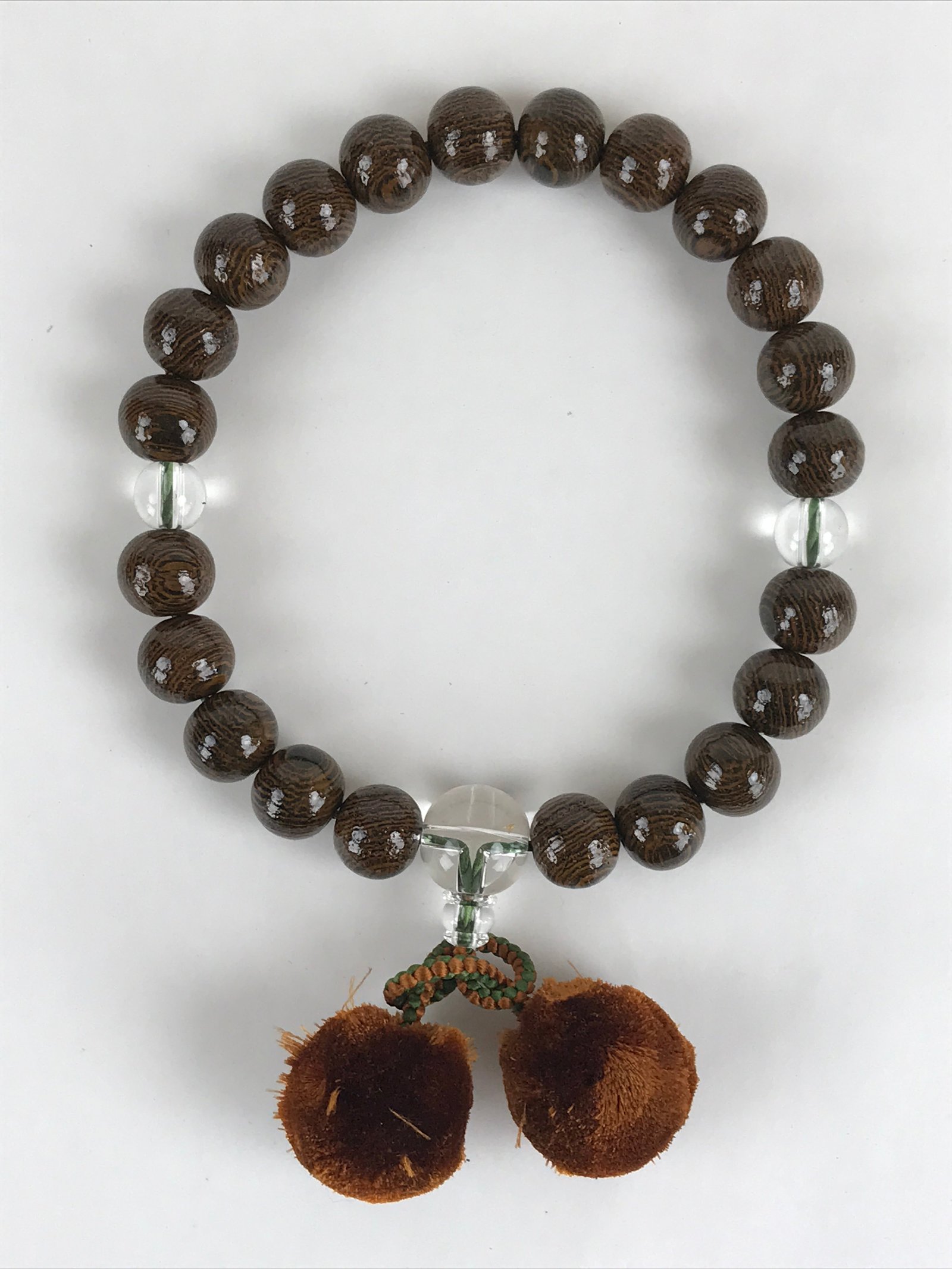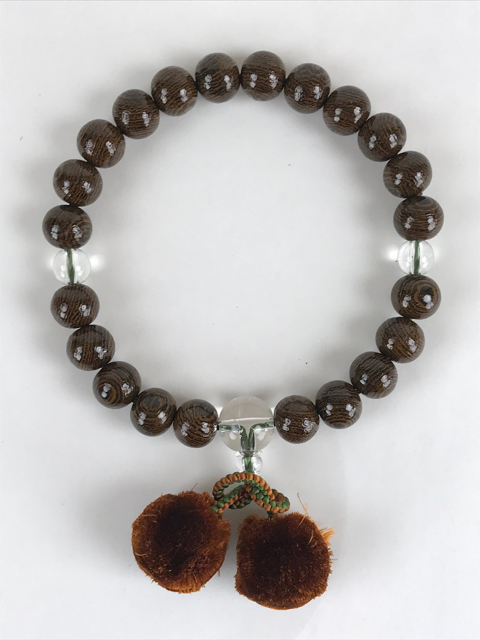 This is a Japanese Buddhist prayer rosary bracelet, Juzu. It is a wooden brown bead. When using a rosary, hold it in your left hand. By hanging a rosary on your left hand and combining your left hand, which represents the world of Buddha, with your right hand, which represents this world, you can purify worldly desires and impurities. If the rosary is long, hold it in two rows. (How to hold varies by denomination)
