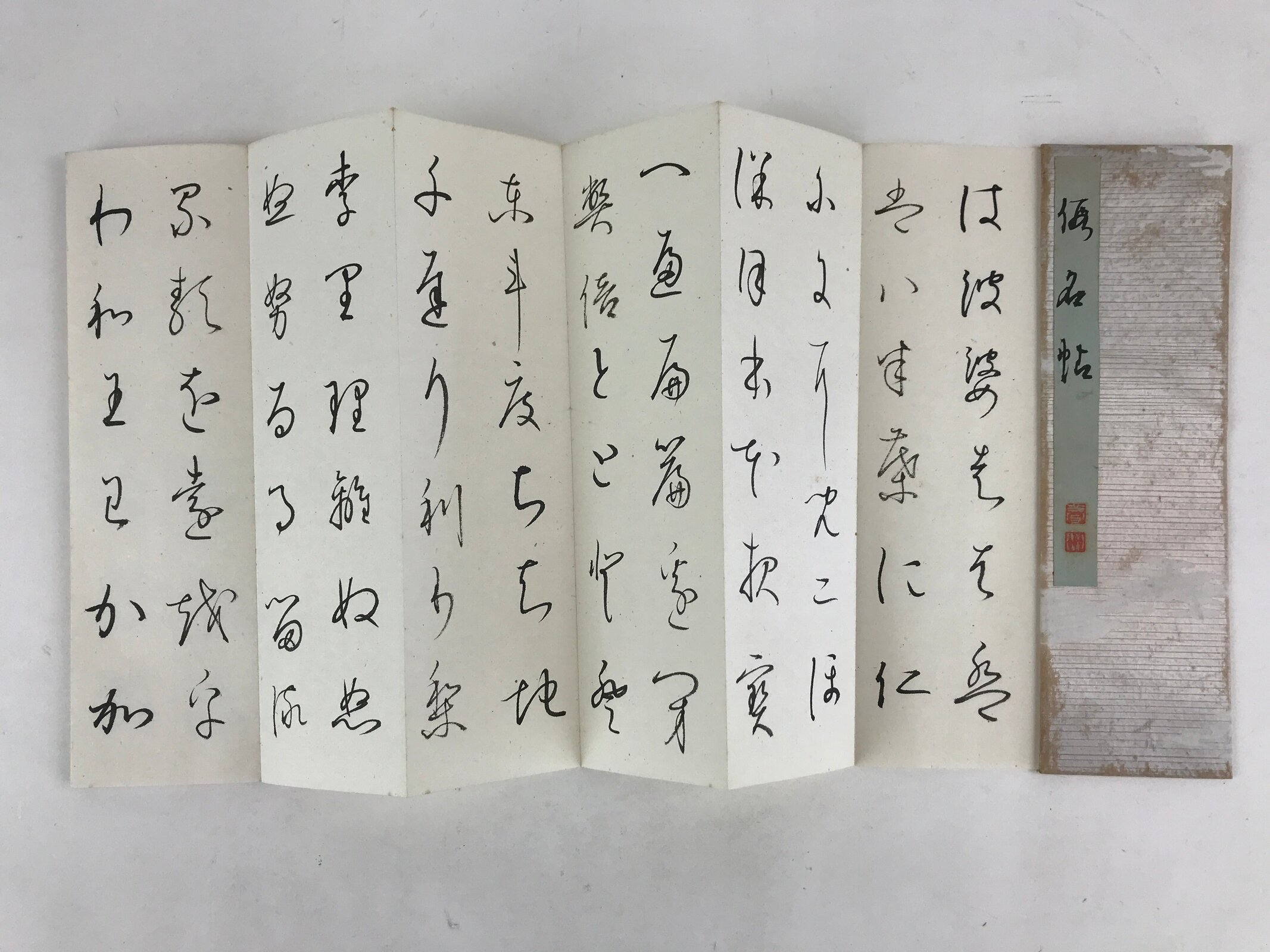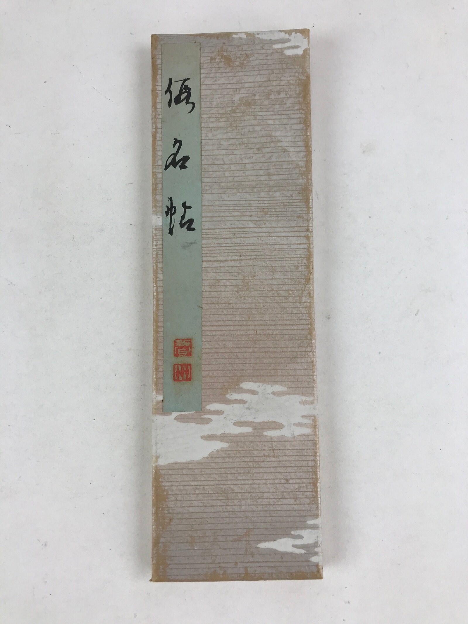 This is a vintage Japanese Buddhist sutra book. This sutra was published in 1970. There’s a signature of the artist with red seals. The front and back covers are white and green paper.