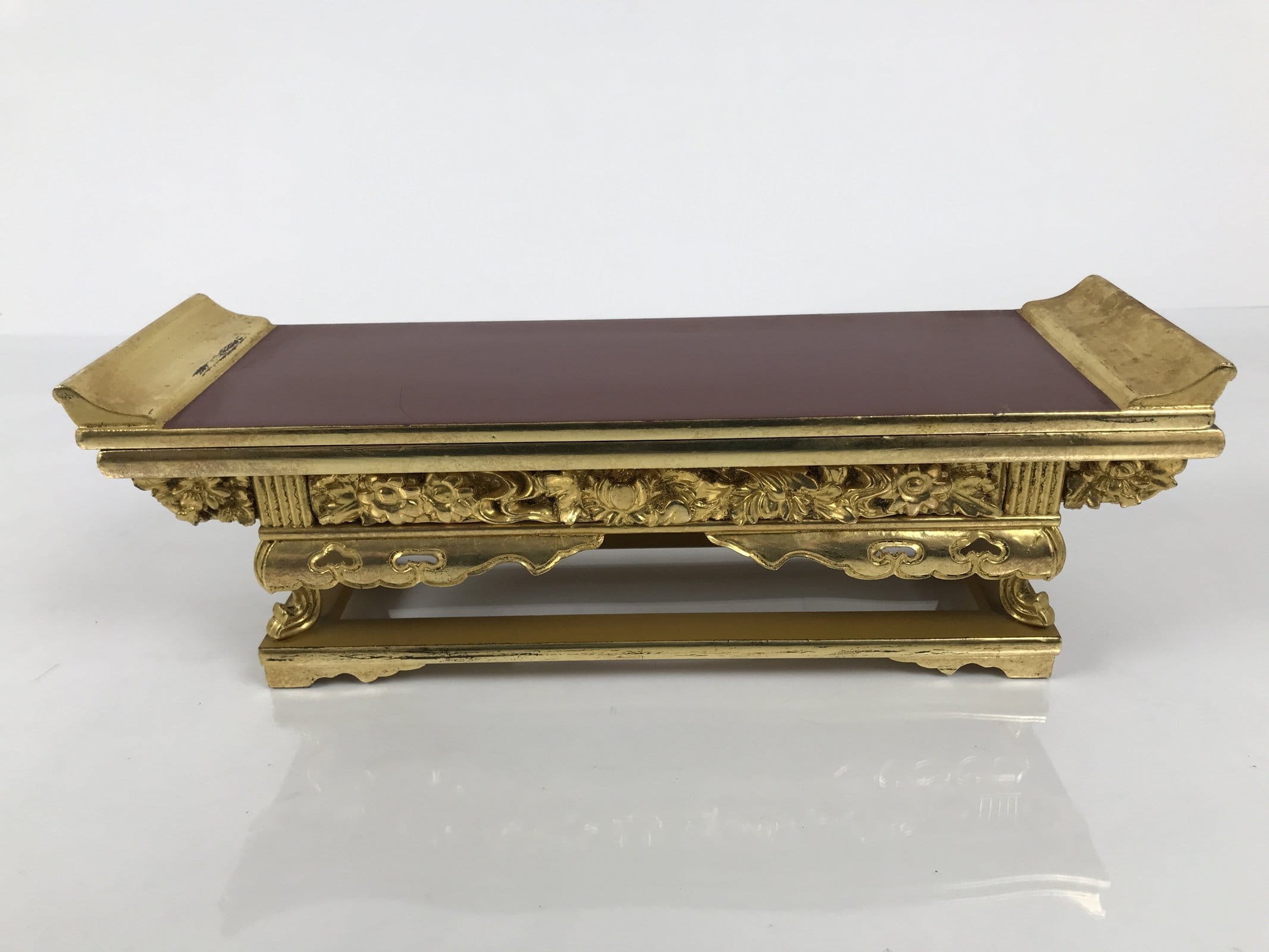 January 25, 2026Japanese Buddhist Altar Lacquered Wood Offering Table Vtg Maejoku Red Gold BA857