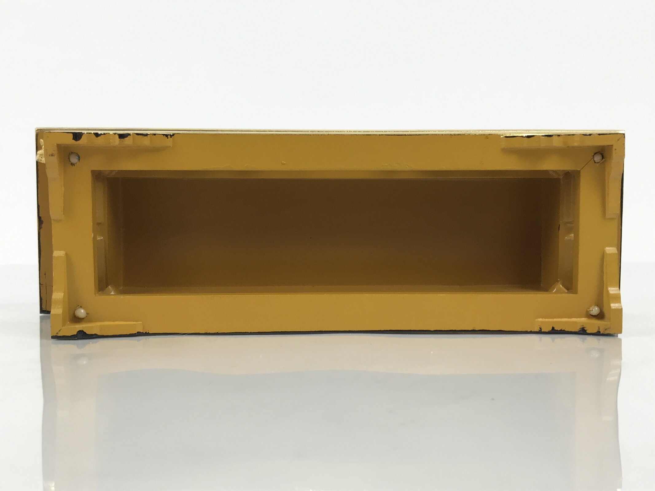 - Good condition considering age. Some scratches and lacquer wear. Gold paint worn on edges and top panel. Wear and tear due to age. Please see the photos.