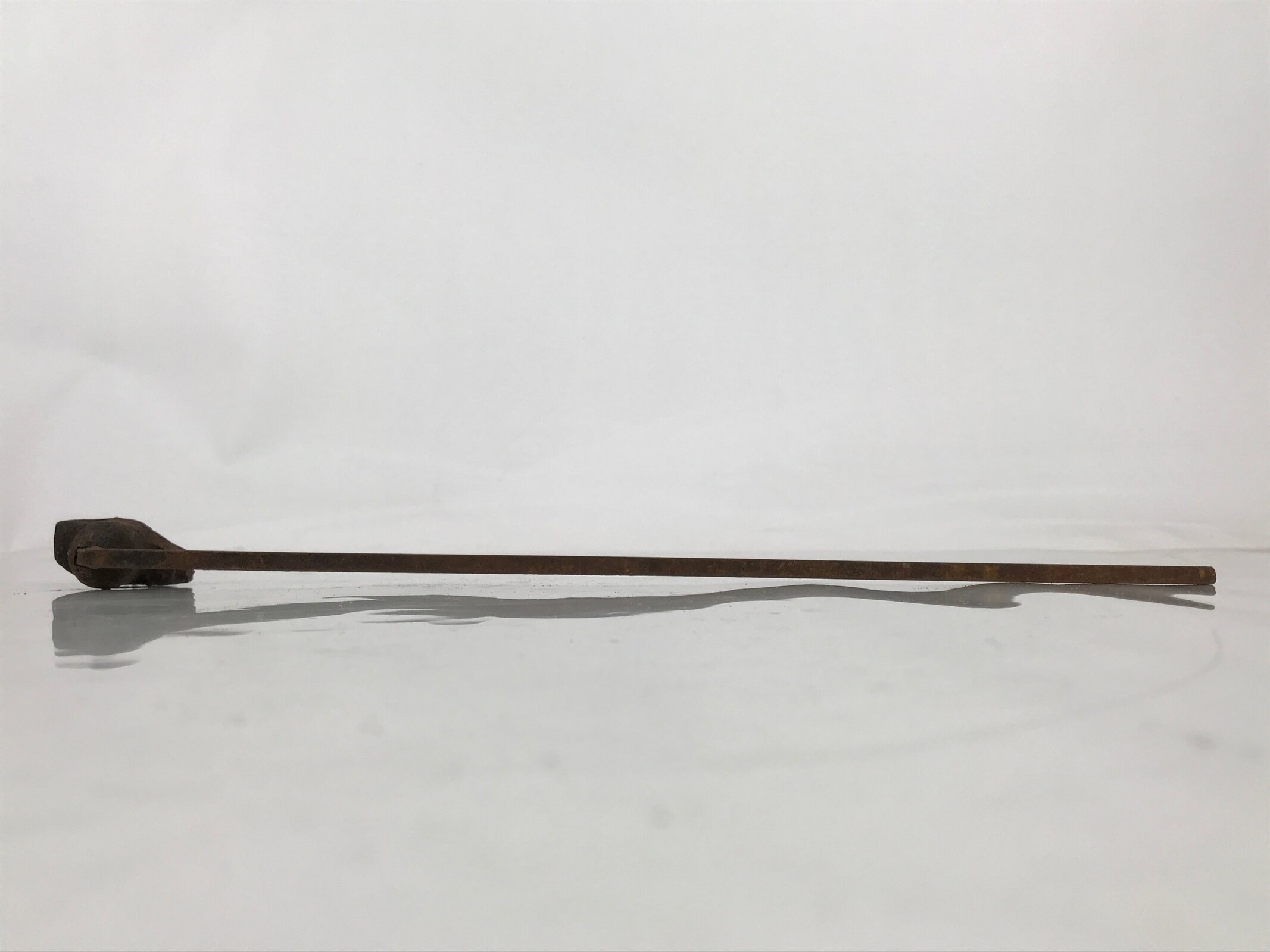 This is a vintage cast iron branding stamp called yaki-in. This piece is meant to be placed over fire or coals and is used to mark wood, leather, fabrics, and, most famously, Japanese sweets such as manju. It has kanji for an uchiwa (flat hand fan) shop (志ぶ うちわ kokorozashibu uchiwa).
