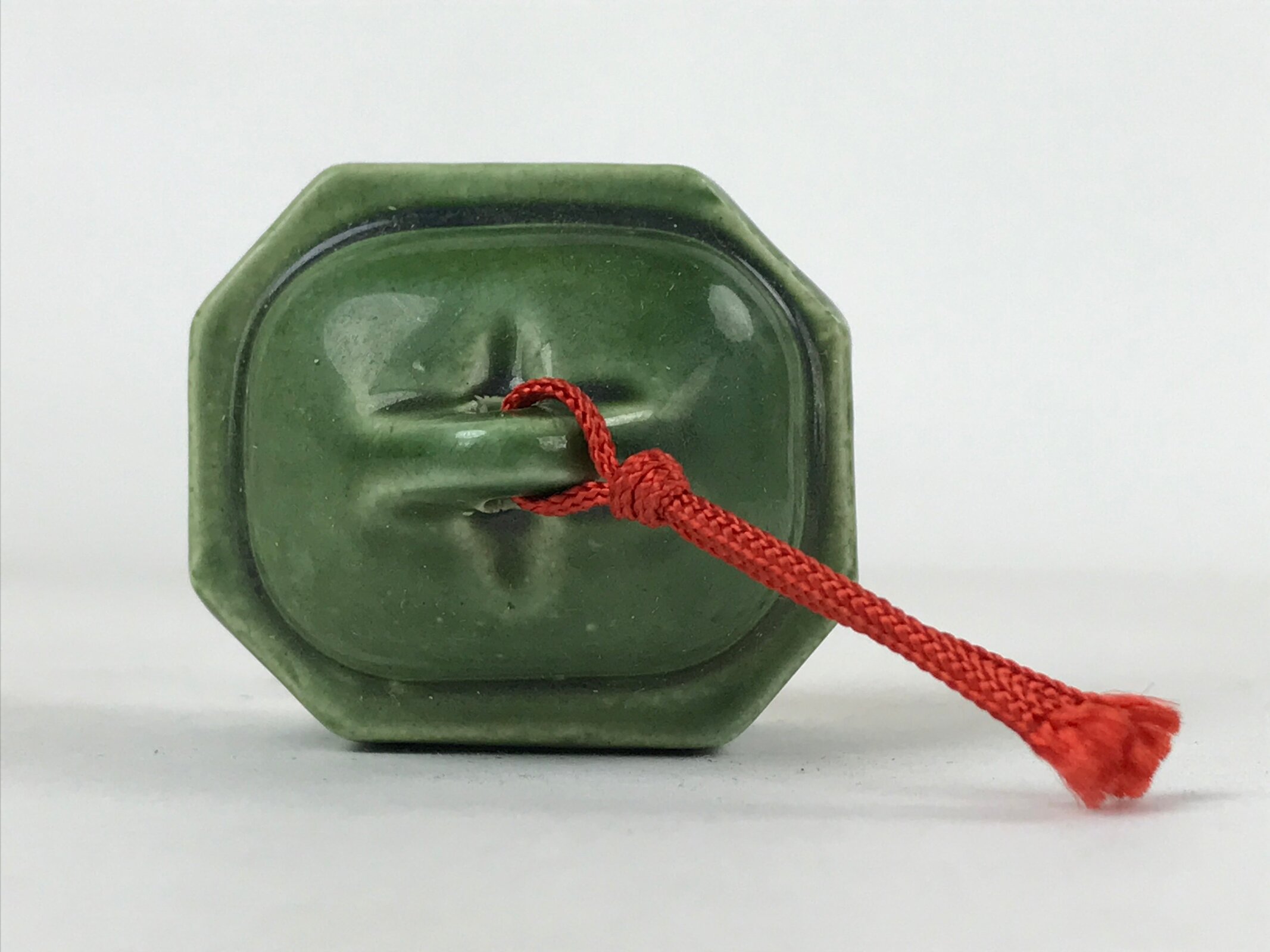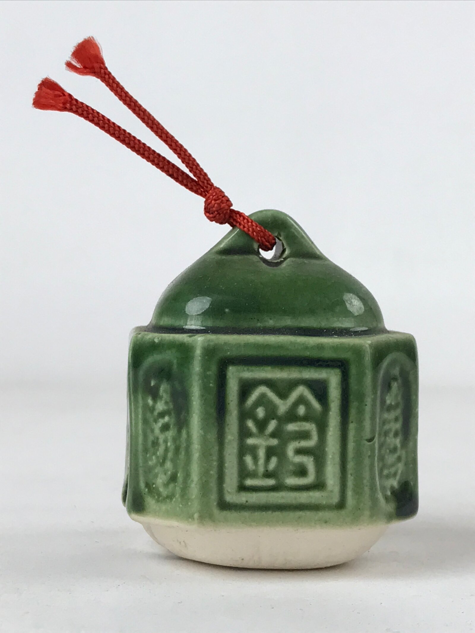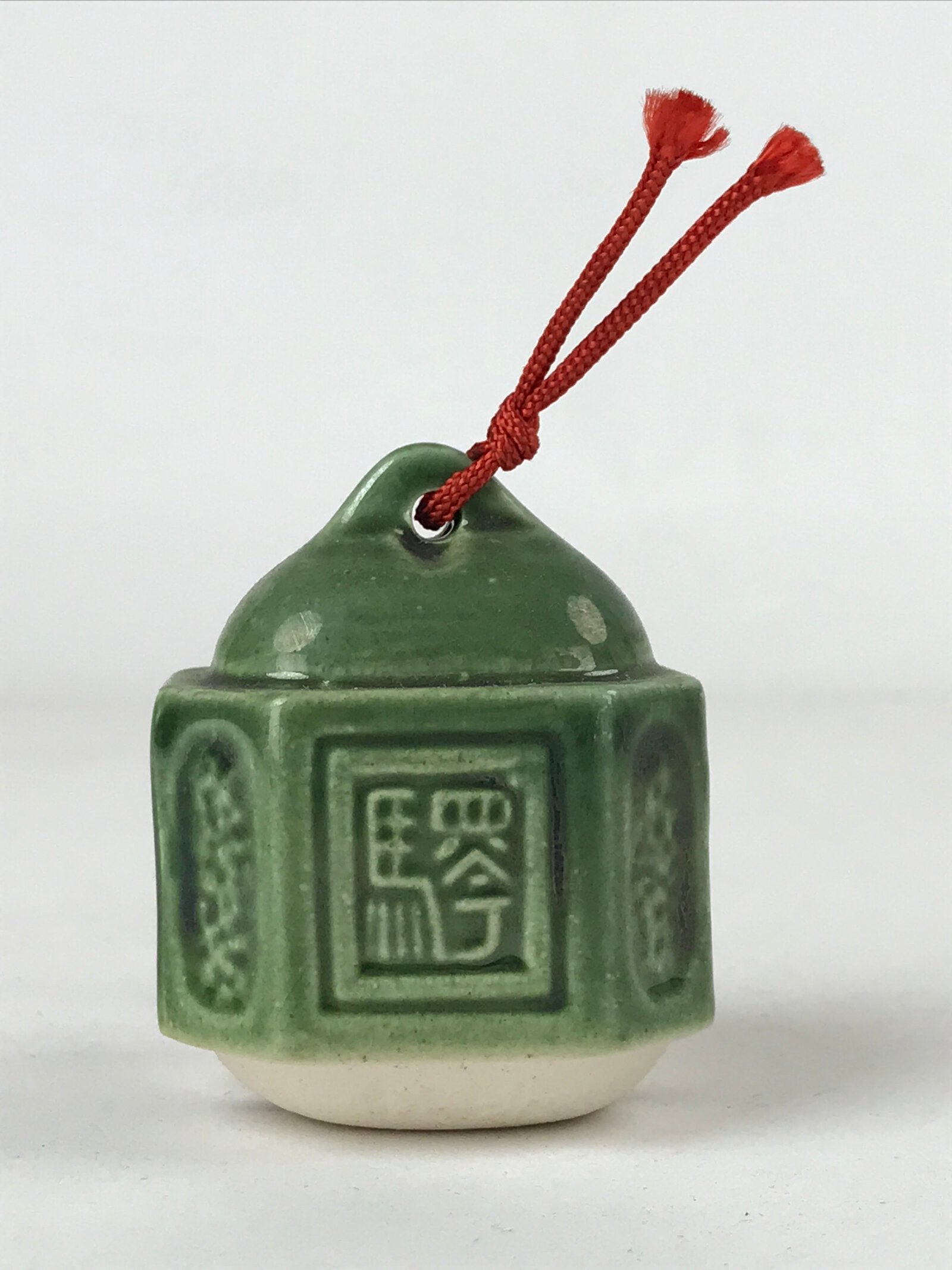 Japanese Ceramic Bell Dorei Vtg Tsuchi-Suzu Station Amulet Green Red DR510
