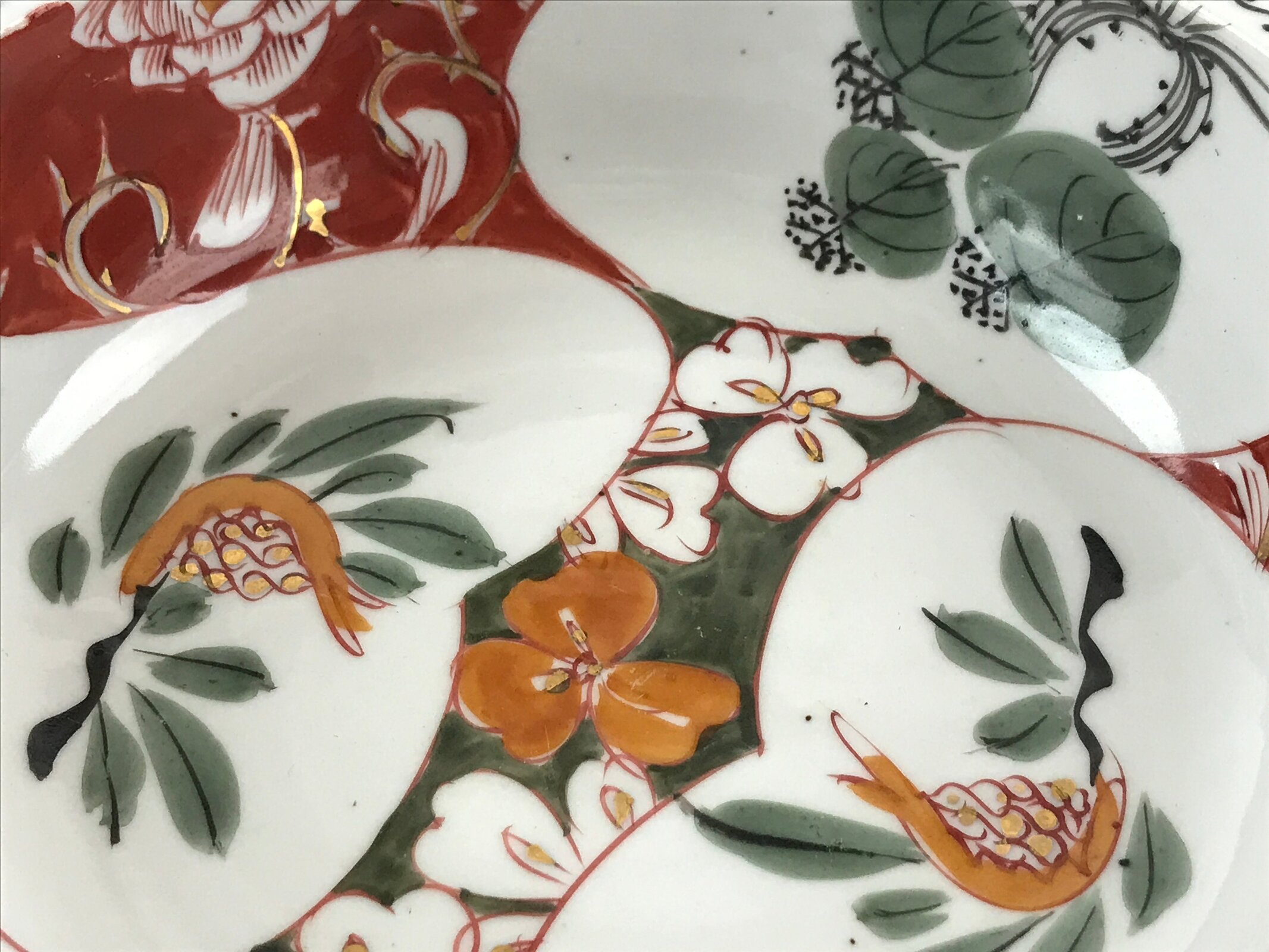 Japanese Ceramic Bowl Serving Plate Vtg Floral Red White Green Gold Foil PY462