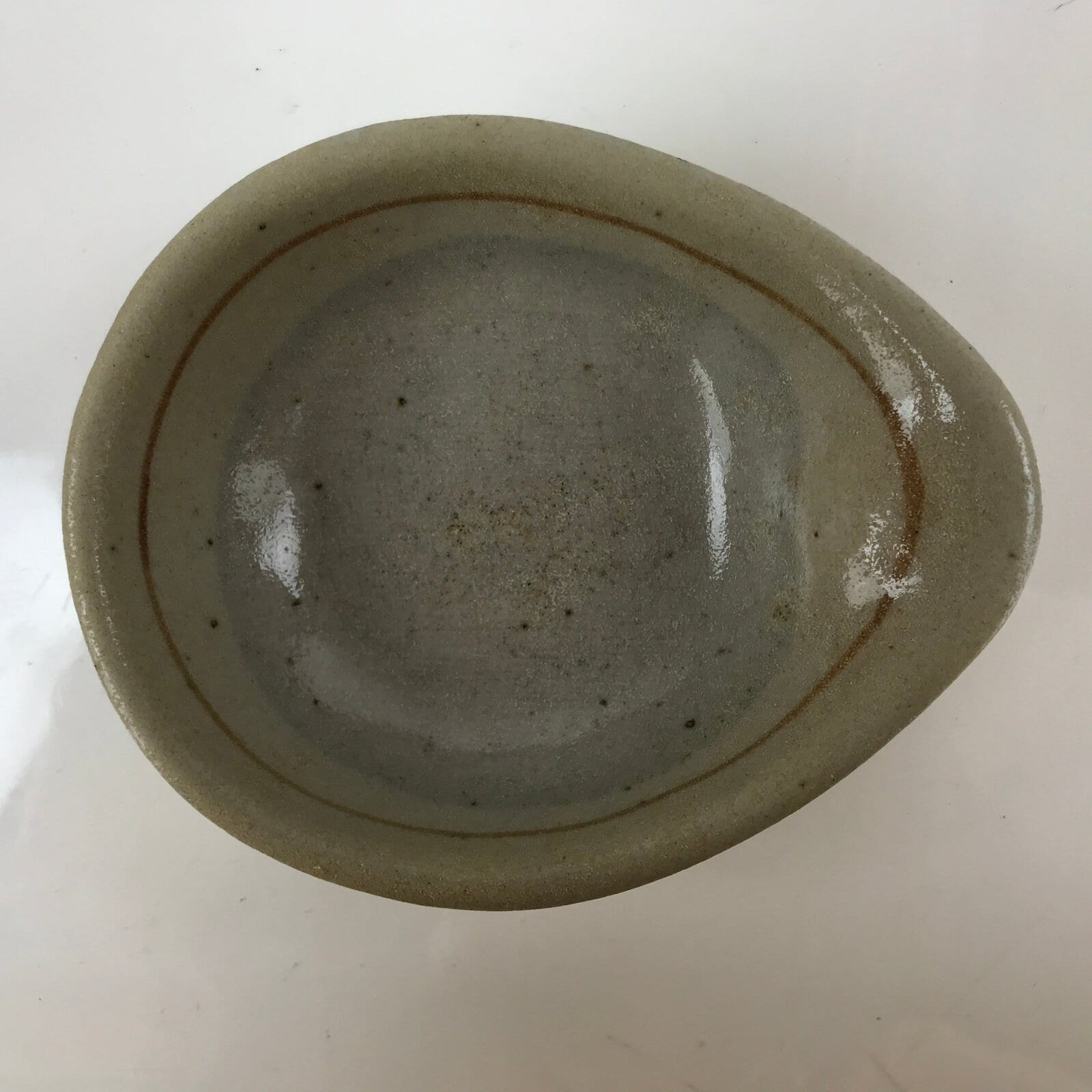 Japanese Ceramic Bowl Kobachi Vtg Nabe Side Dish Teardrop Beige Gray PY899
