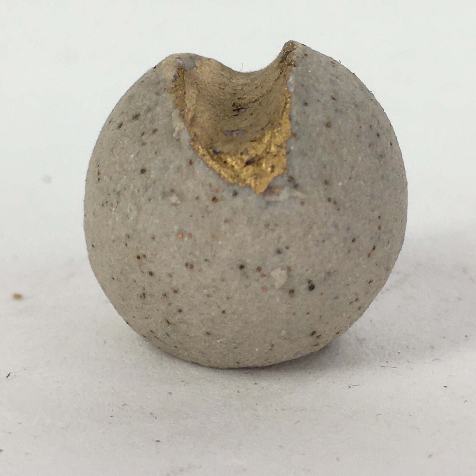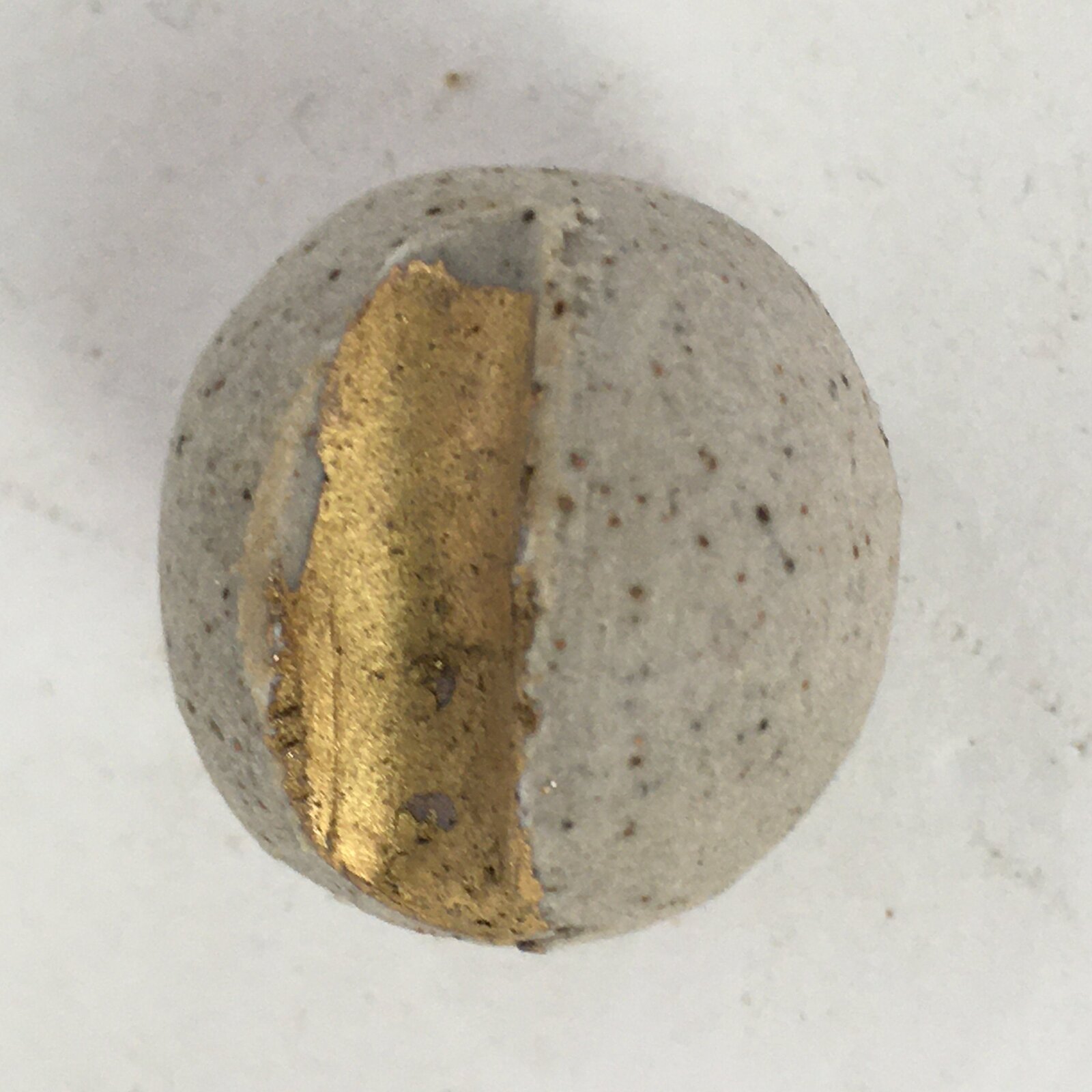 - Design: Round stone shape. Gold colored indent