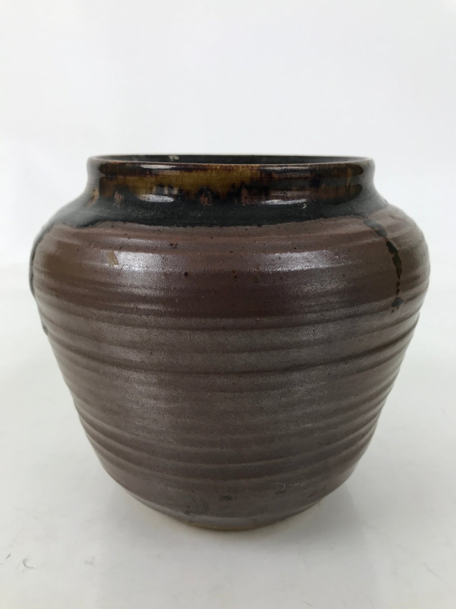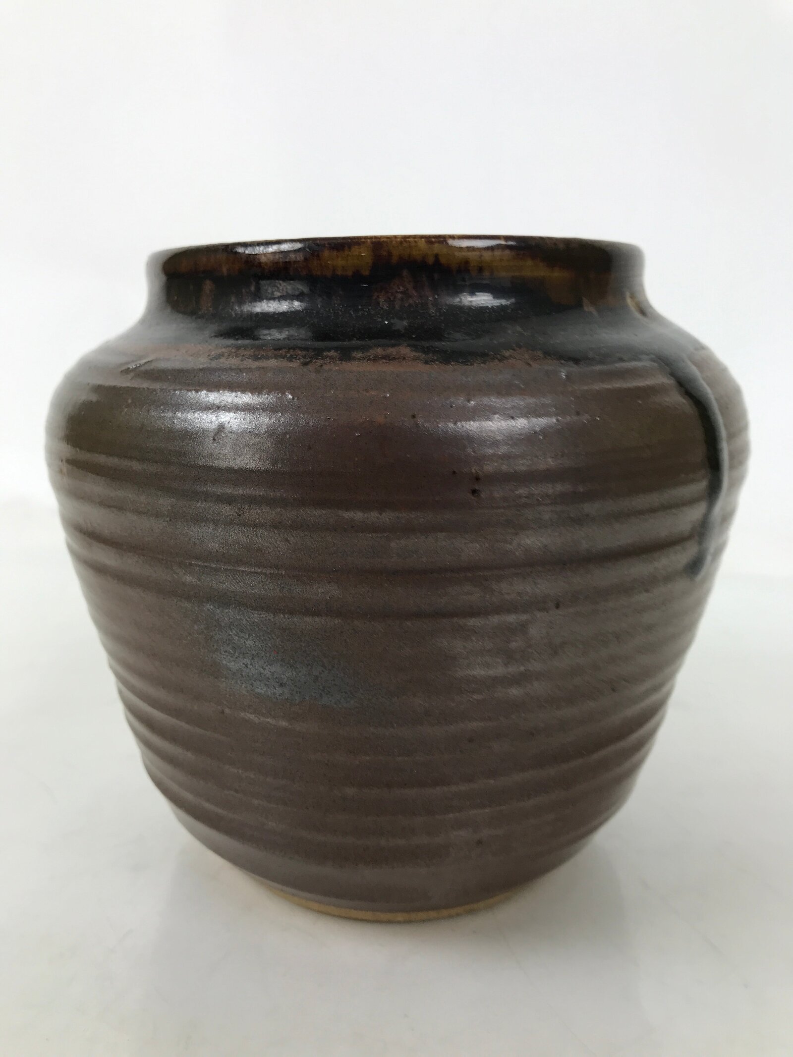 January 24, 2026Japanese Ceramic Flower Vase Vtg Ikebana Kabin Round Brown Dripping Black FK196