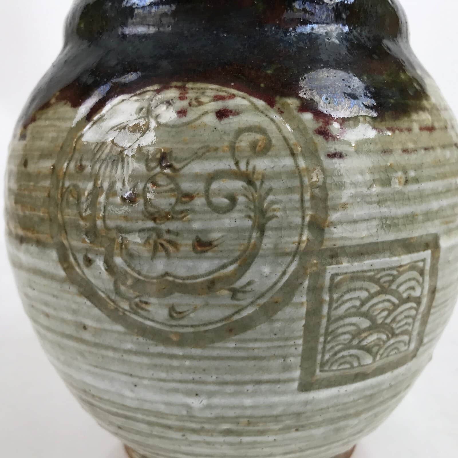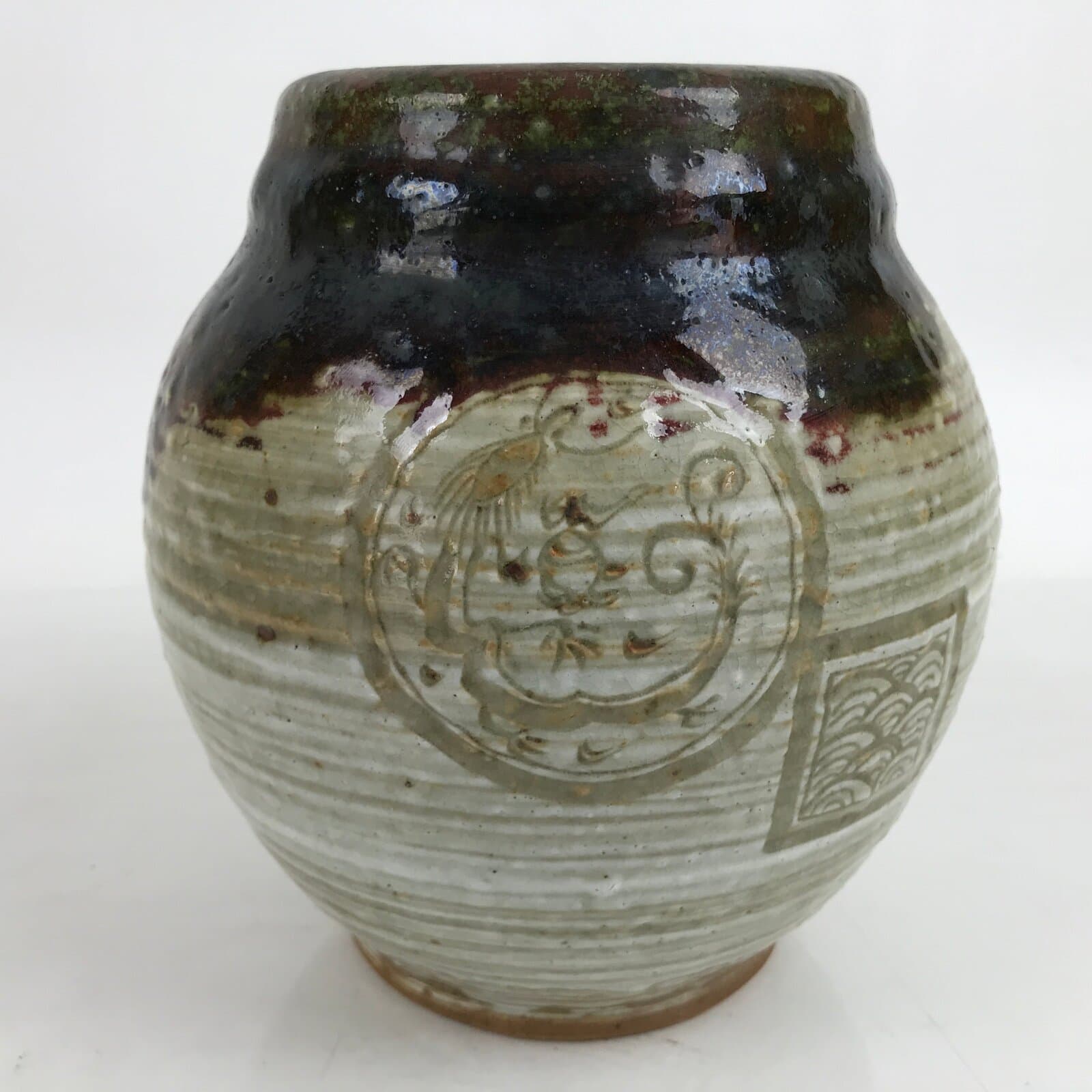 January 23, 2026Japanese Ceramic Flower Vase Vtg Ikebana Kabin Seigaiha Dragon Brown Gray FK135