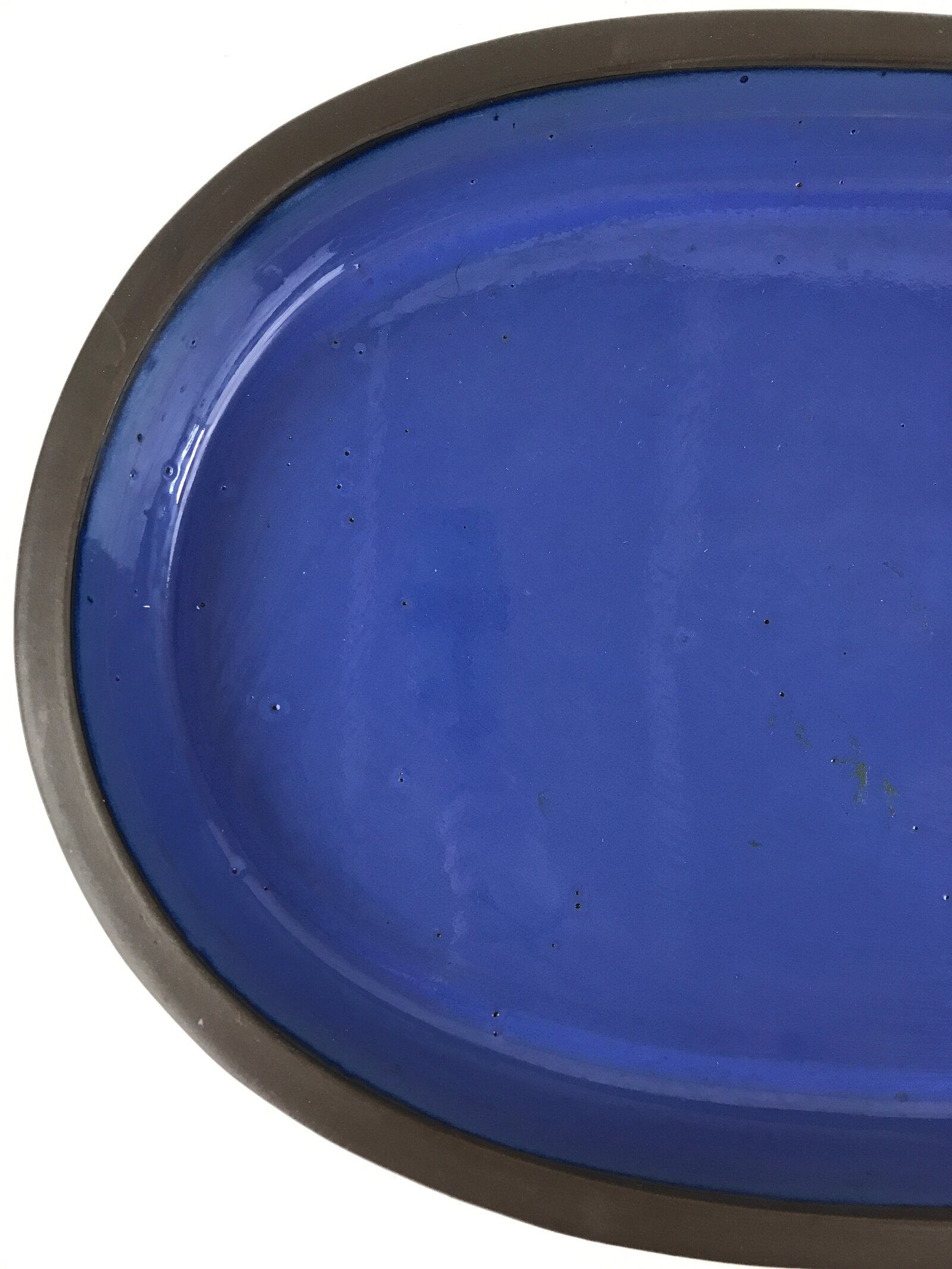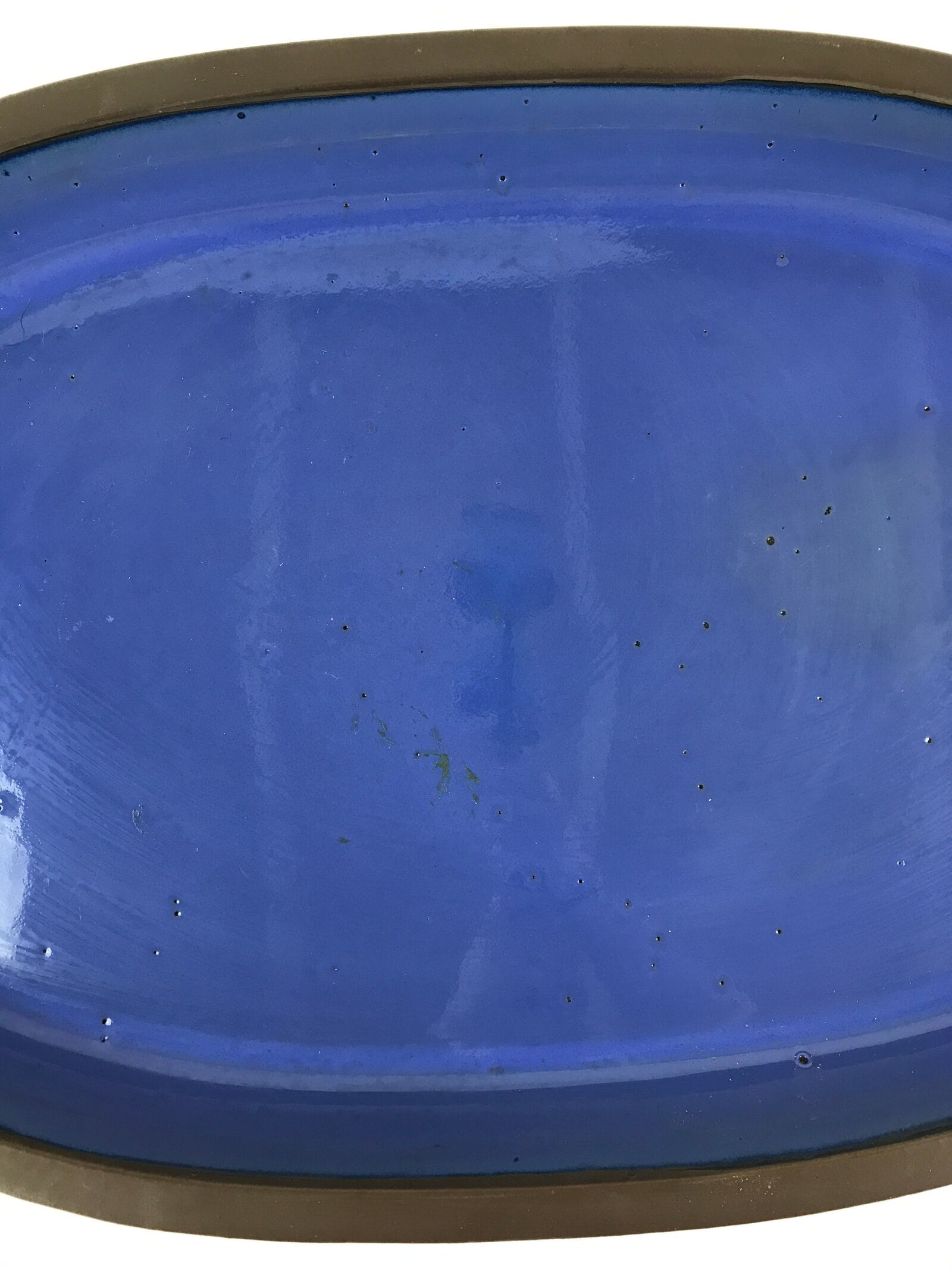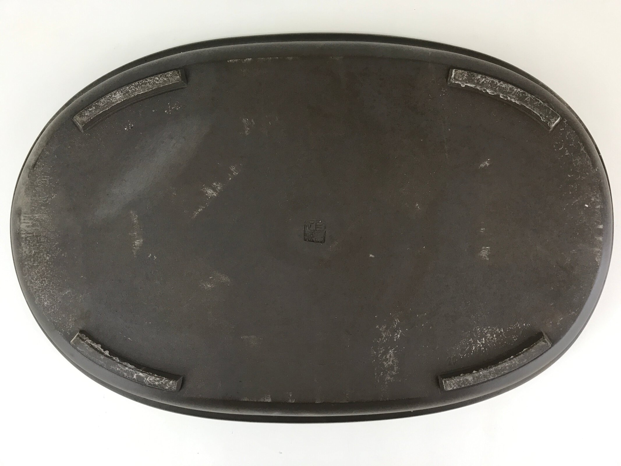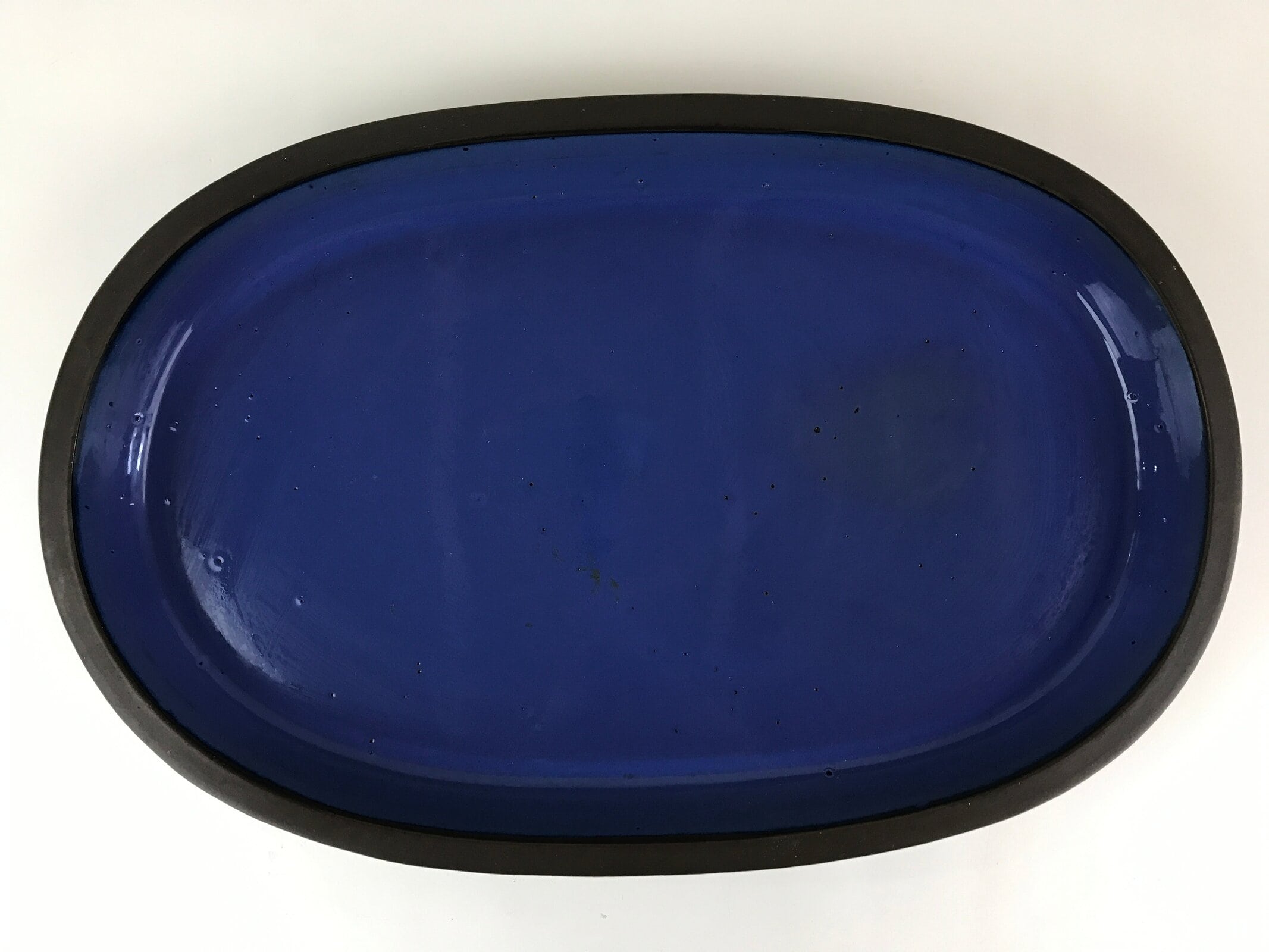 This is a Japanese Vintage ceramic flower vase Suiban. It is a shallow flat vase used in the ikebana flower arrangement in Japan.