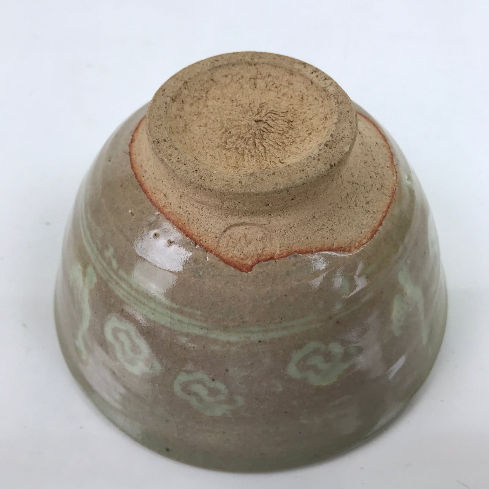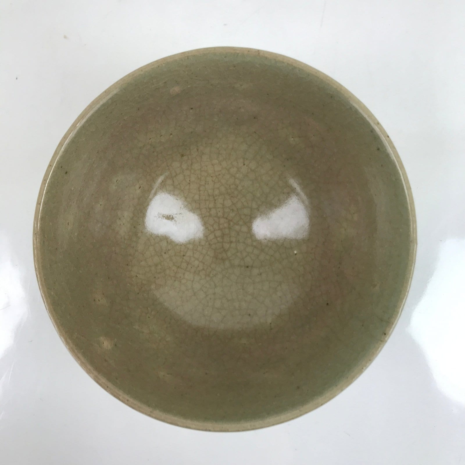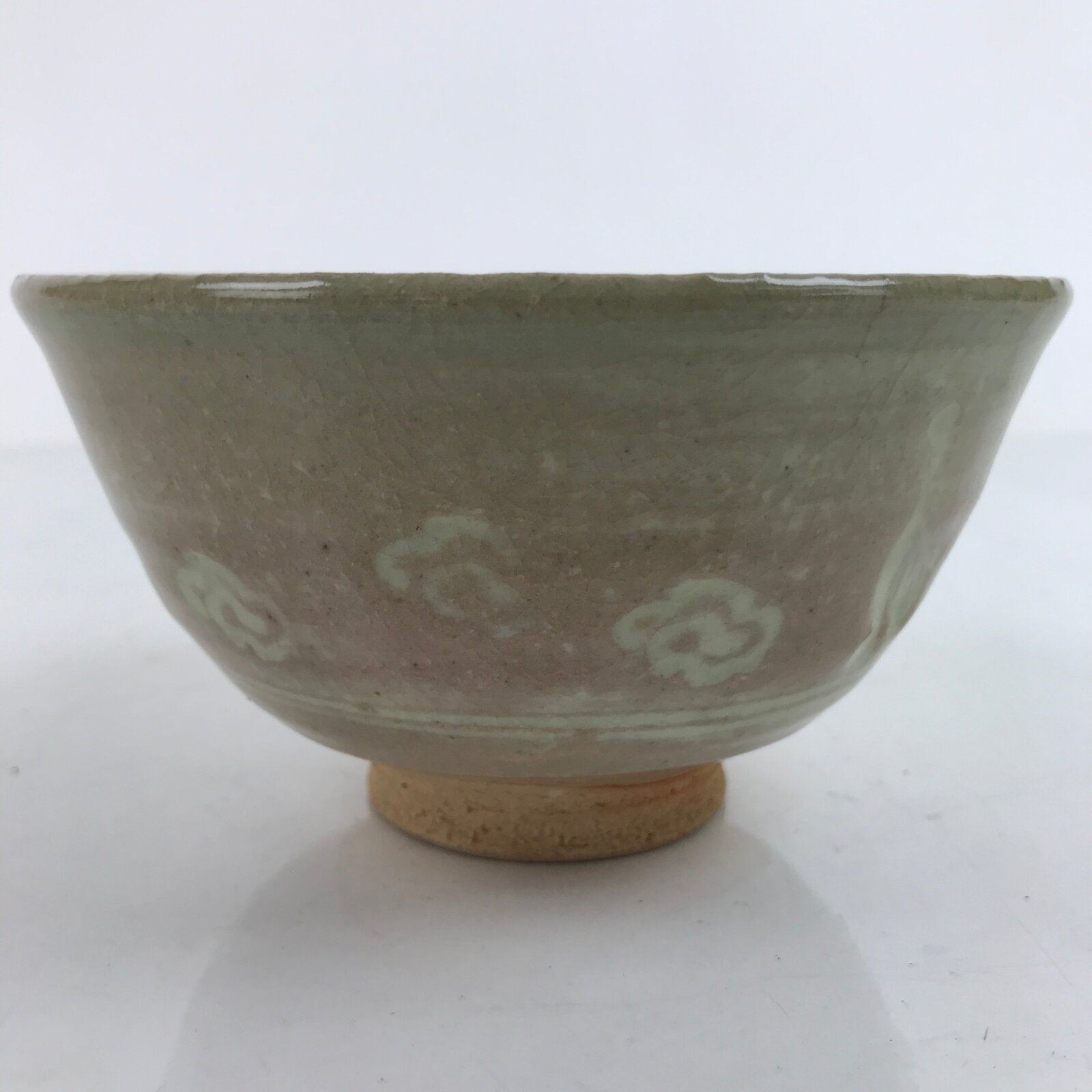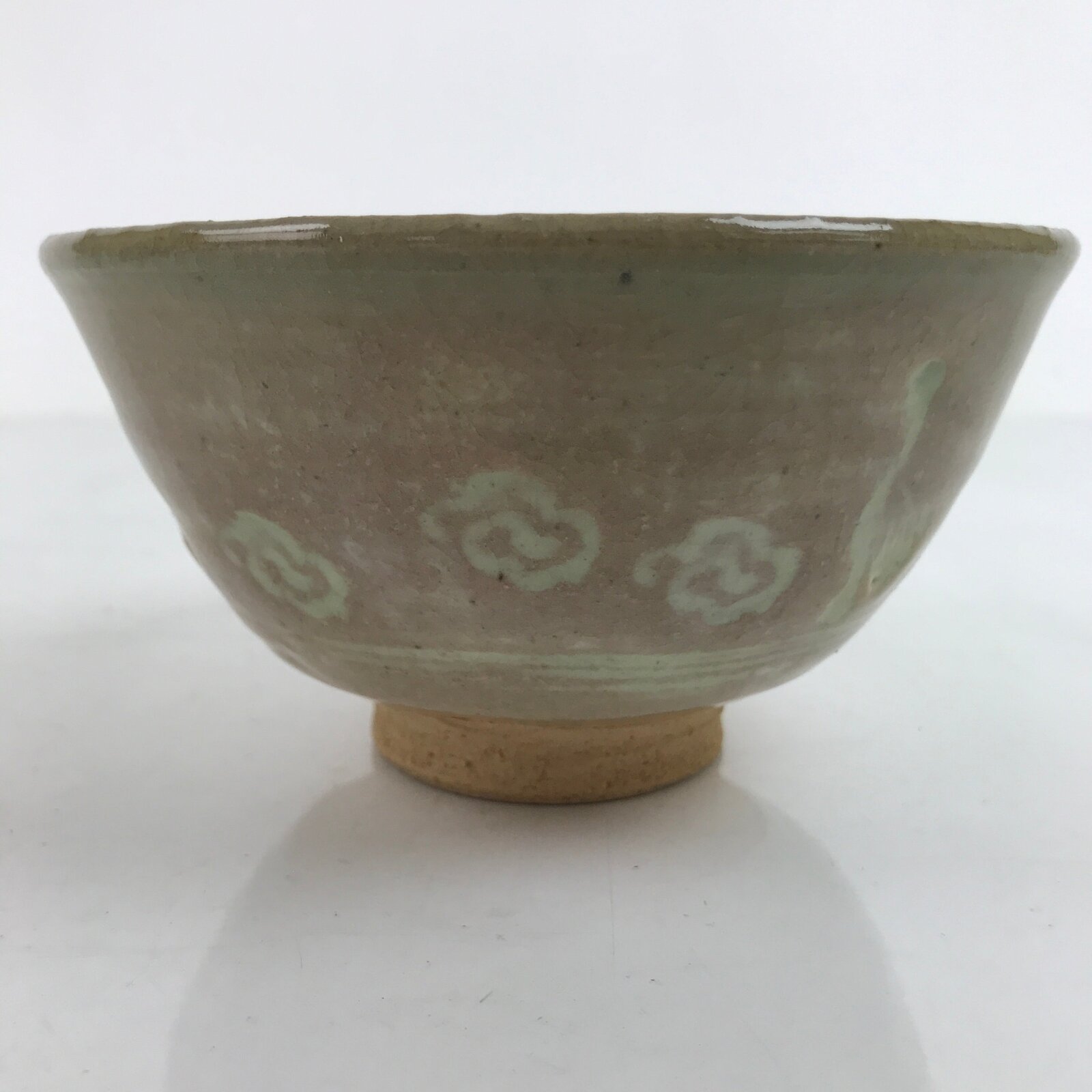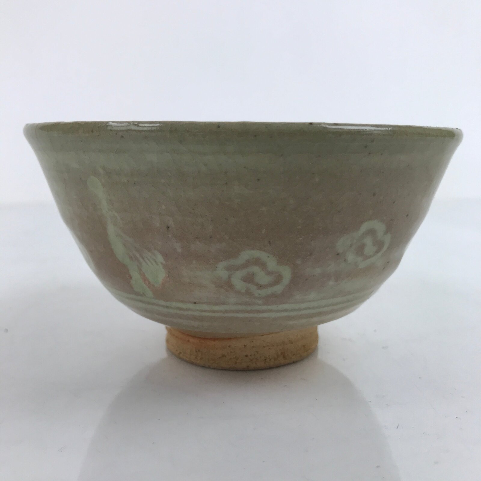 Japanese Ceramic Green Tea Ceremony Bowl Matcha Chawan Vtg Ducks Green CHB50