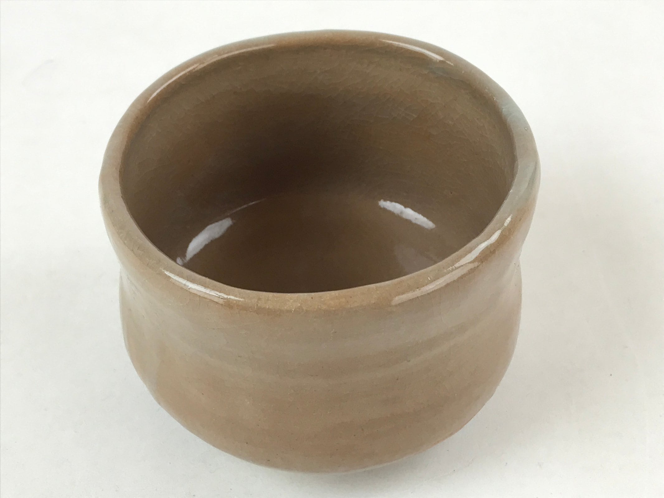 This is a vintage Japanese ceramic green tea bowl, Matcha Chawan. It is light brown and has a crackle glaze. This bowl has a glossy finish and is signed on the bottom. This sturdy bowl is easy to handle. Green tea bowls are traditionally used for preparing and drinking green tea during tea ceremonies but can be used in many scenes of modern everyday life.