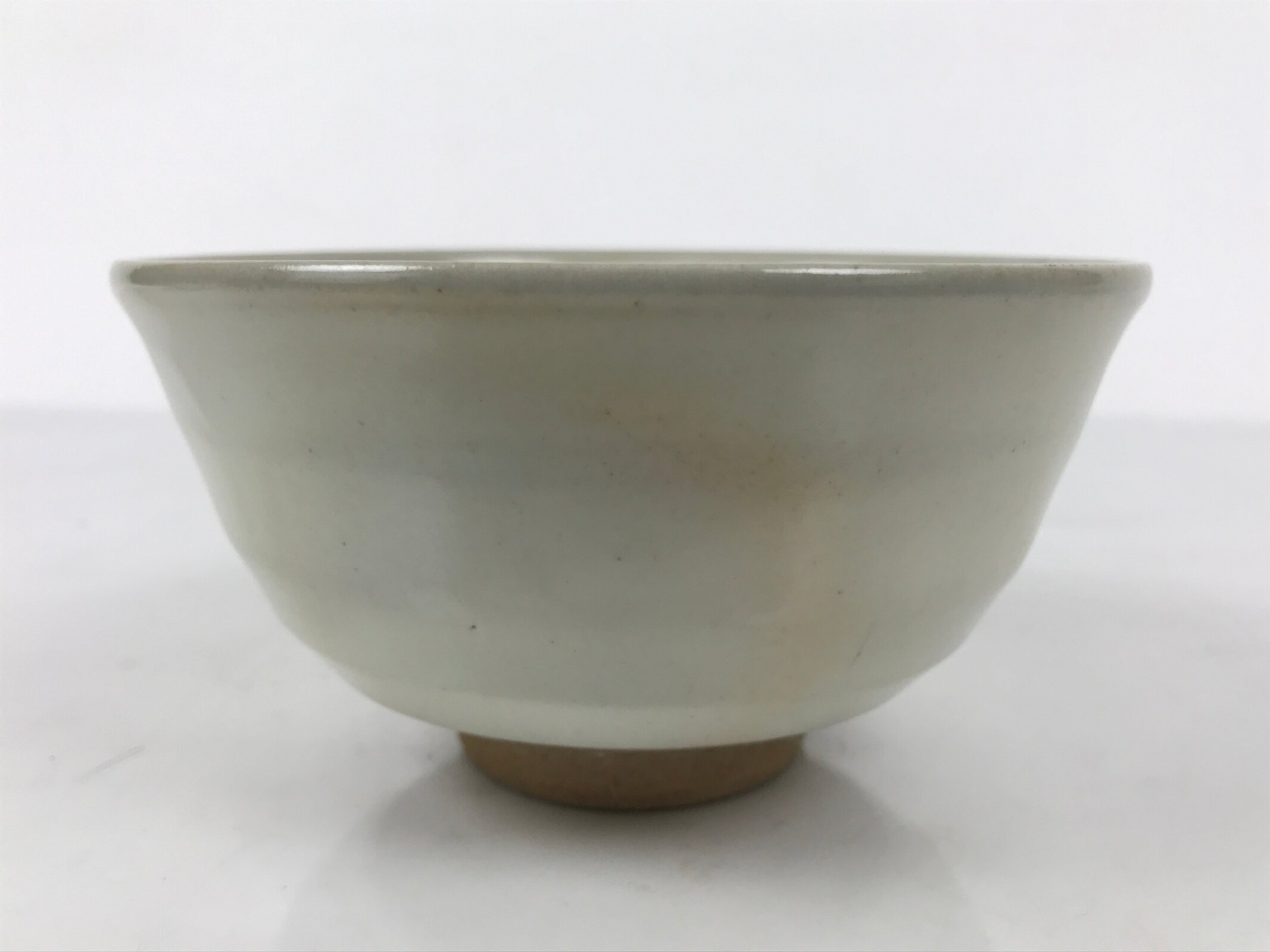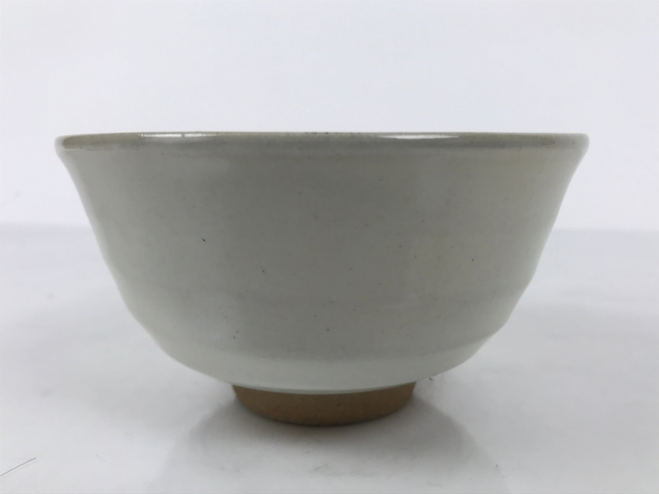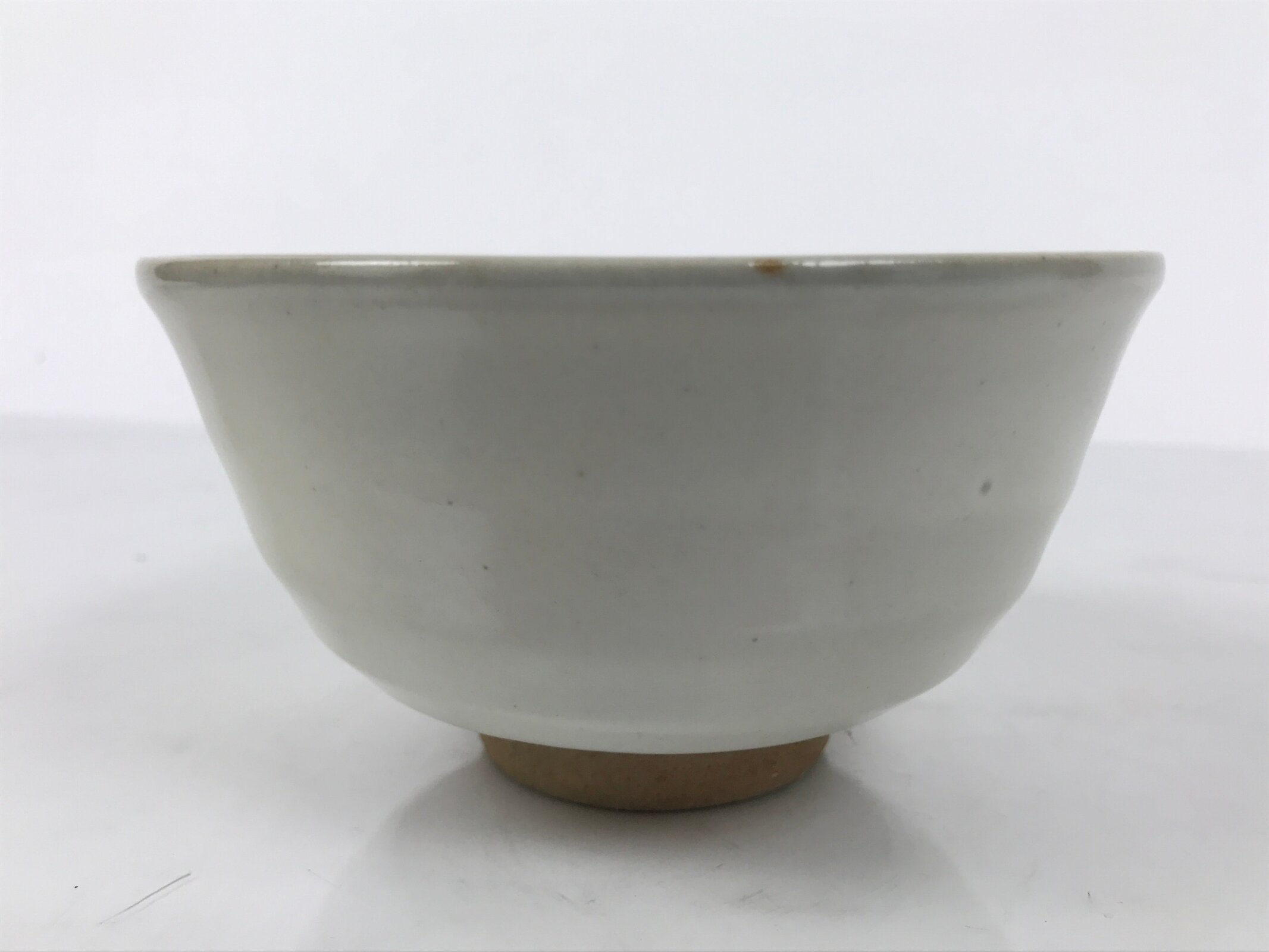 Japanese Ceramic Green Tea Bowl Matcha Chawan Vtg Pottery White Thick CHB132
