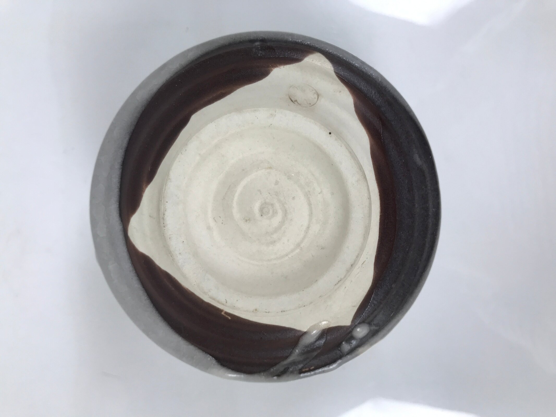 Japanese Ceramic Green Tea Bowl Matcha Chawan Vtg Pottery Blue White CHB129