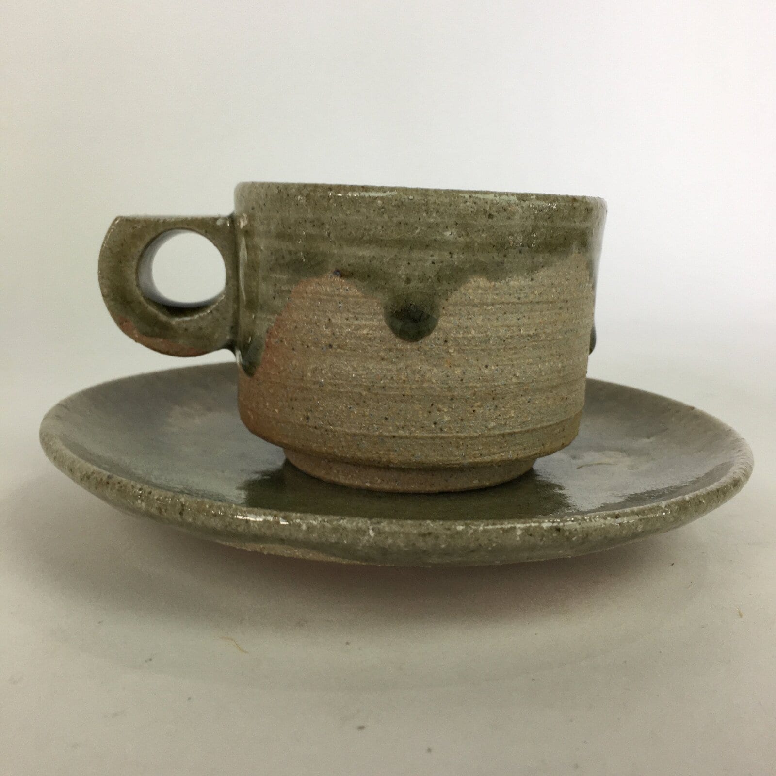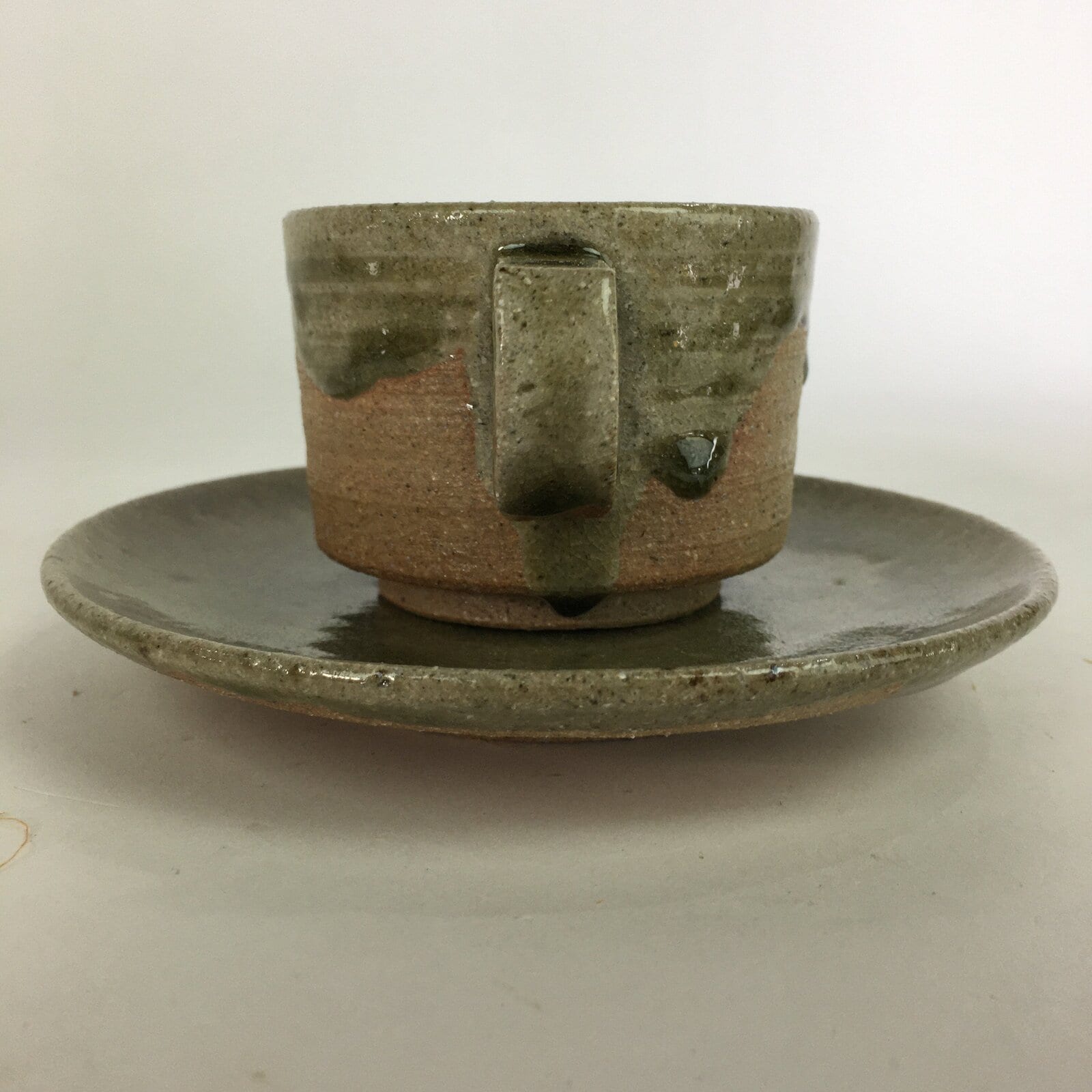 Japanese Ceramic Igayaki Teacup Mug Saucer Vtg Cup Plate Set Green Glaze PP574